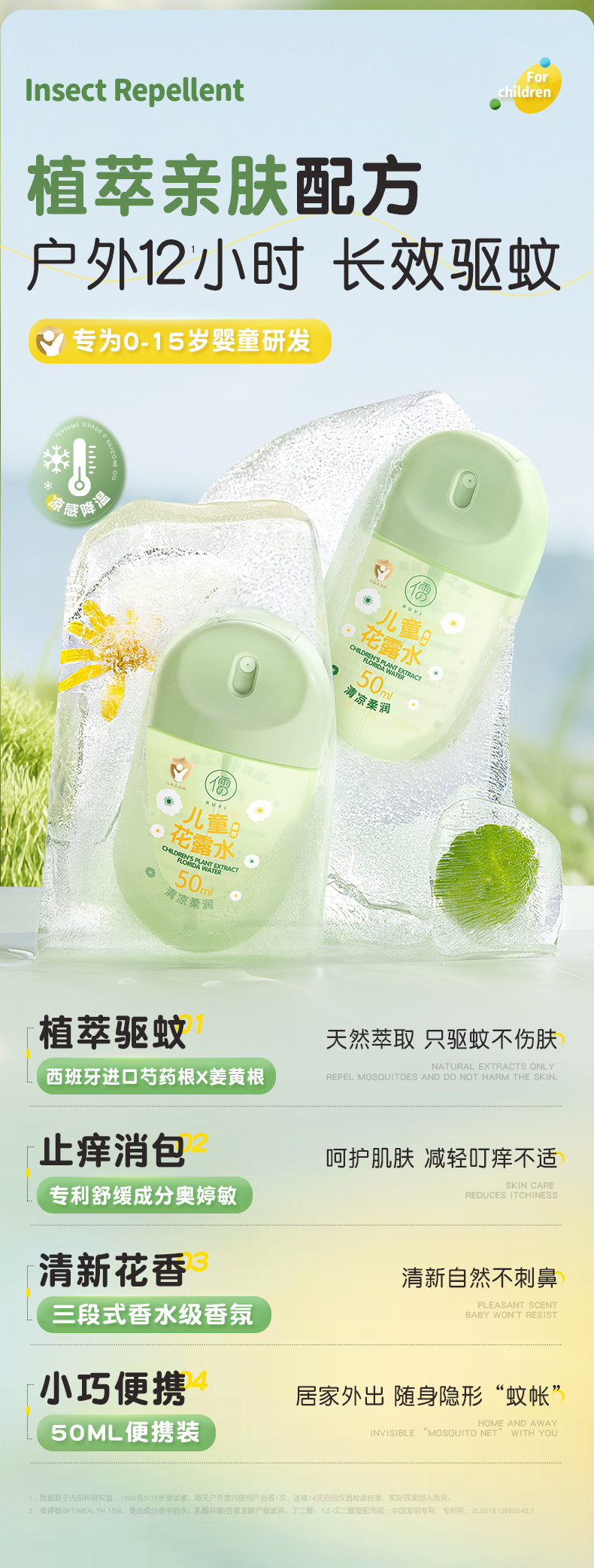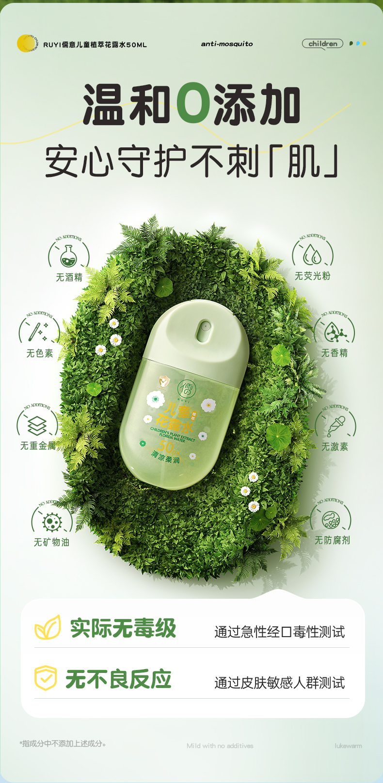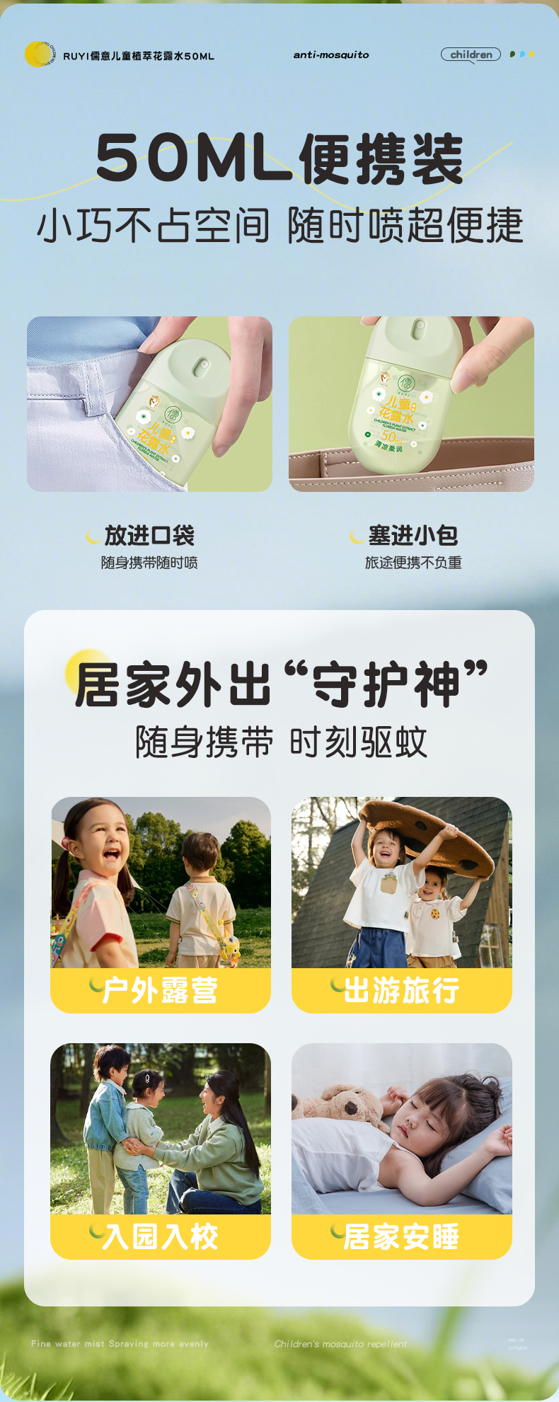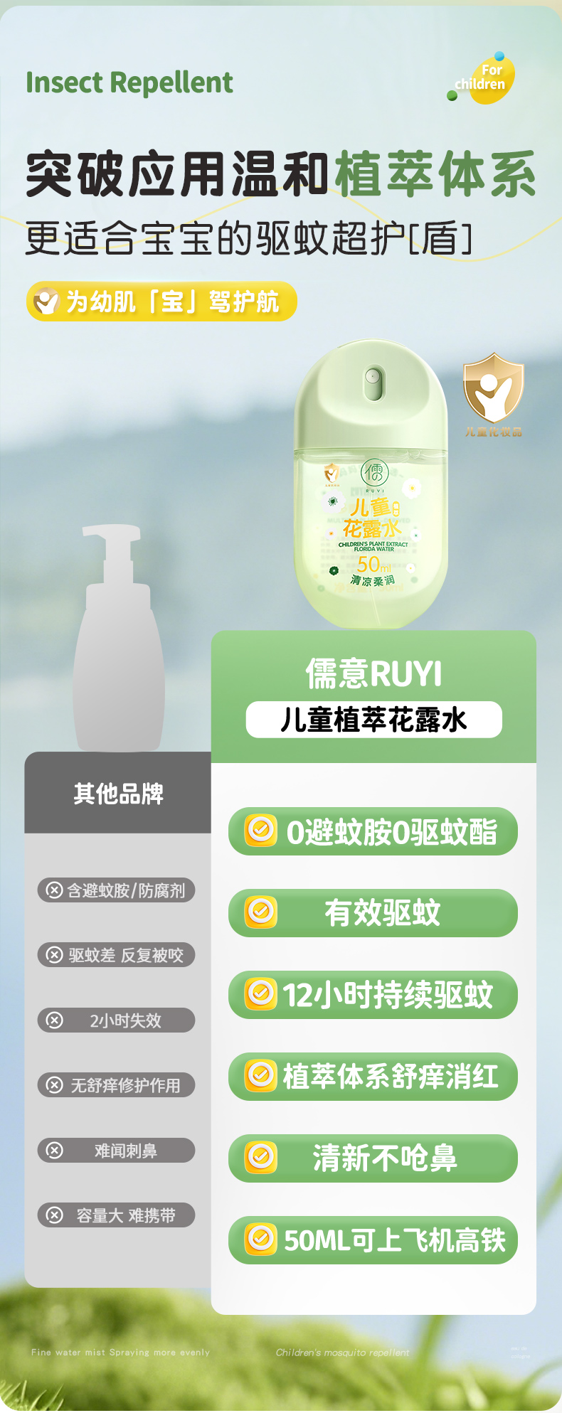 儒意儿童植萃花露水50ml 驱蚊喷雾花露水止痒液儿童防蚊虫叮咬户外便携|儒意官方商城