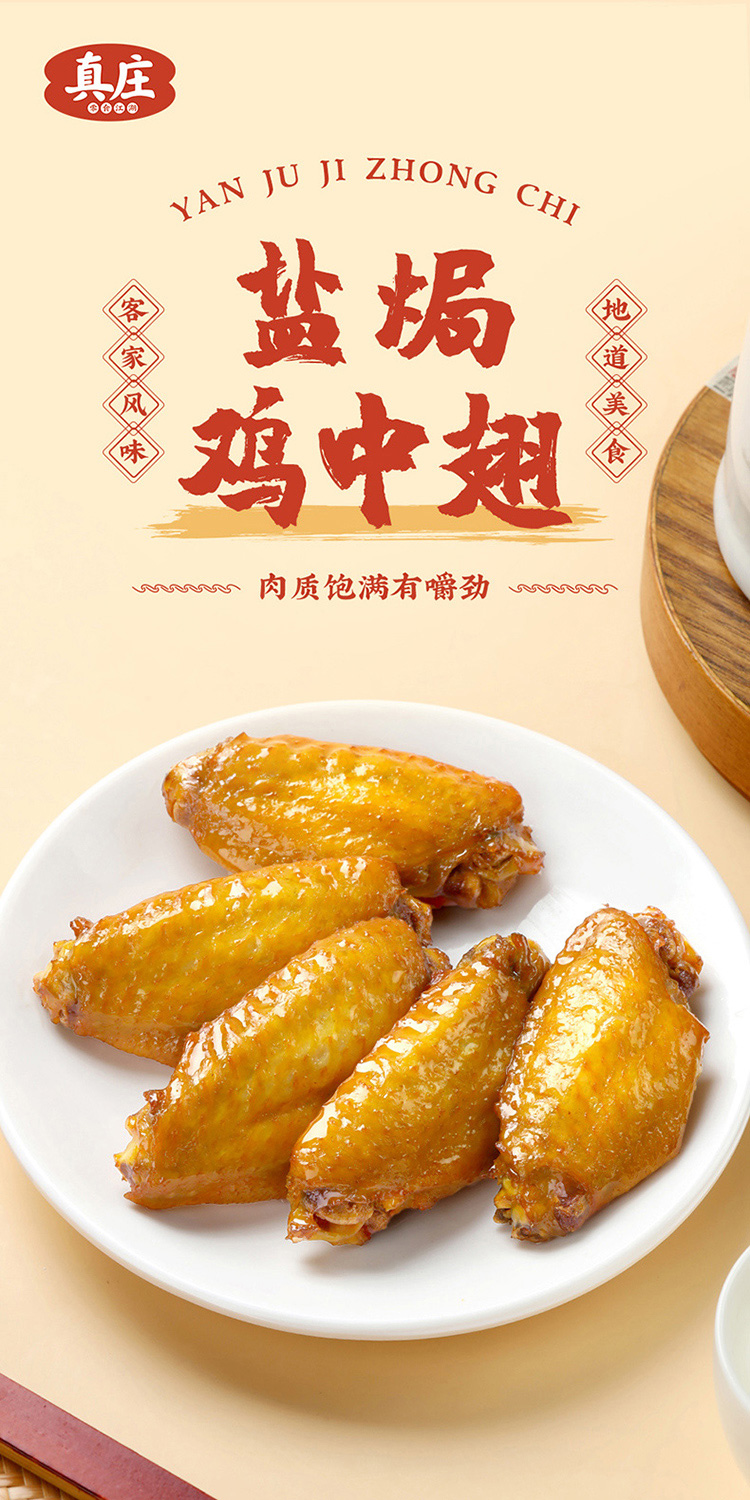 真莊真庄 盐焗鸡中翅广东客家特产盐香鸡翅膀熟食下酒菜零食即食 盐焗鸡中翅200g*1(独立装)