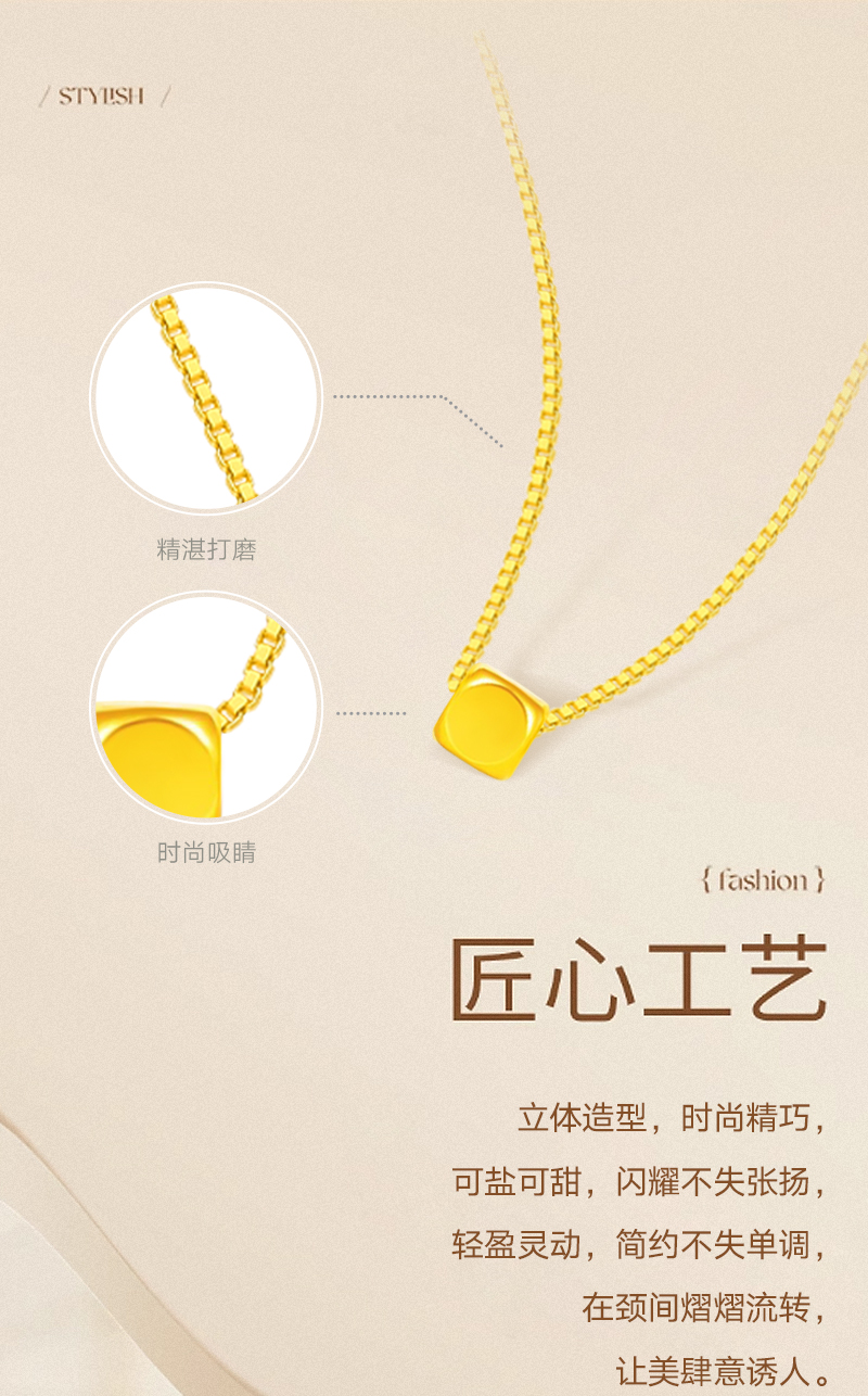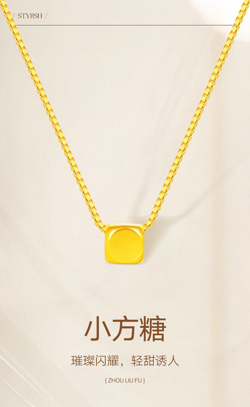 周六福足金小方糖吊坠ZLFA041769★