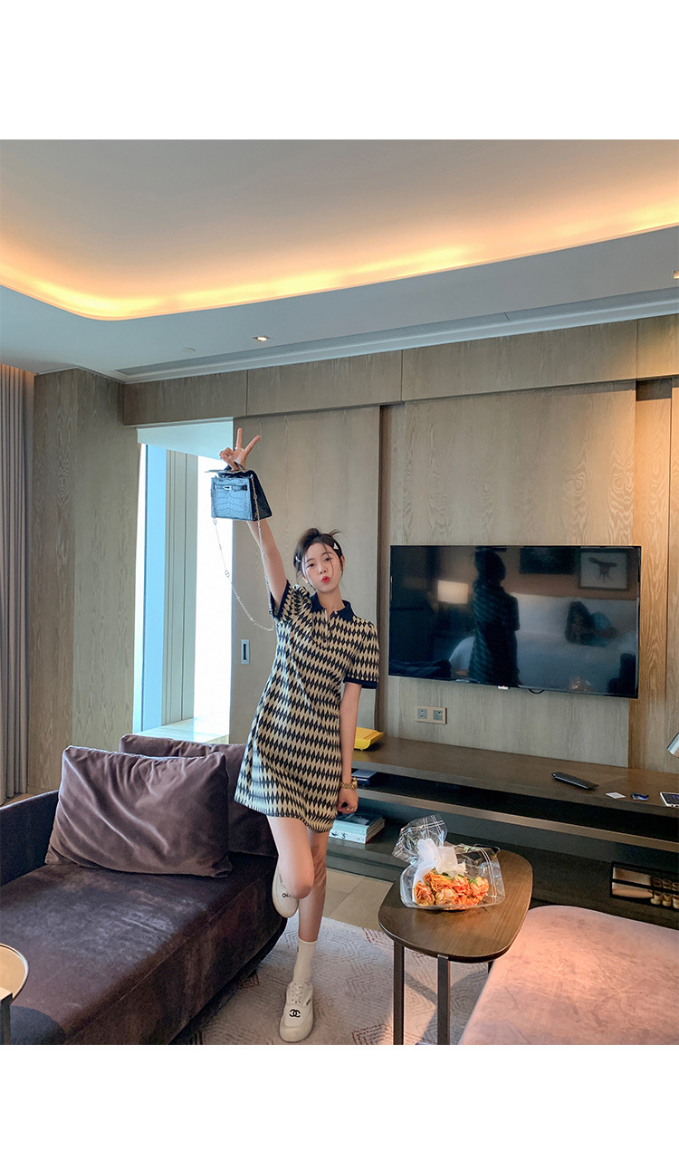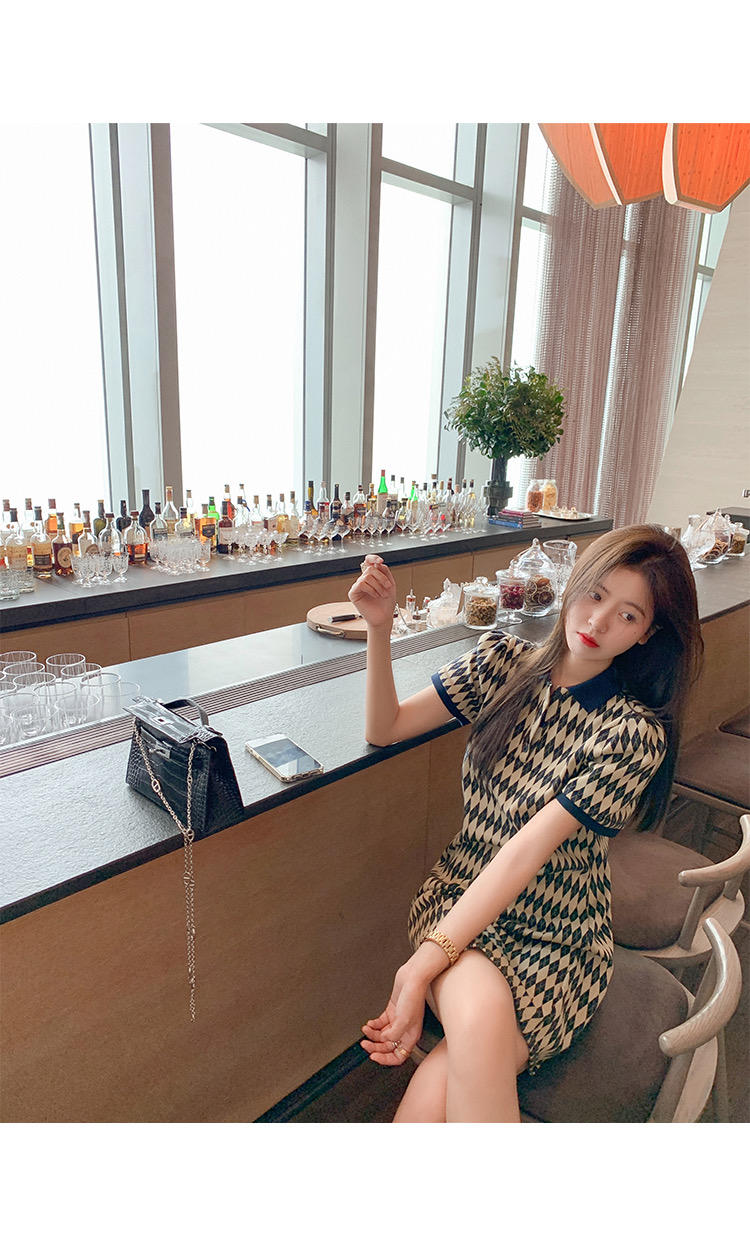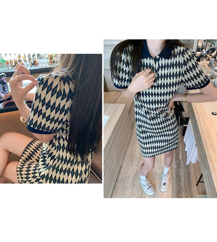 (清仓现货)【社群供W】夏 韩系菱格连衣裙