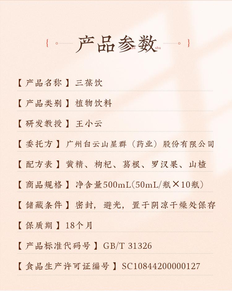 三葆饮 黄精枸杞子植物饮料(30ml/袋*14)盒