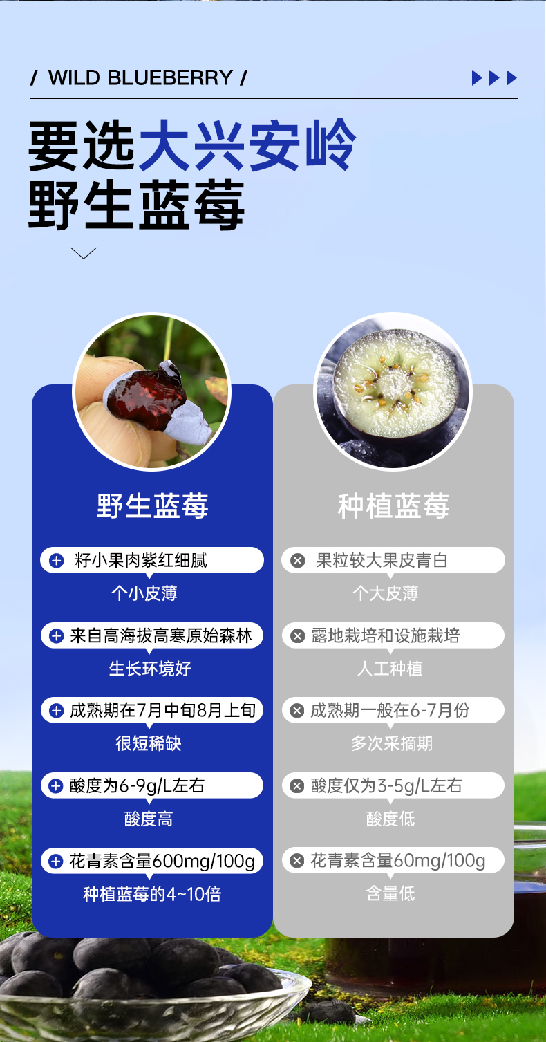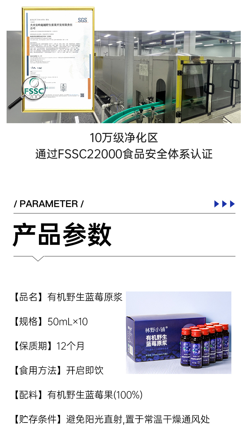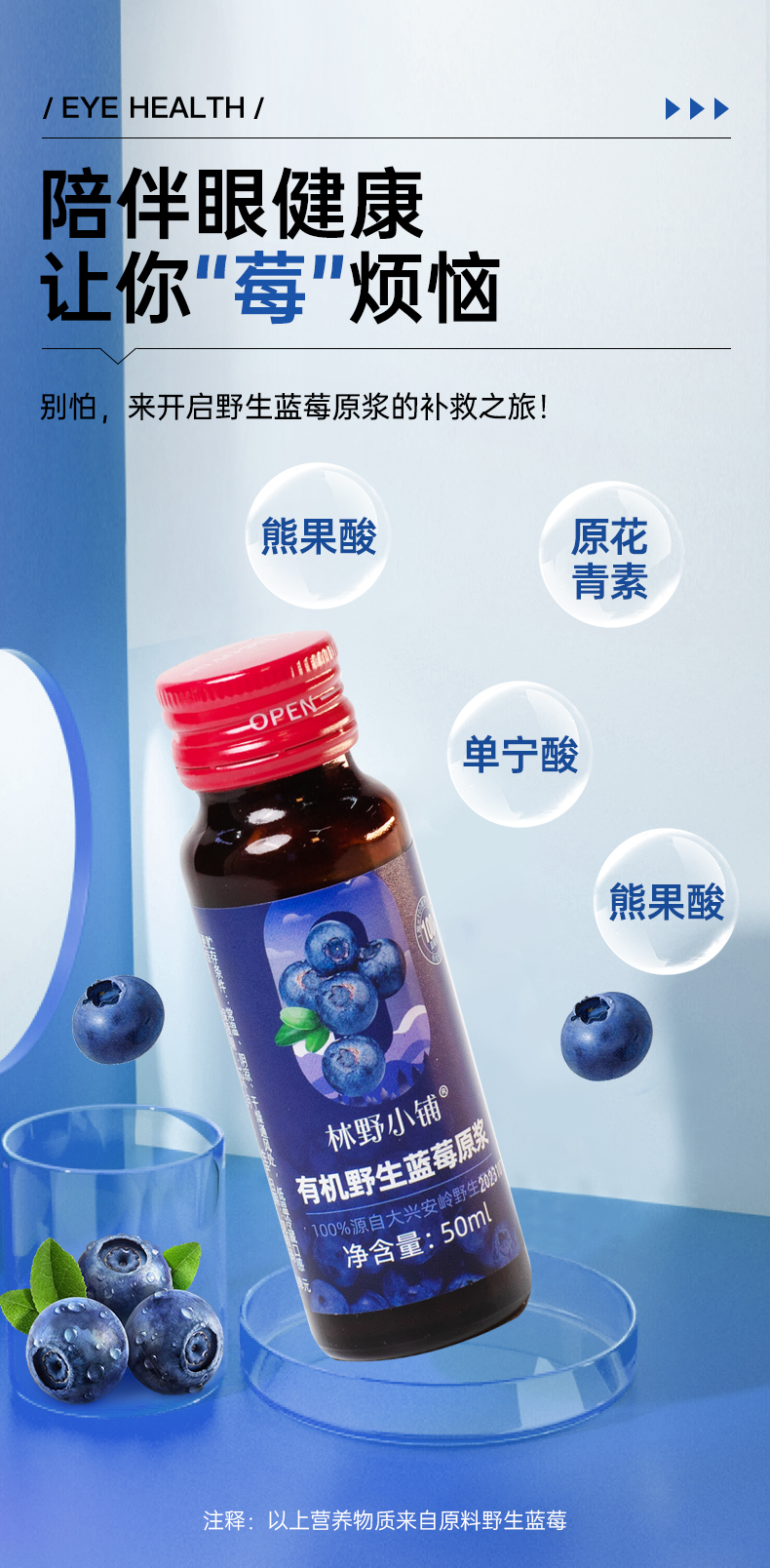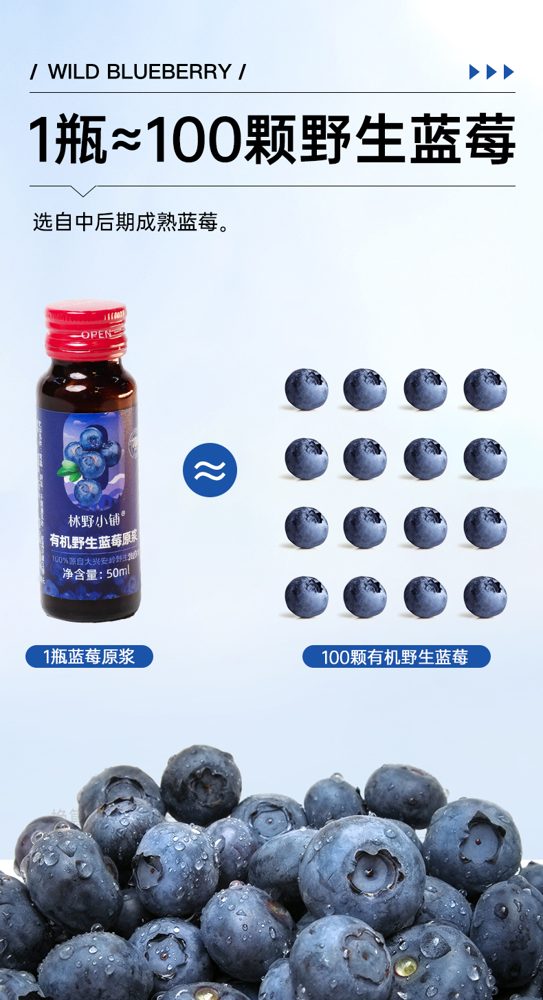 3盒 林野小铺有机野生蓝莓原浆50毫升*10瓶 A-2672