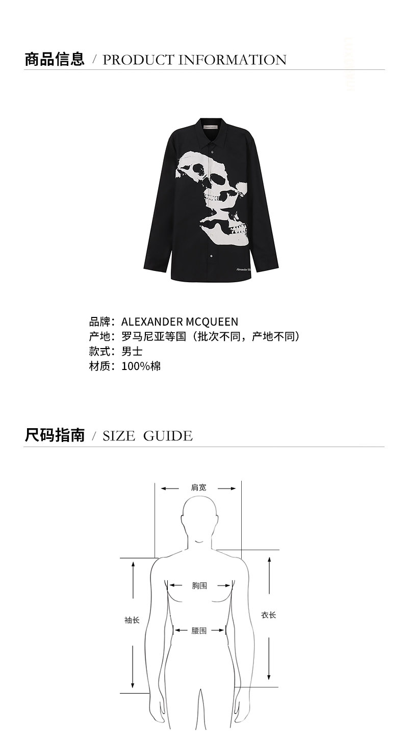 Alexander McQueen/亚历山大麦昆【22春夏新款】男士棉质长袖衬衫 682294 QSO49