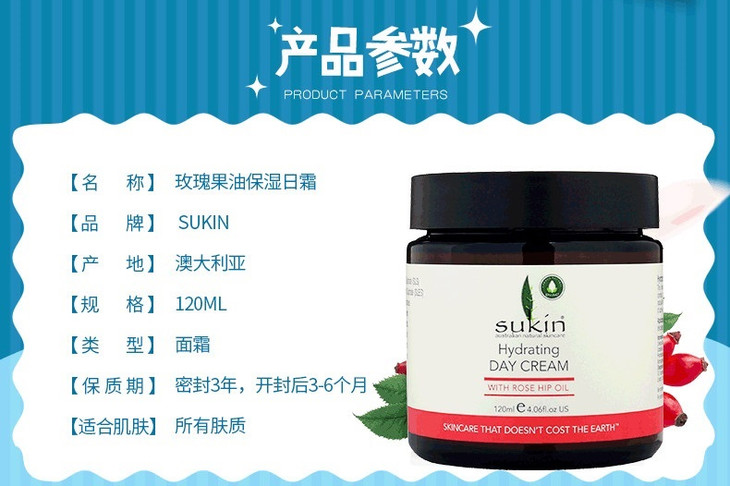【保税仓】澳洲Sukin苏芊 玫瑰果油保湿日霜120ml