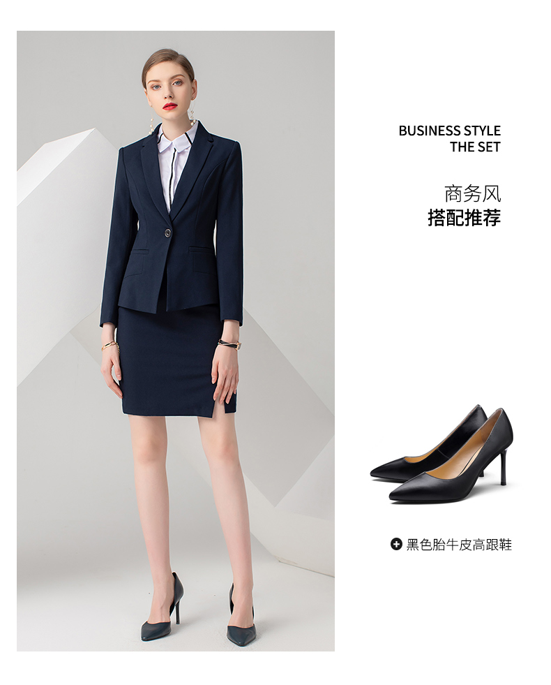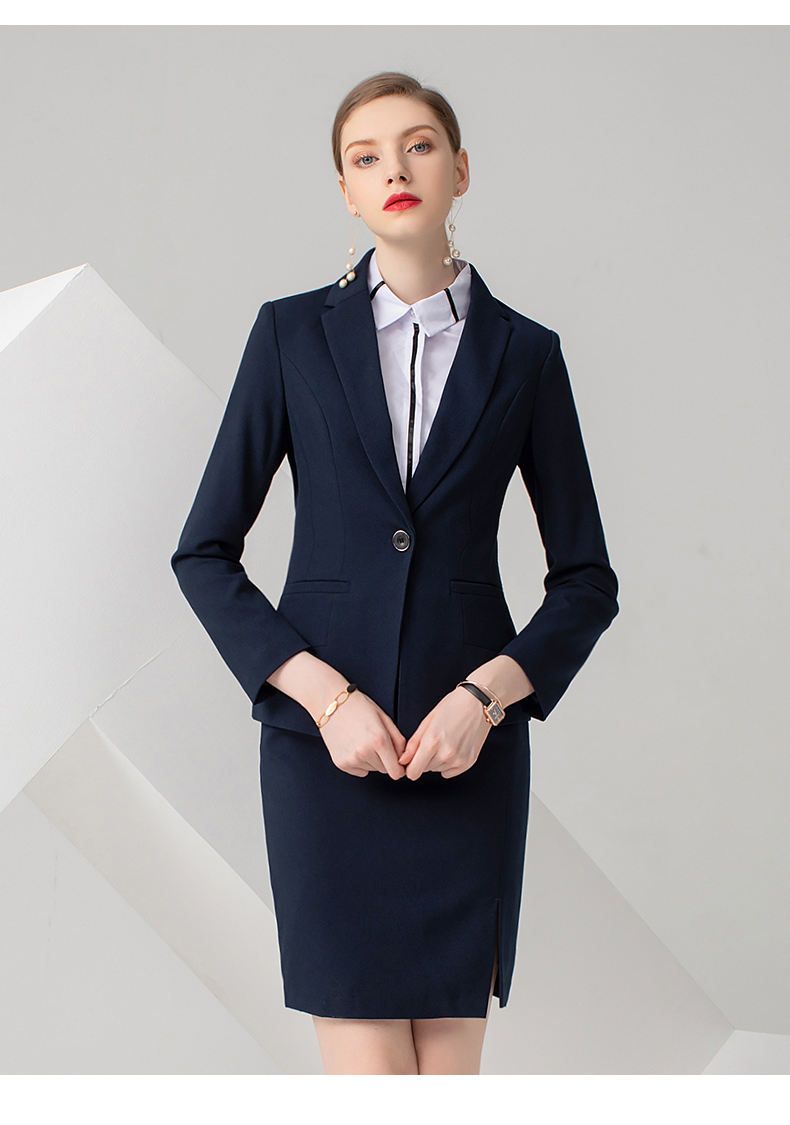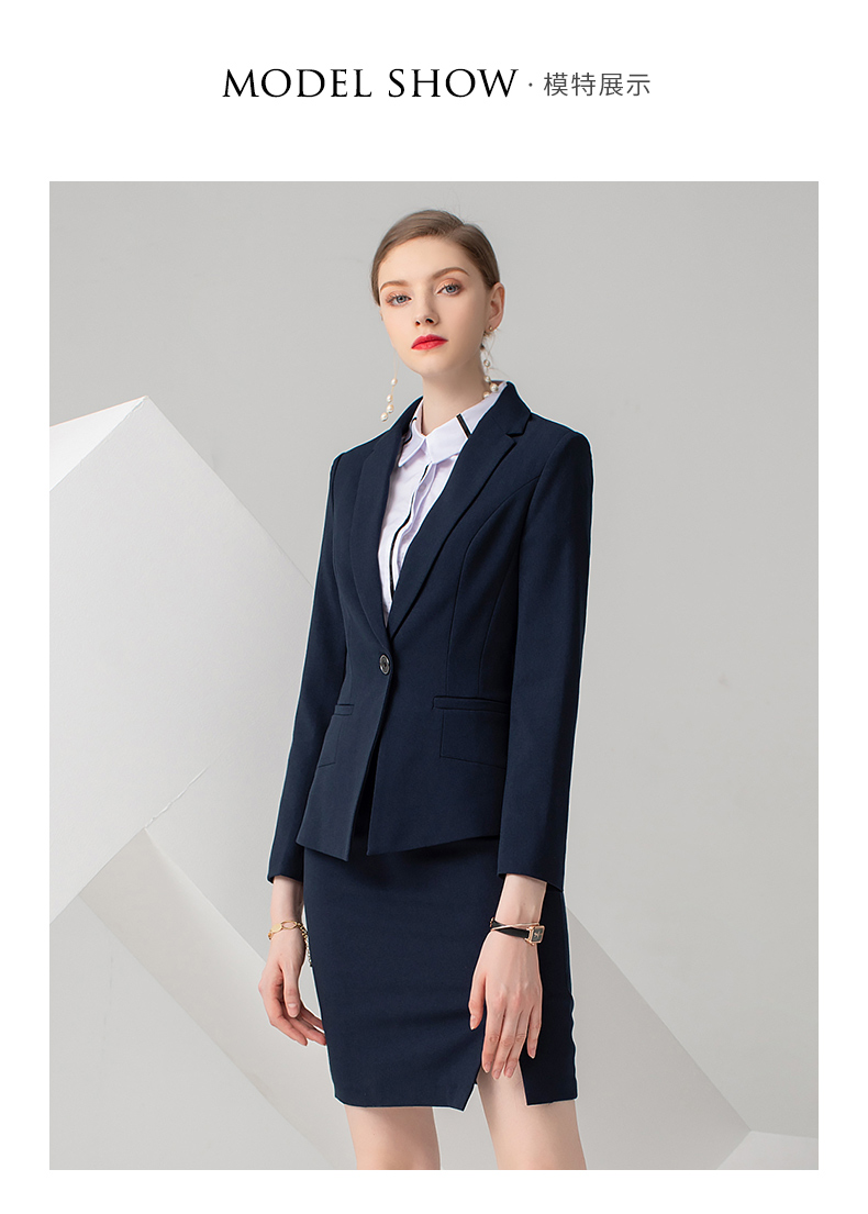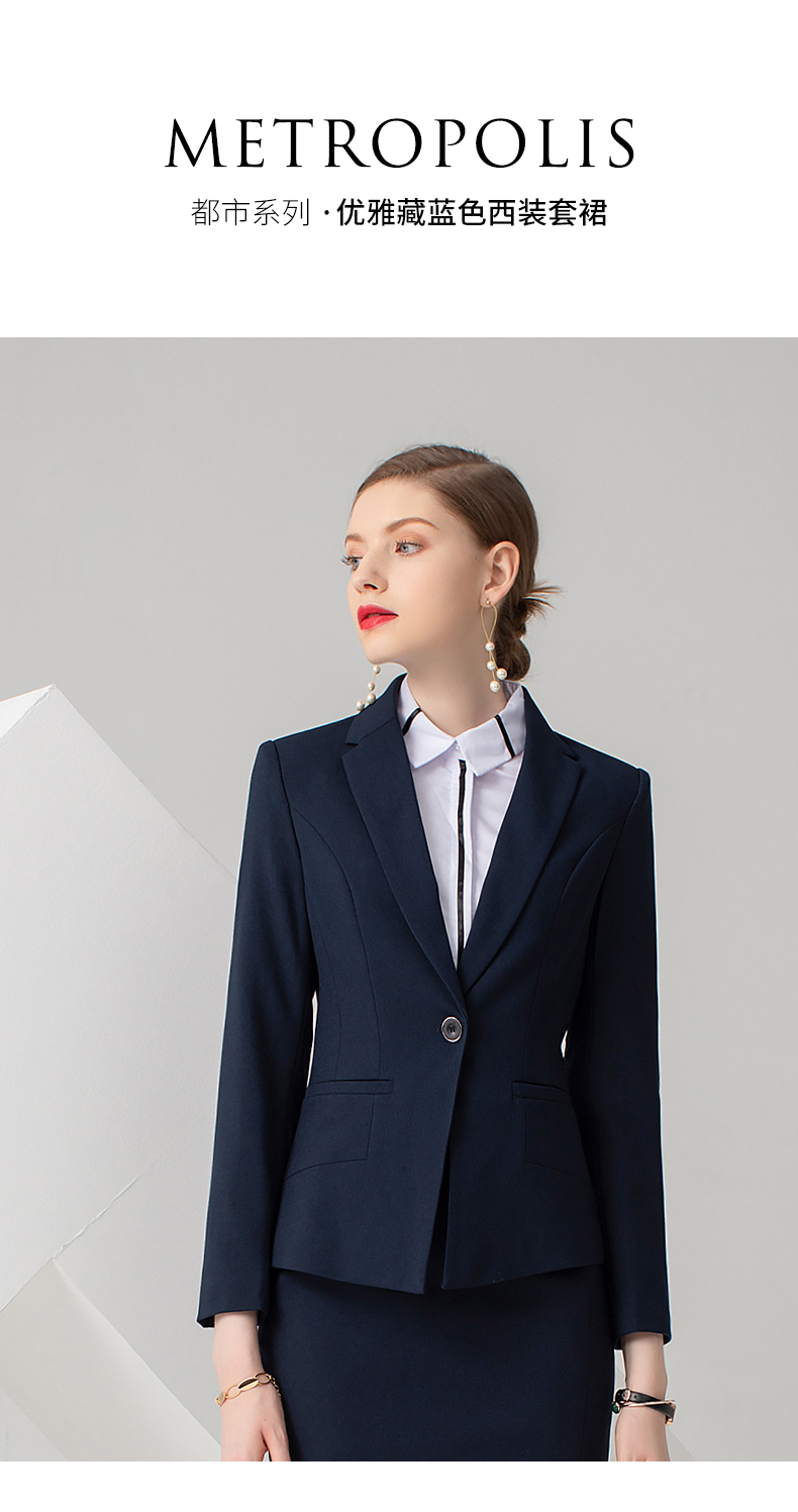 IWY/藏蓝色长袖西装半裙套装CS722