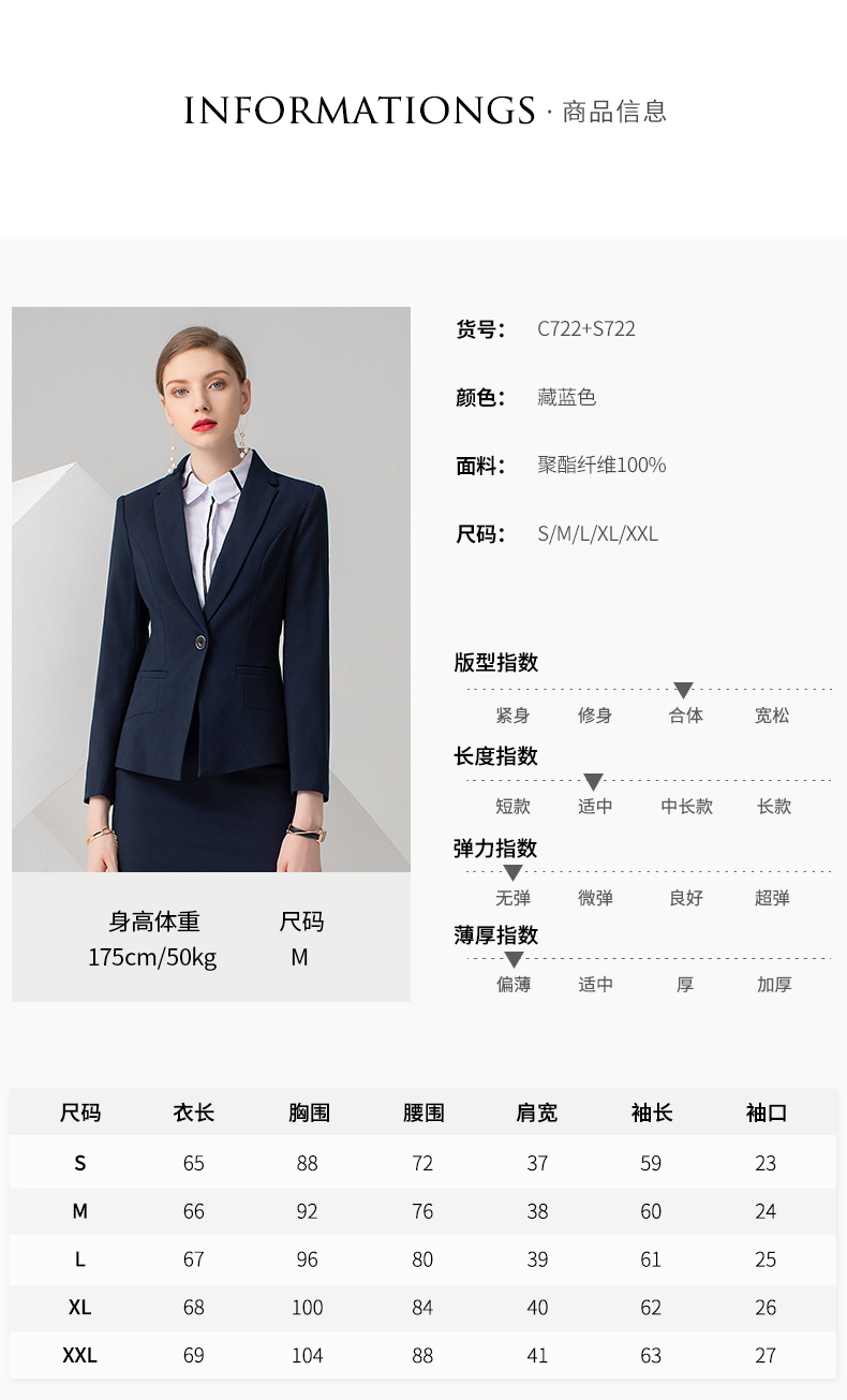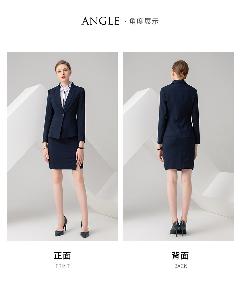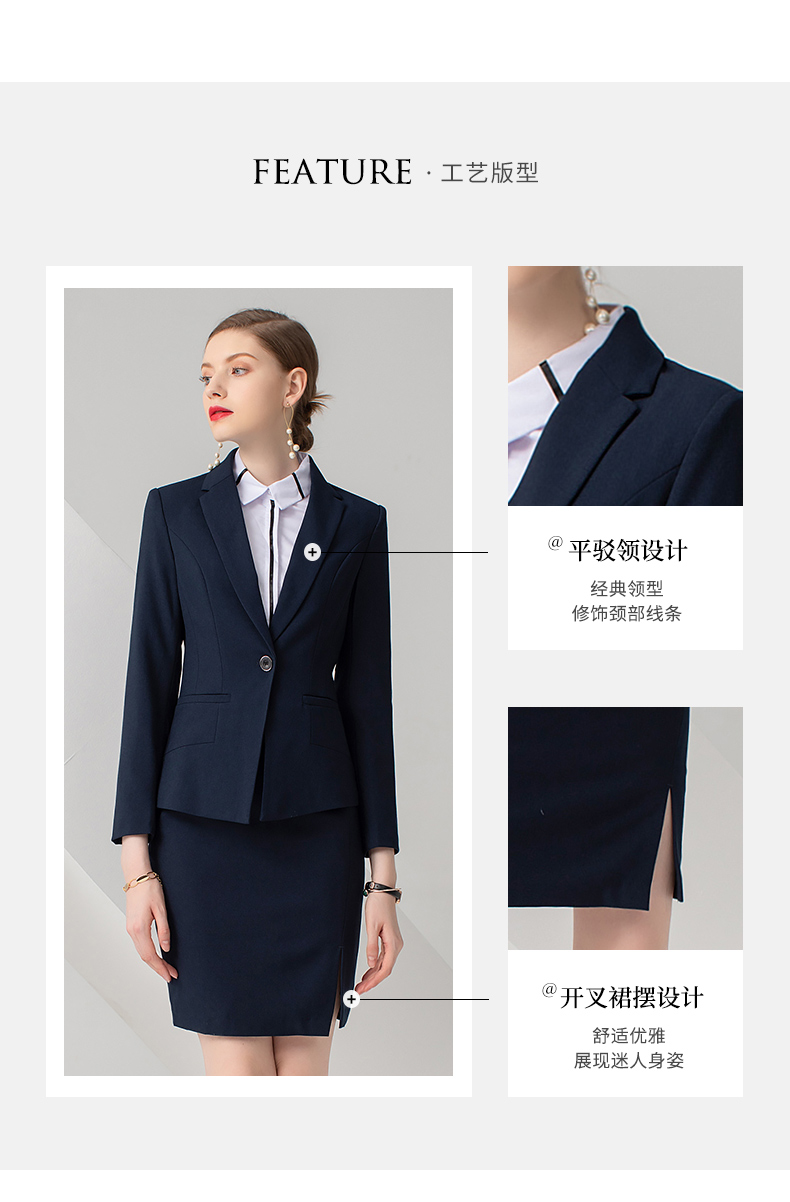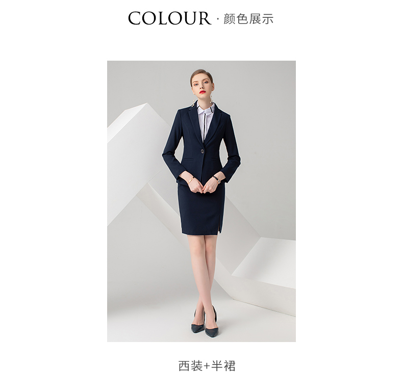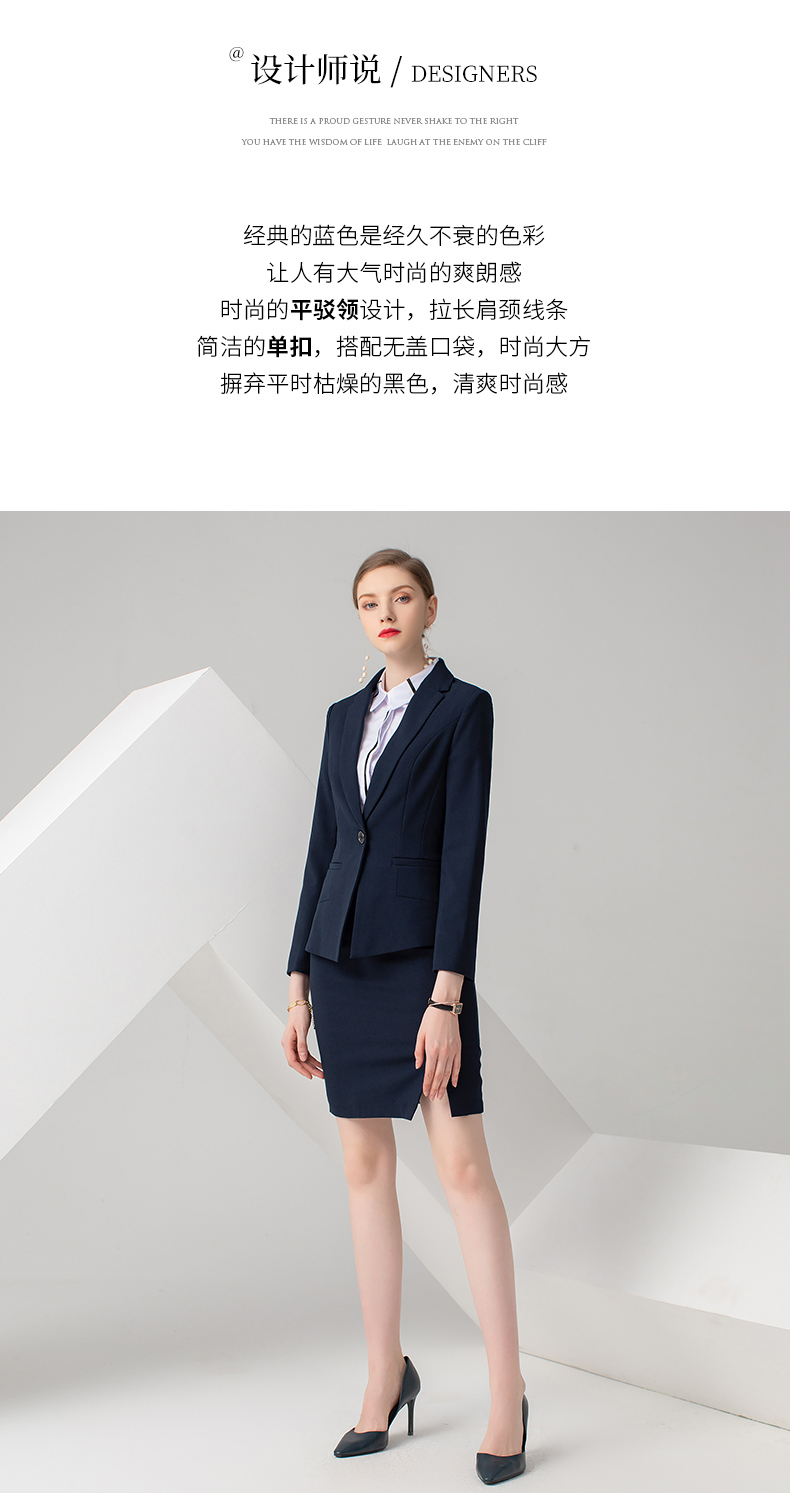 IWY/藏蓝色长袖西装半裙套装CS722