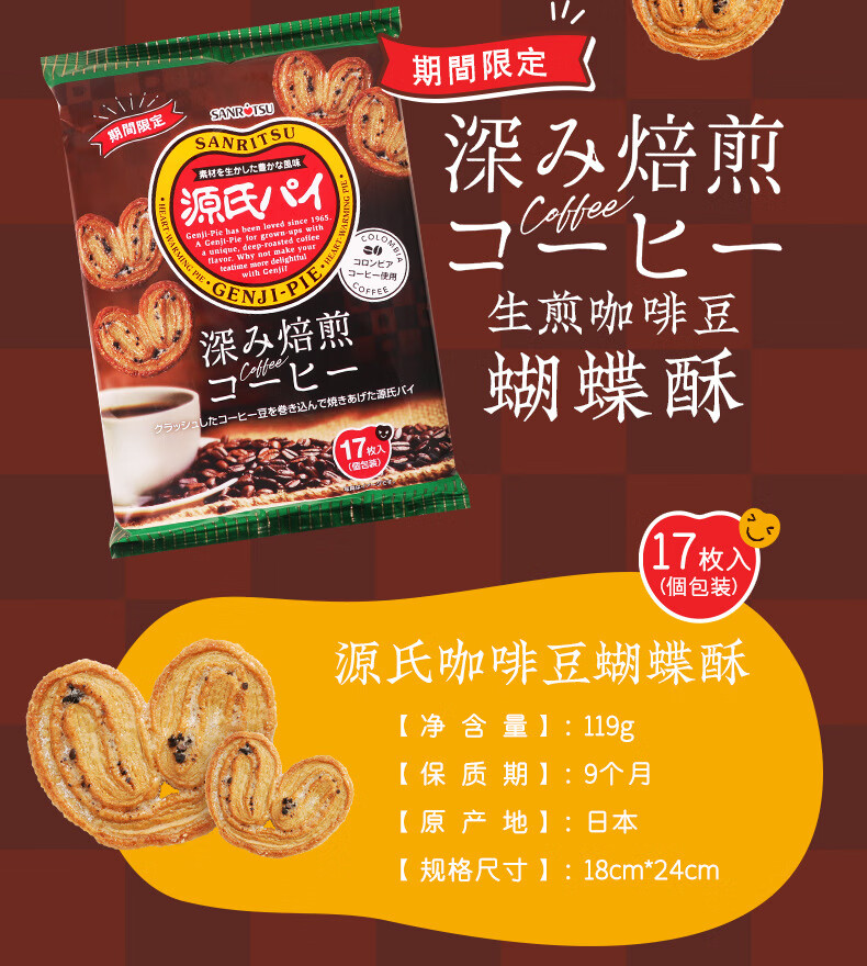 三立制果源氏咖啡味千层酥饼干119g/051256 加入醇香咖啡豆