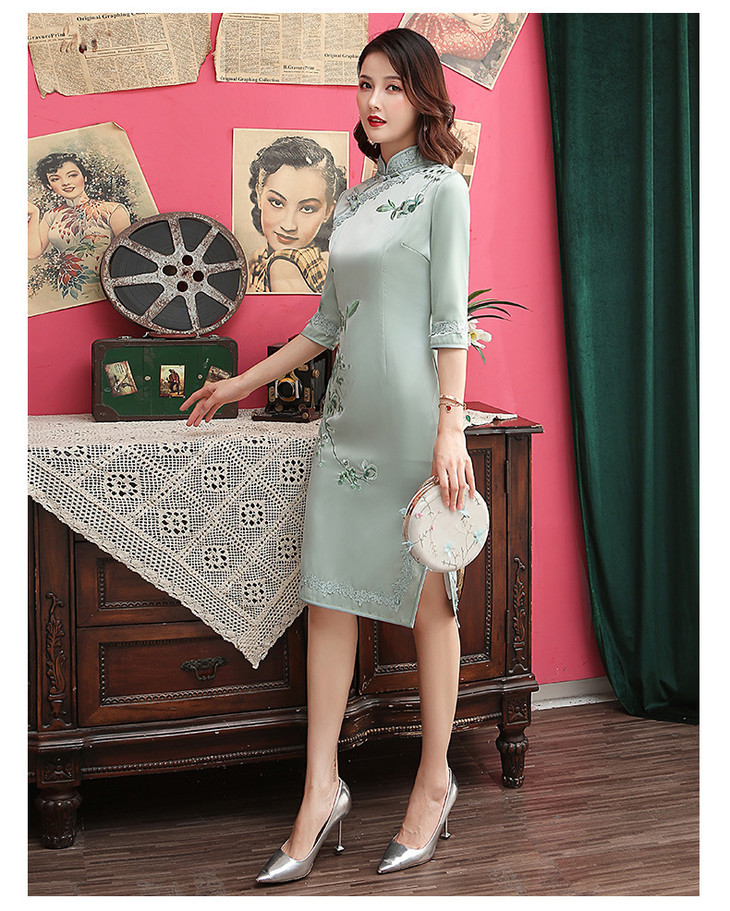 中式改良旗袍上衣女春秋中国风复古立领气质盘扣印花刺绣长袖衬衫 YX2051