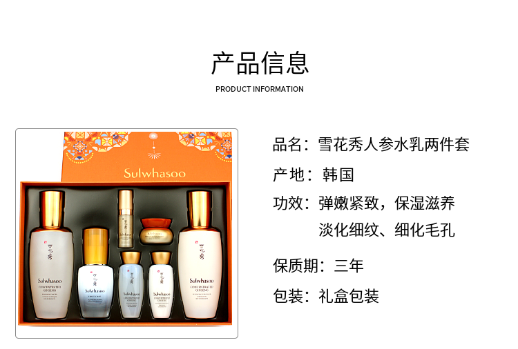 【YZ】韩国雪花秀滋盈生人参水乳两件套盒 凝水焕颜抗皱