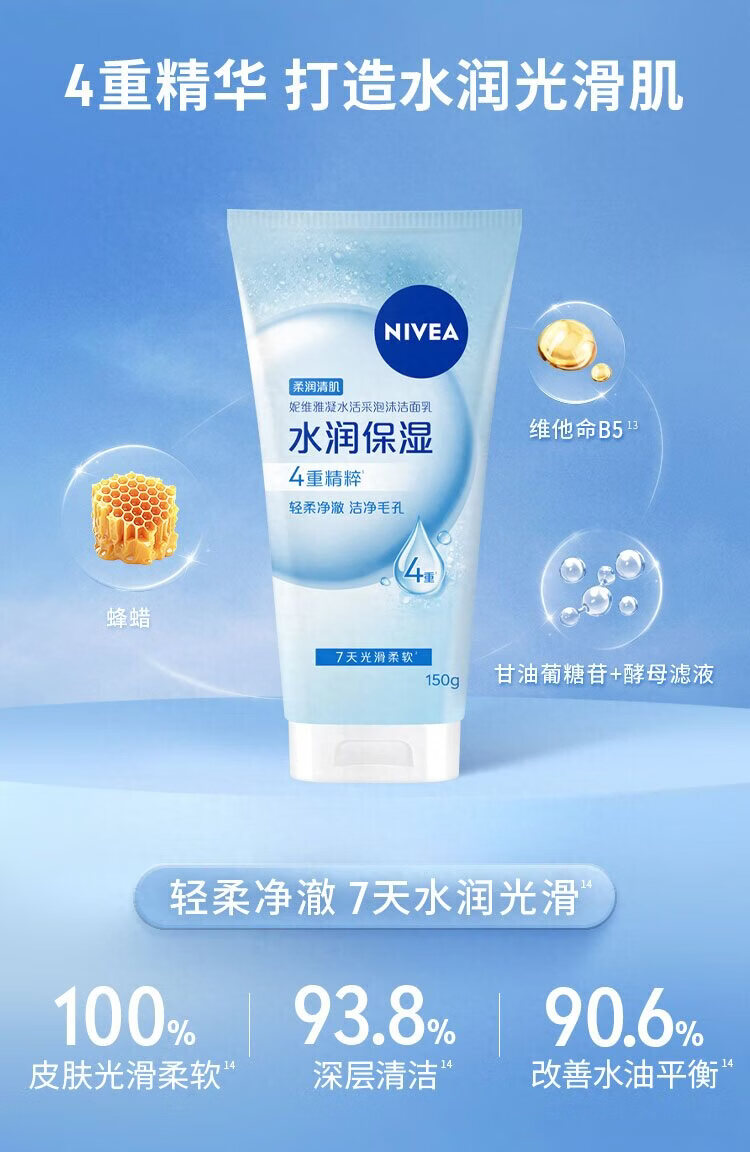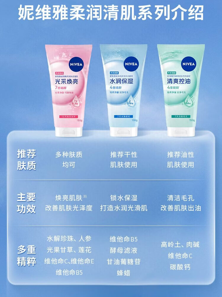 妮维雅洗面奶女150g/瓶深层清洁