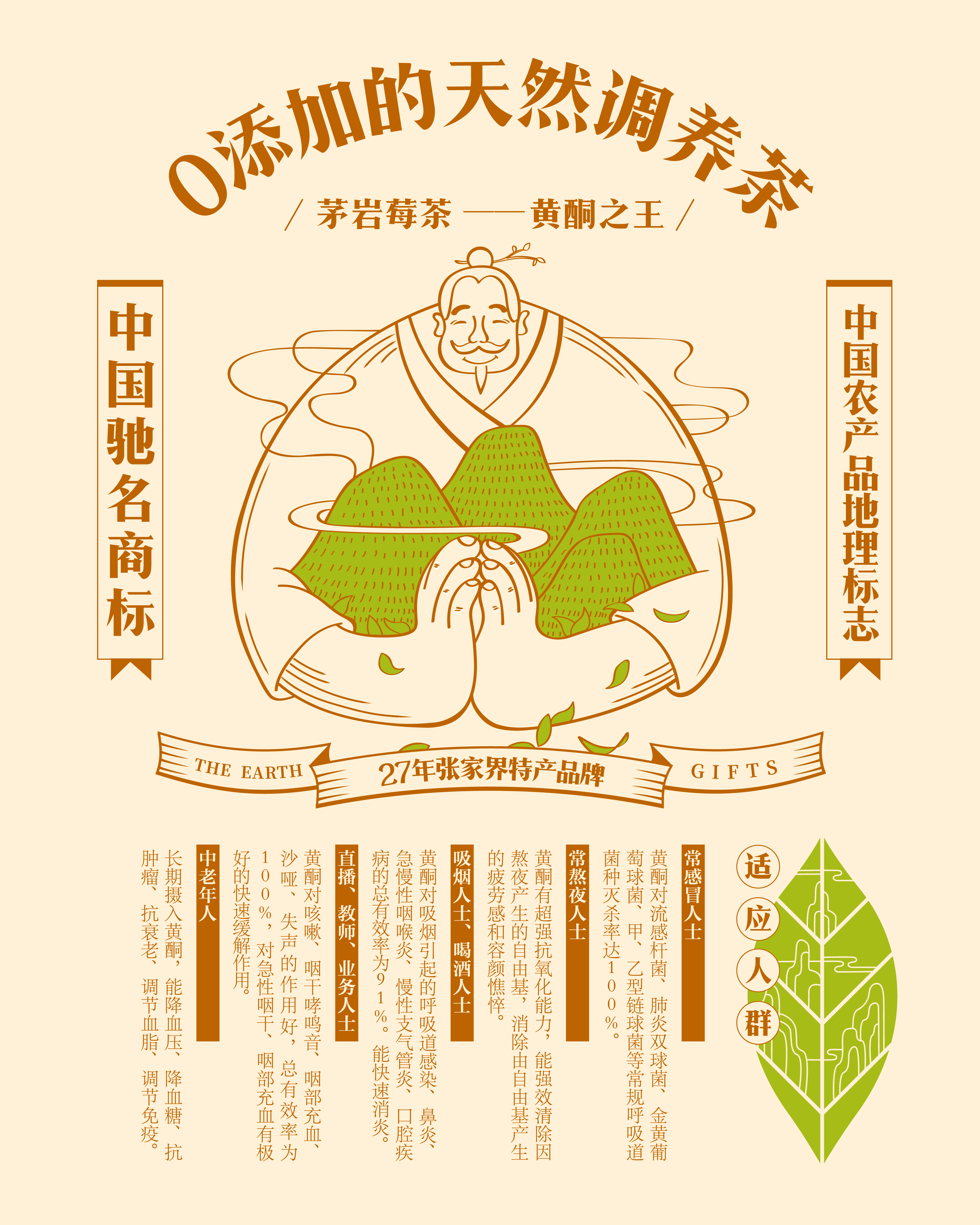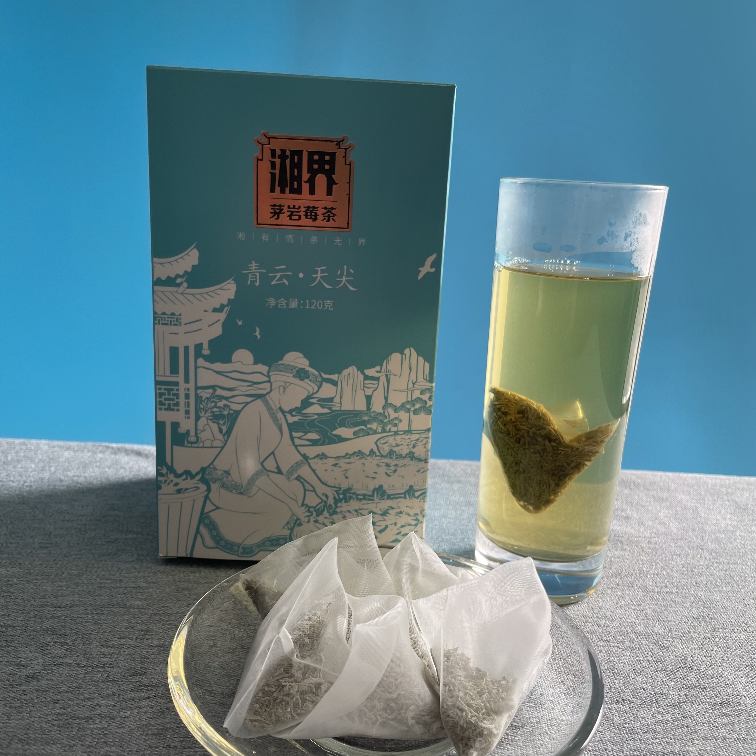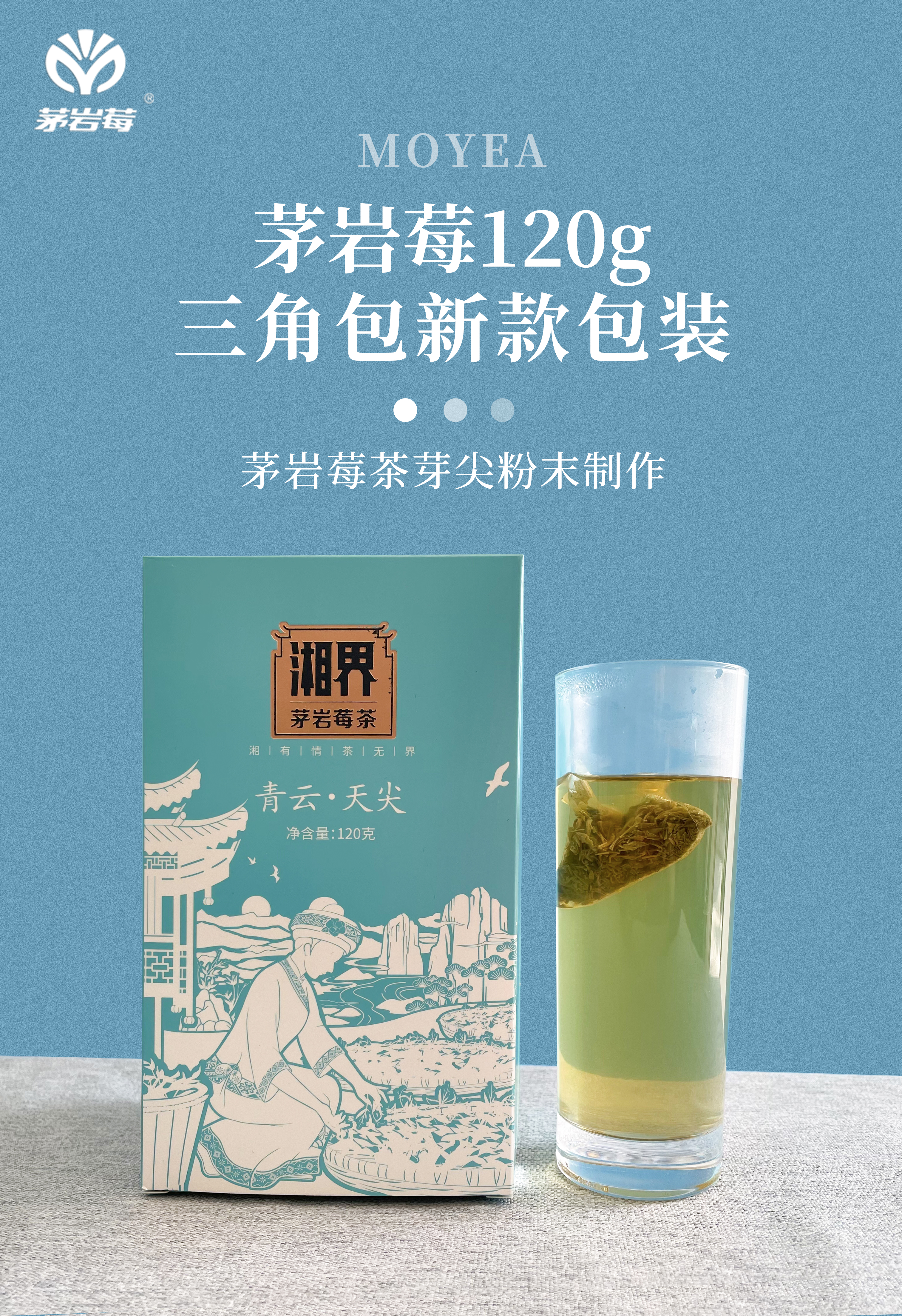 张家界茅岩莓集团莓茶深加工产品。原料采用茅岩莓成叶部位。采用的是破壁技术,打破茶藤的细胞壁,根茎叶科学配比。(中医讲究根茎叶入药),让人体更好的吸收黄铜和微量元素,更有利于人体吸收,效果更佳。冲泡后三角袋内依然清晰可见茶叶,并非碎末。回甘较慢,耐泡,回甘持久。性温,适合任何人群,相比于84克28袋款汤色更深,苦味更浓,特别适合中老年人,因为老年人的口感要稍微迟缓些。