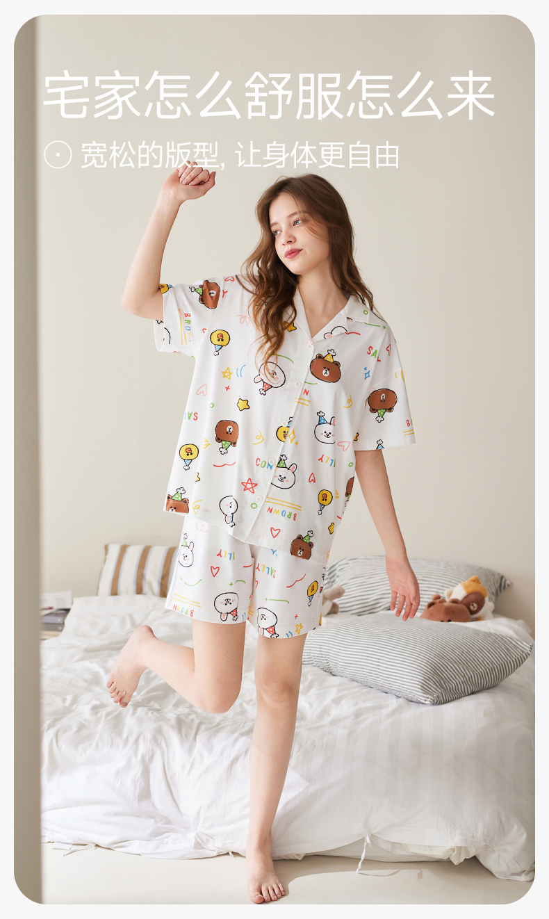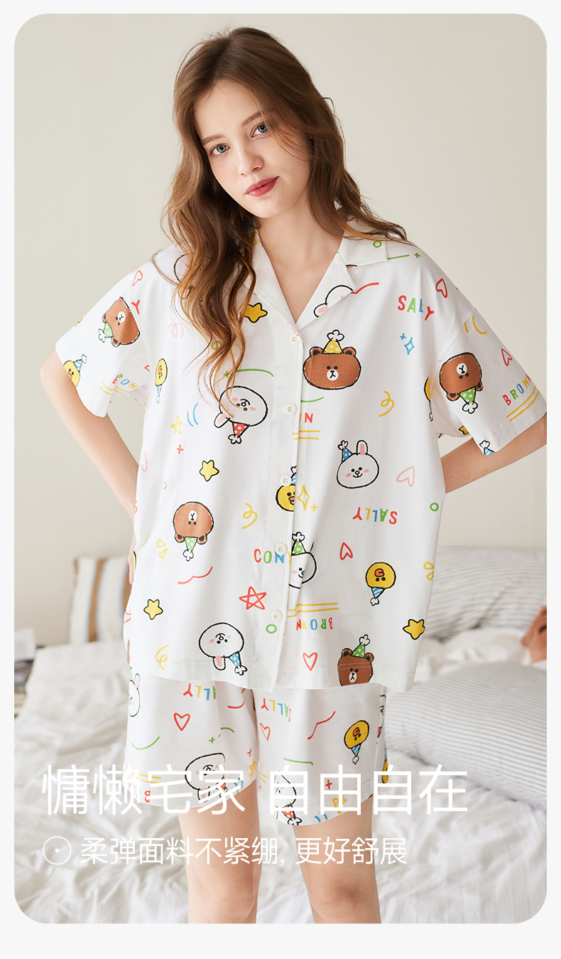 康妮雅女式短袖长裤开襟套装