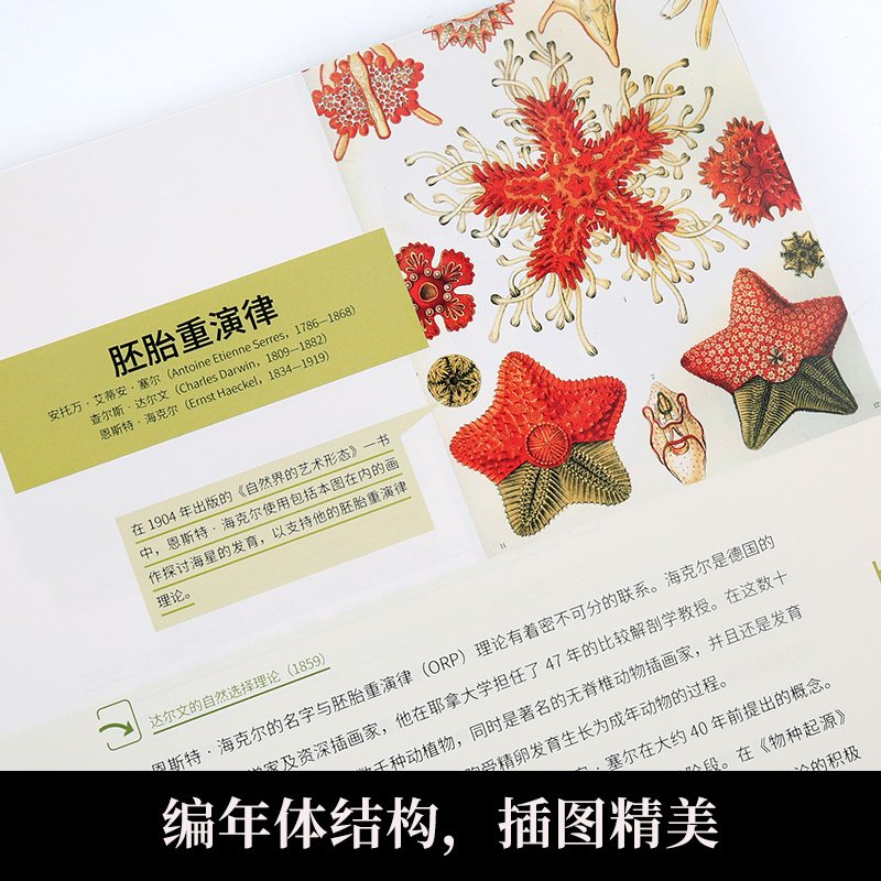 这些只是这本插图精美的书中涉及到众多引人深思的问题的一小部分。作者迈克尔· C. 杰拉尔德与格洛丽亚· E. 杰拉尔德探讨了生物学发展历史上250个令人着迷的里程碑事件,从史前期到21世纪。从生命的起源到实验胚胎学,各个条目涵盖广泛的主题,包括细胞理论、遗传学、进化学、生理学、热学、分子生物学、生态学等等。同时,这些里程碑所涉及到的著名人物也是本书的特色,包括亚里士多德、泰奥弗拉斯托斯、希波克拉底、查尔斯·达尔文、卡尔·林奈等等。