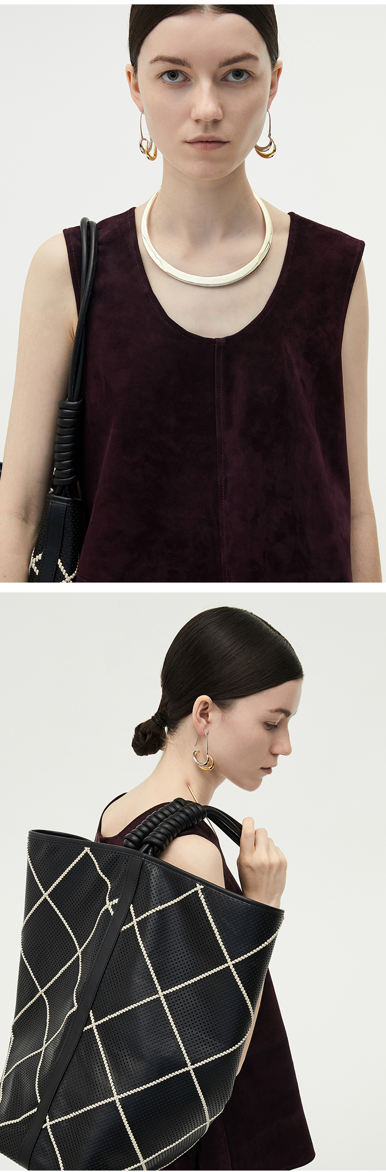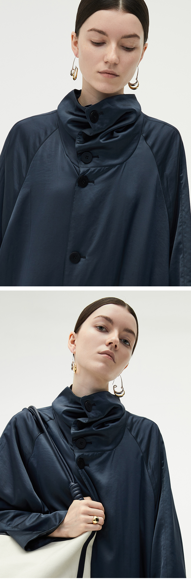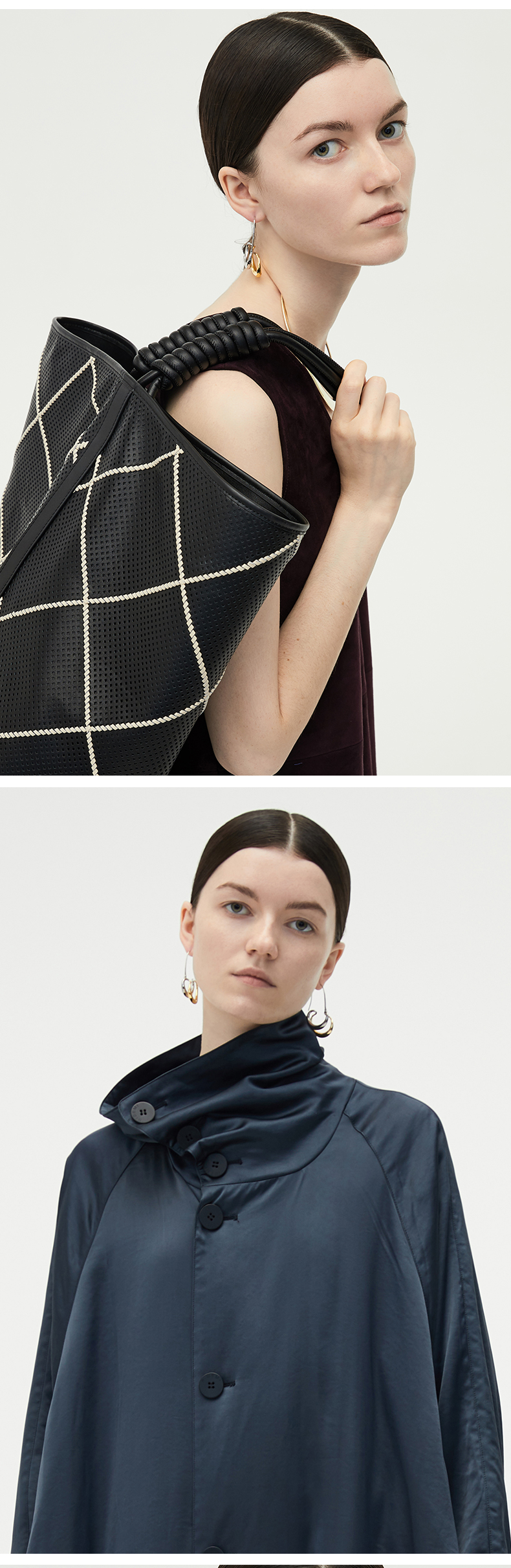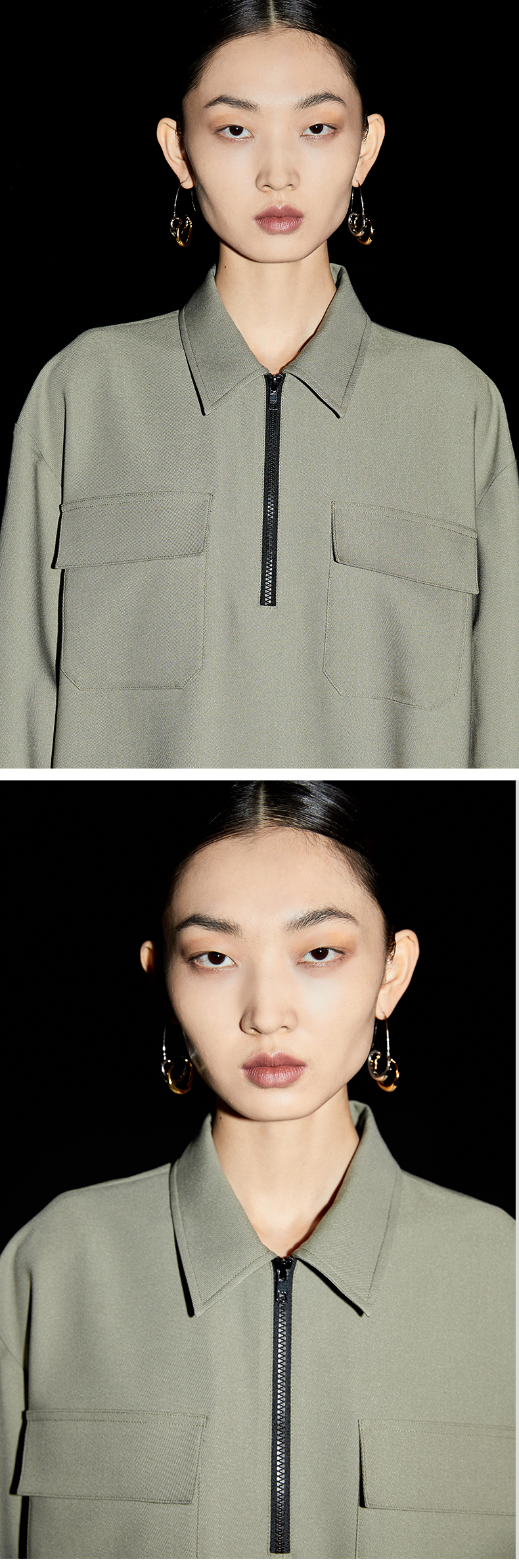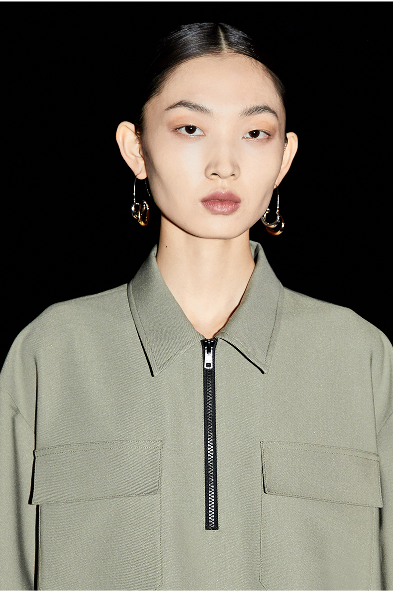 HIDEMI 简约设计感微荡立领半袖廓形套装 黑色/白色 上衣/半身裙