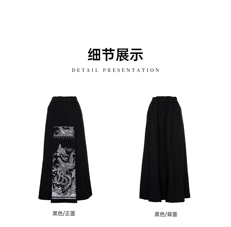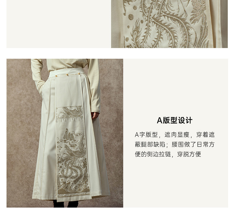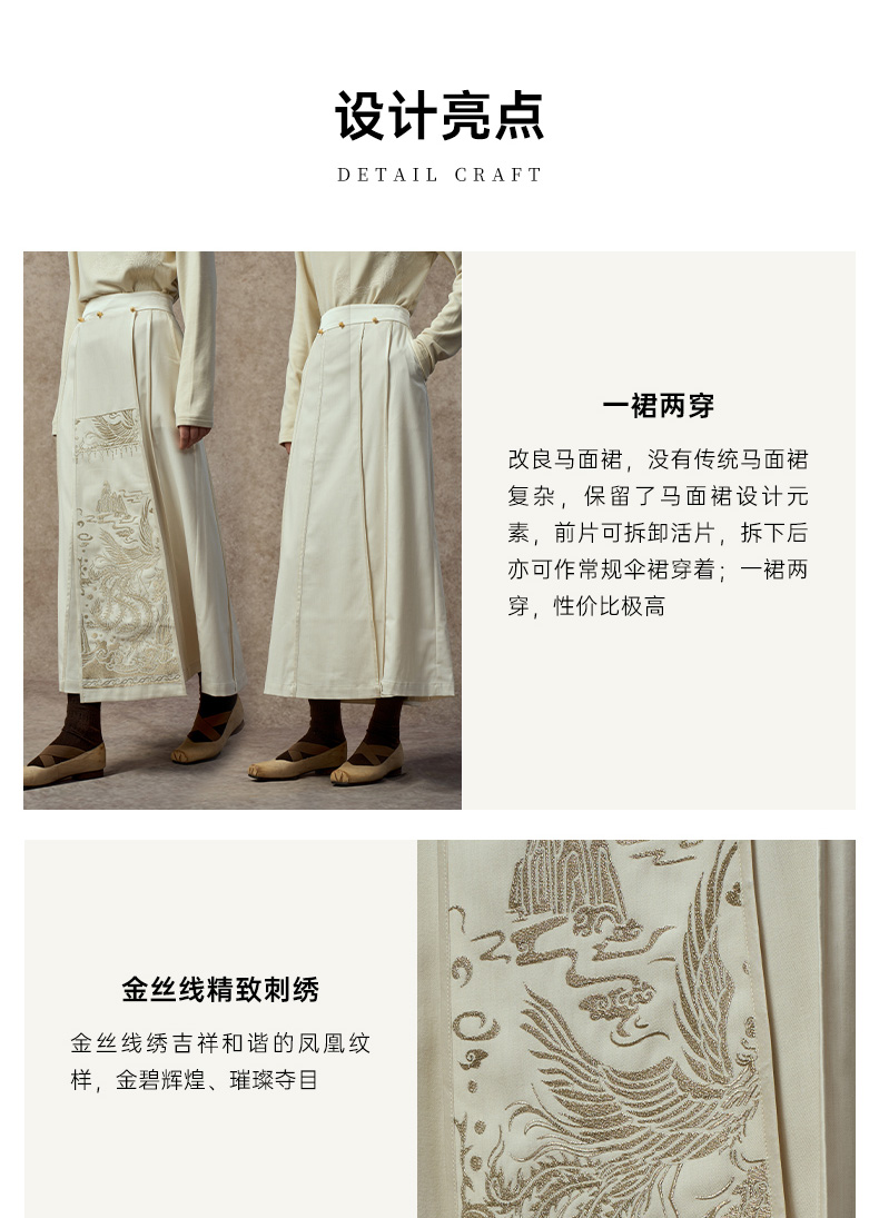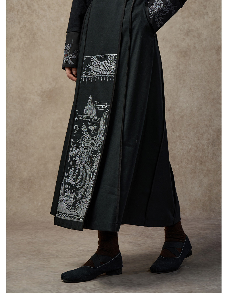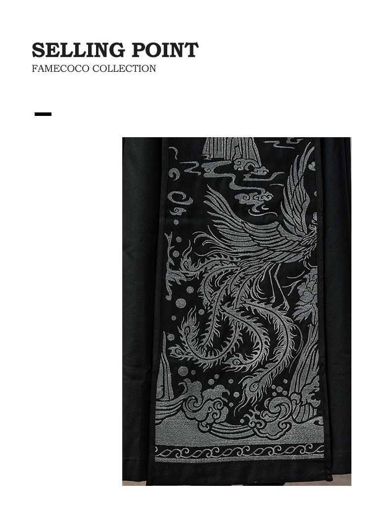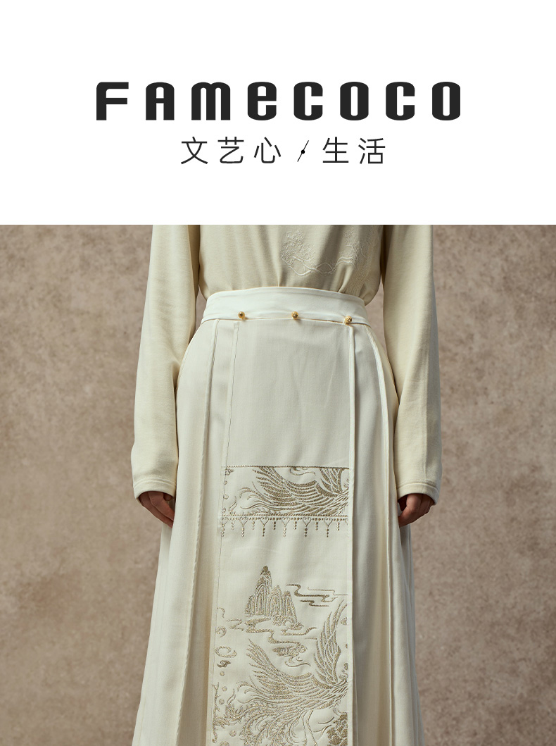 Famecoco新中式国风织金凤凰刺绣马面裙宽松长款半身裙FAC8HA026