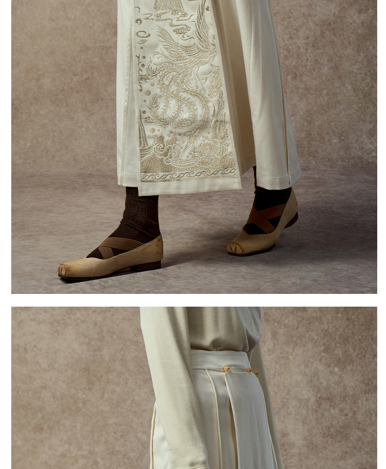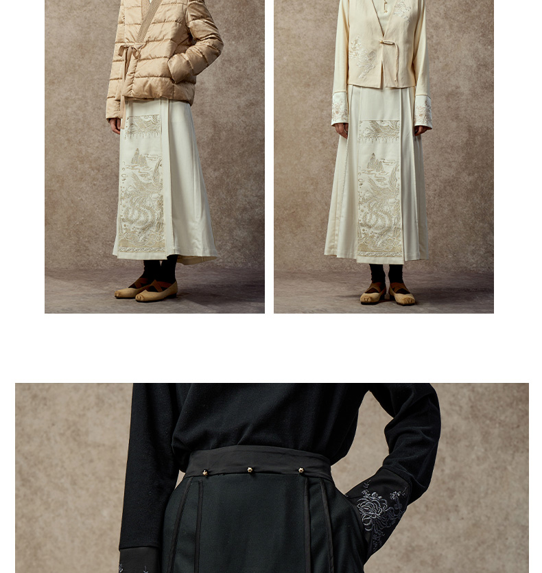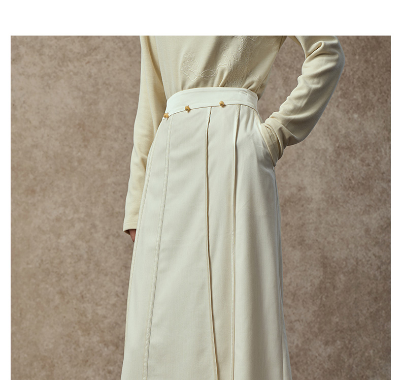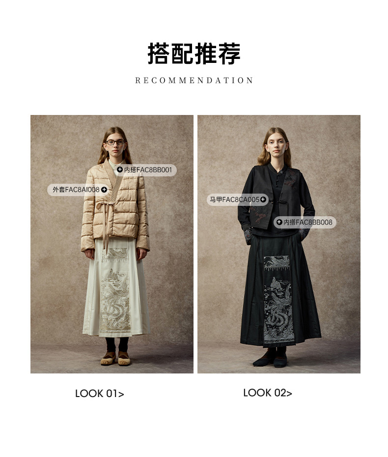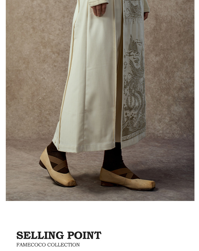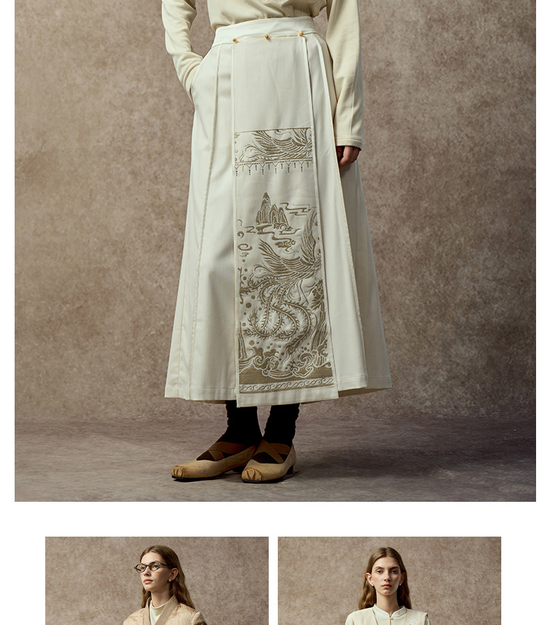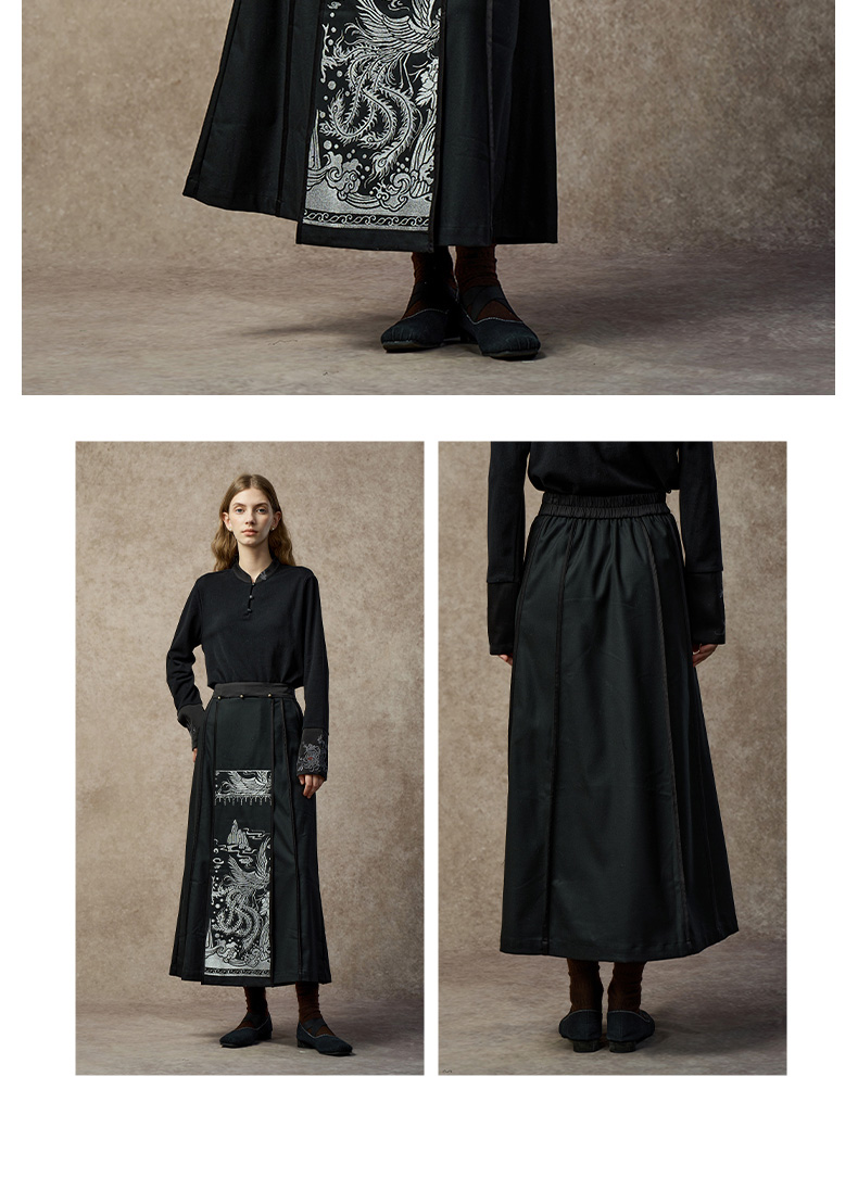 Famecoco新中式国风织金凤凰刺绣马面裙宽松长款半身裙FAC8HA026