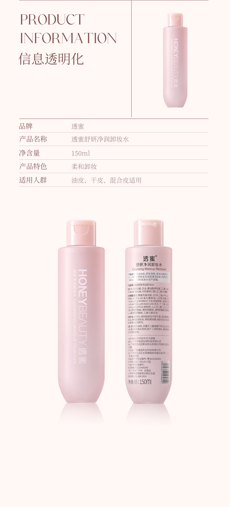 [卸妆水]【9.9元特价丨29.7元任选3件 | 单笔满59元送卡皮巴拉迷你收纳包】透蜜 舒妍净润卸妆水150ml(3件起购,拍下3件立减)