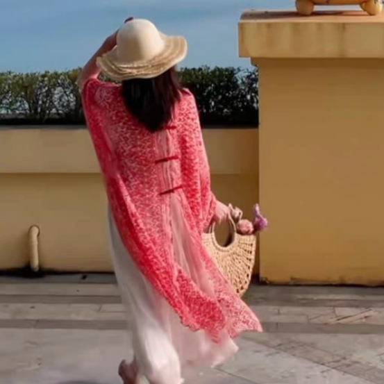 ☺️【夏日旅行风沙滩盘扣披肩】家人们谁懂啊!!🌸带着这件夏日旅行风沙滩盘扣披肩去海边, 直接被路人追着要链接!!