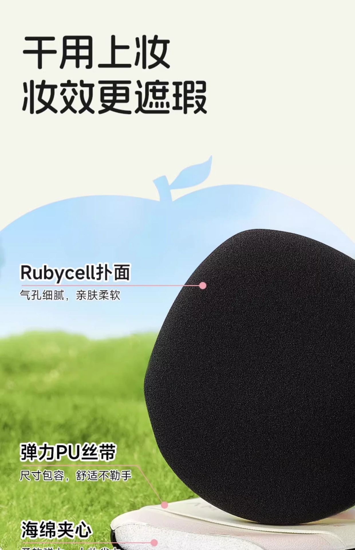 【棉花糖同款材质❗️打造服帖遮瑕底妆】尔木萄粉扑采摘气垫粉扑梨桃粉扑干湿两用不吃粉粉底液粉扑美妆。ja