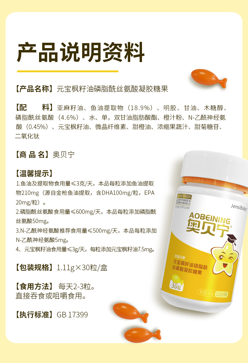 奥贝宁 元宝枫籽油磷脂酰丝氨酸凝胶糖果金枪鱼油DHA多动智力发育