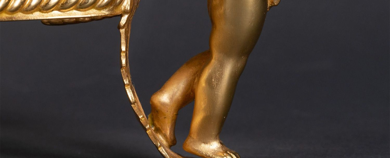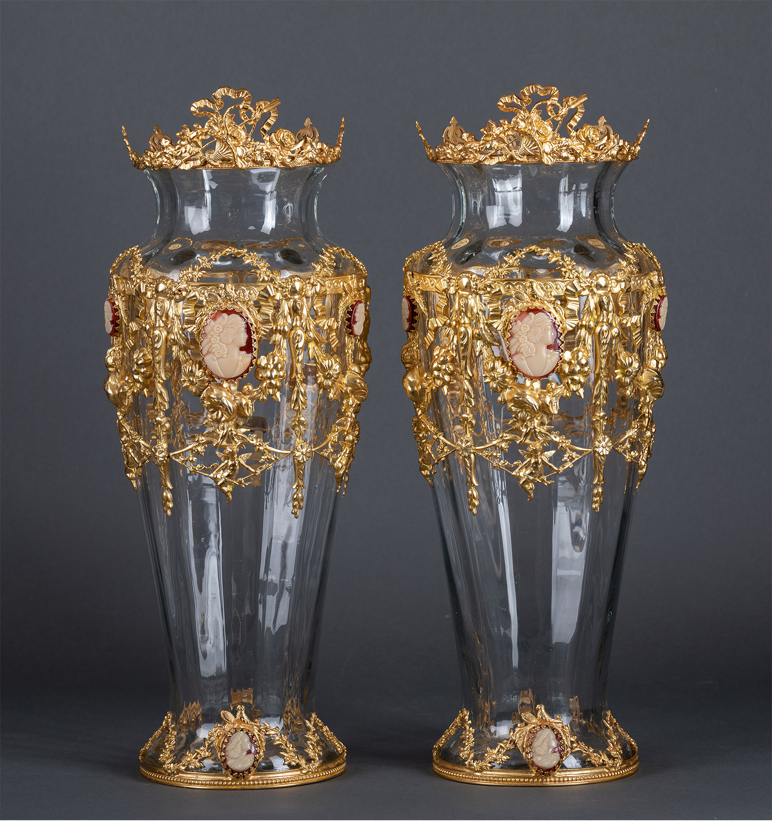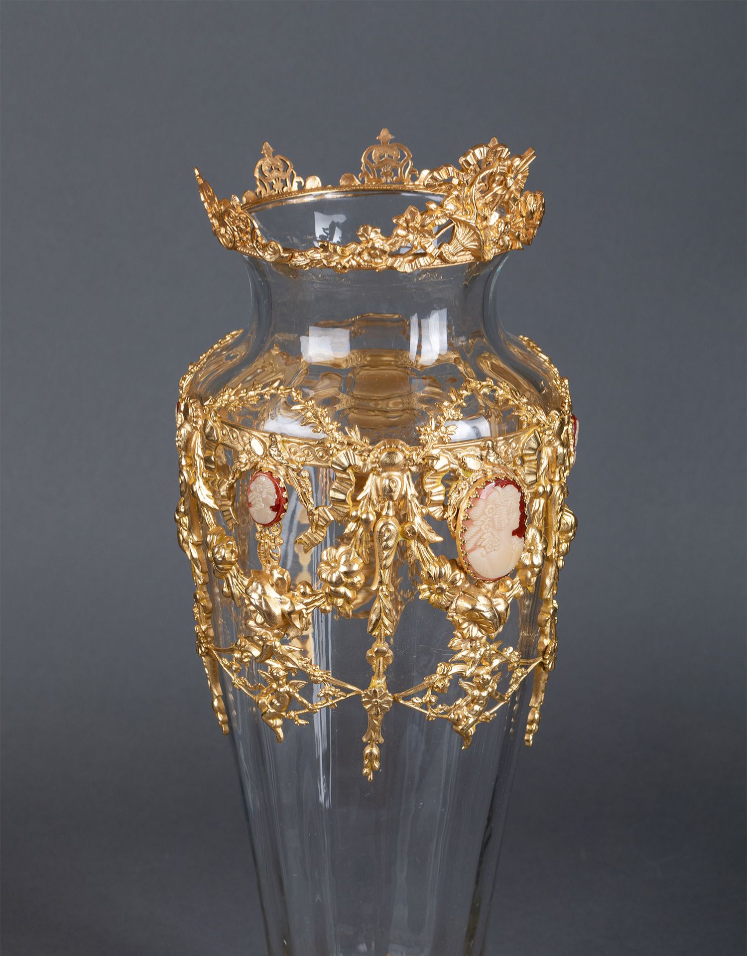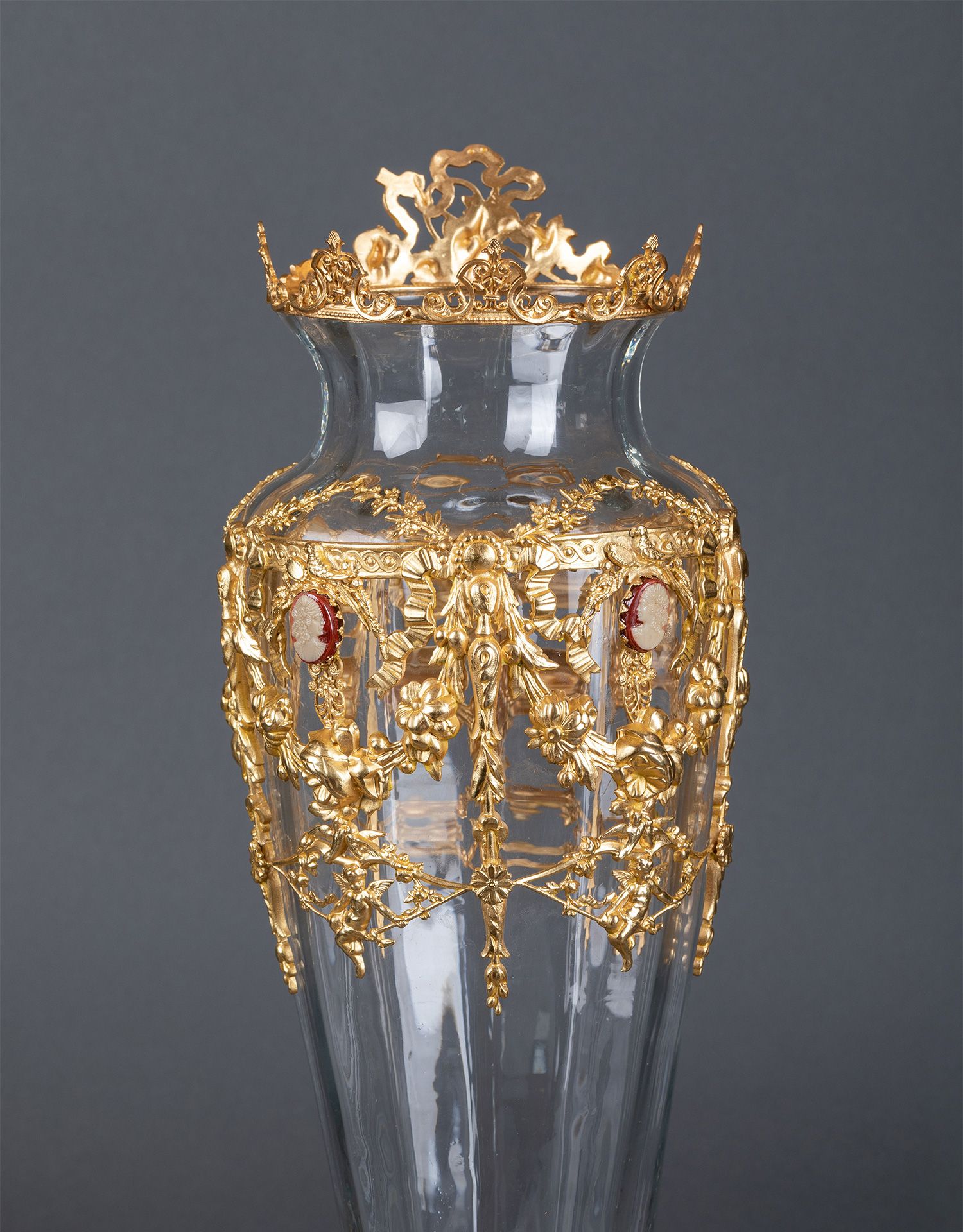 独角鹿西洋古董法国铜鎏金古典女神Cameo浮雕水晶花果盆花瓶摆件