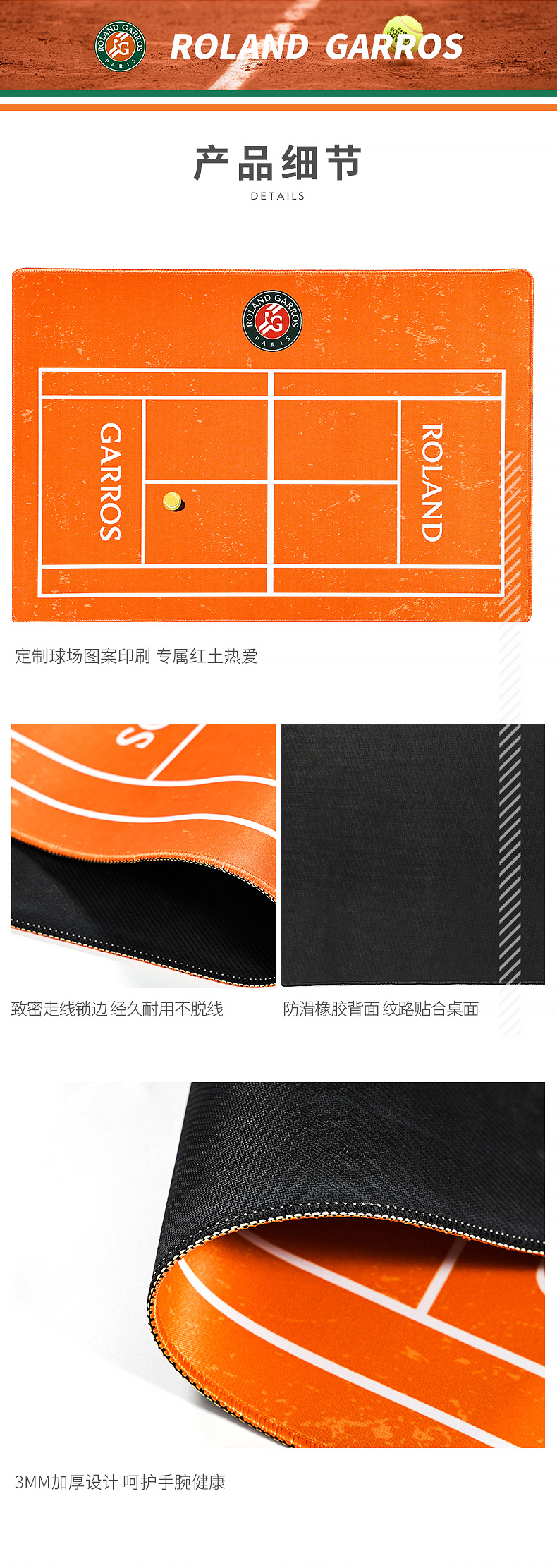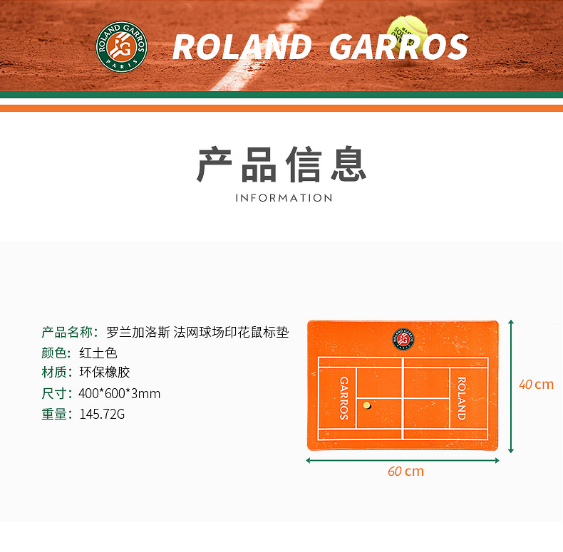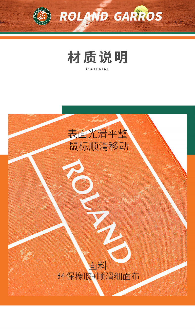 罗兰加洛斯法网超大号鼠标垫2022新款电脑桌垫红土球场键盘垫