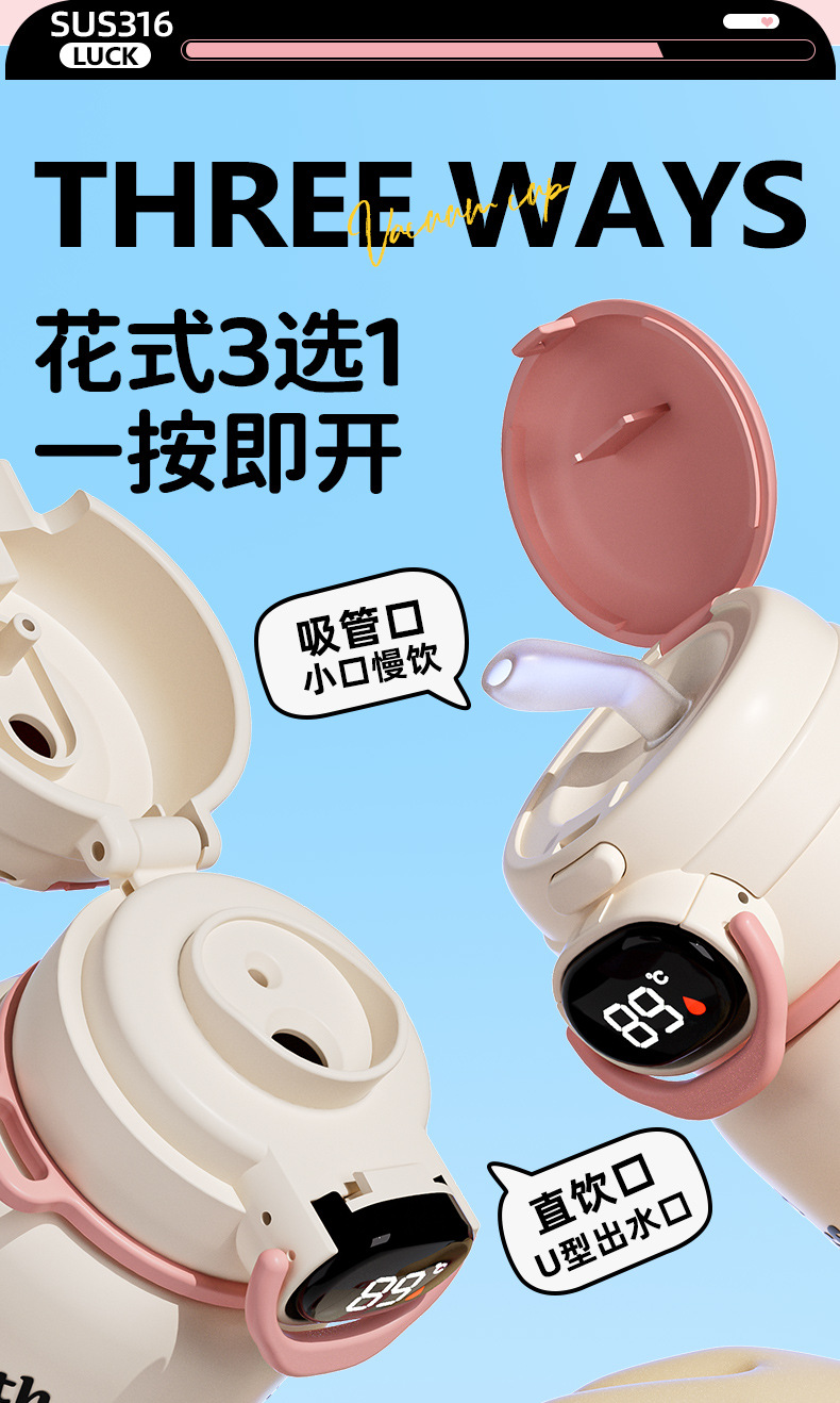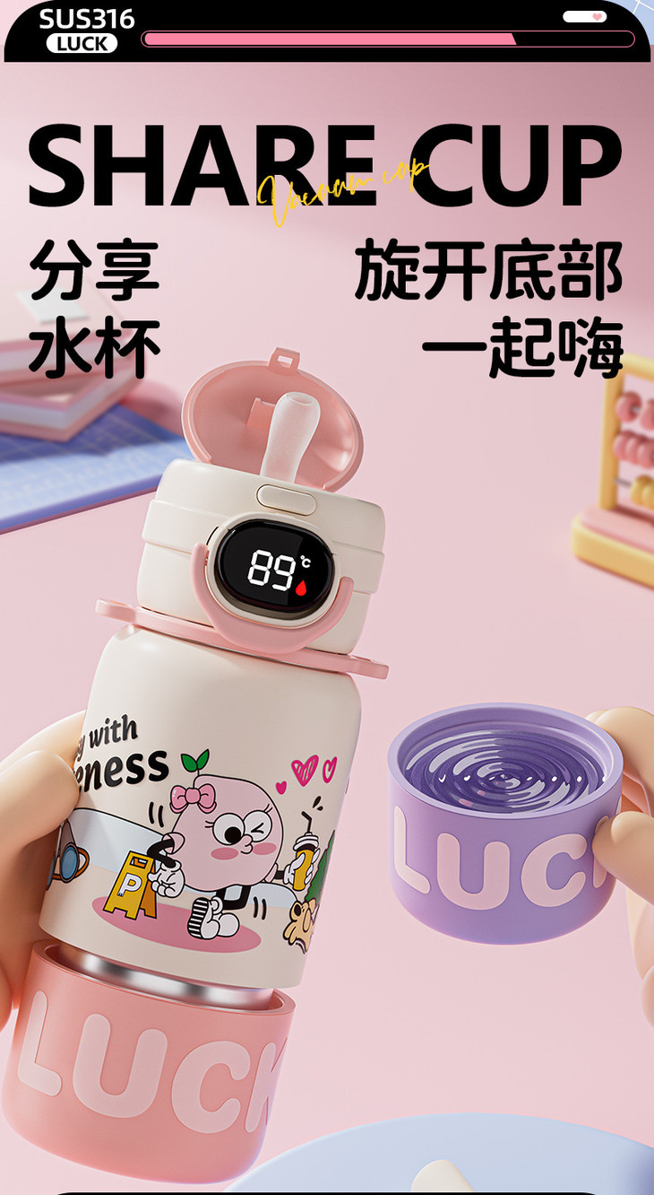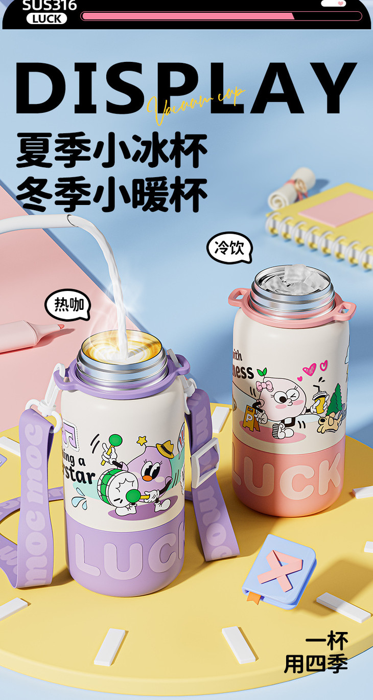 保温杯女孩上学学生水杯2024新款高颜值不锈钢吸管杯子卡通