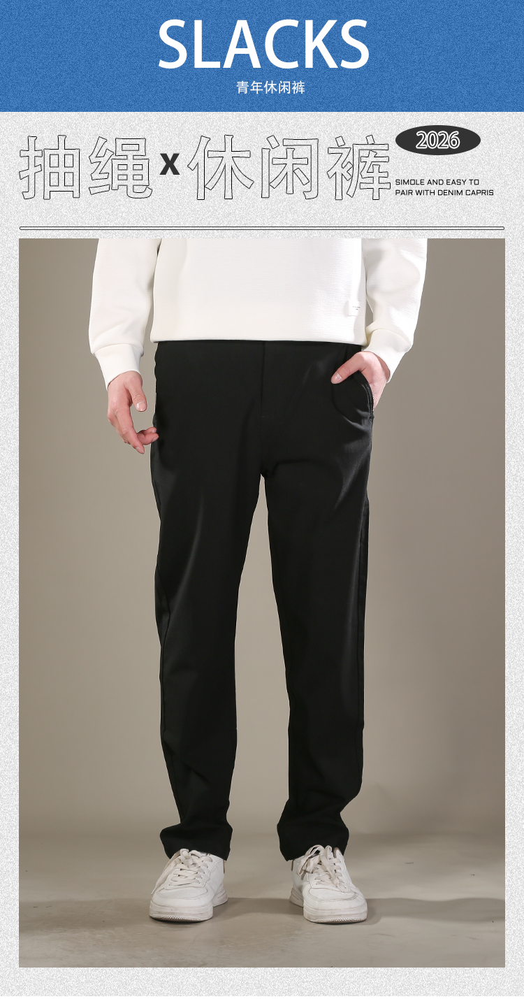 DRONKOO 2026 松紧腰右口袋织唛腰头贴布四面弹中厚休闲长裤
