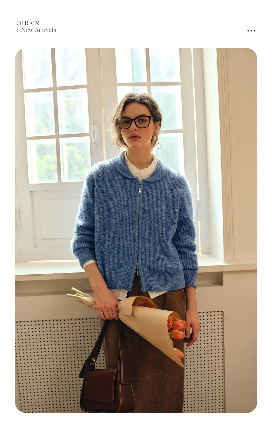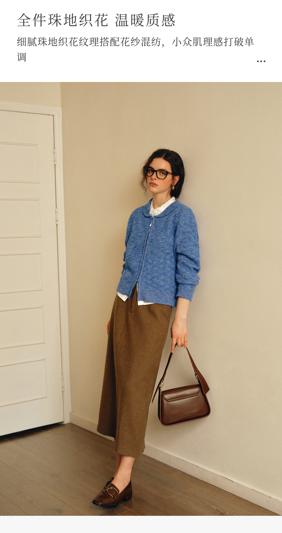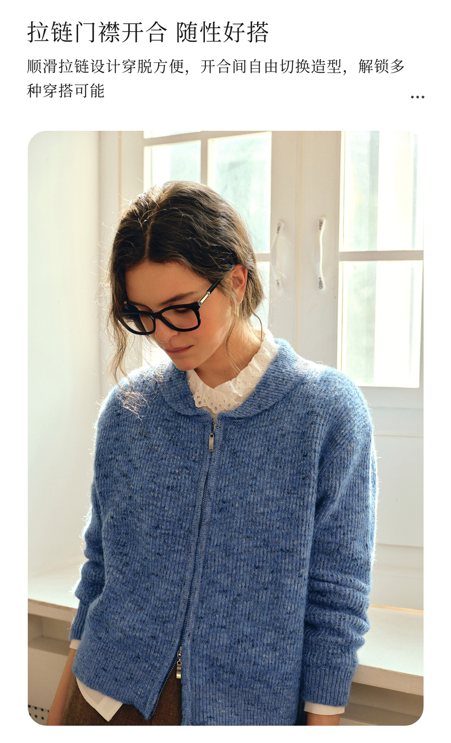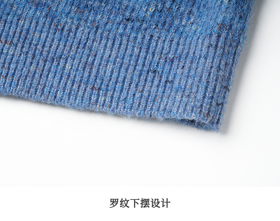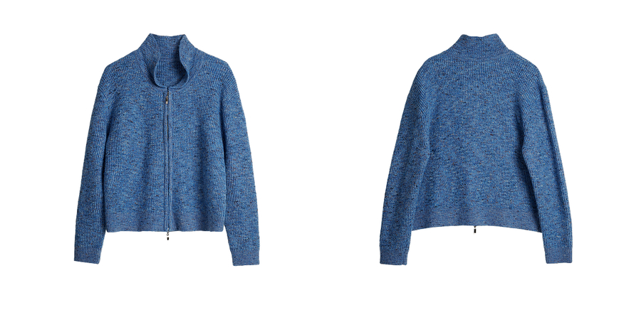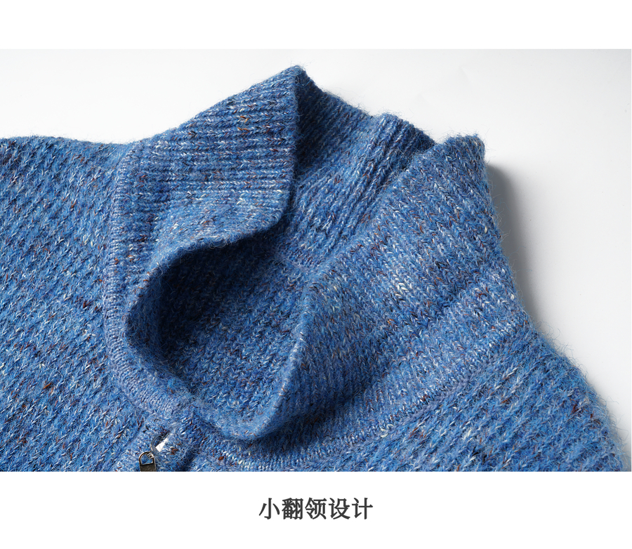 OLrain欧芮儿2025新款女秋季休闲蓝色小翻领拉链毛针织开衫羊毛衣