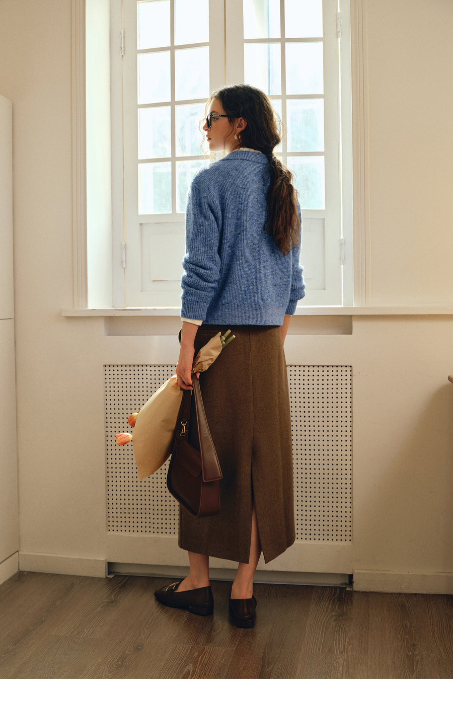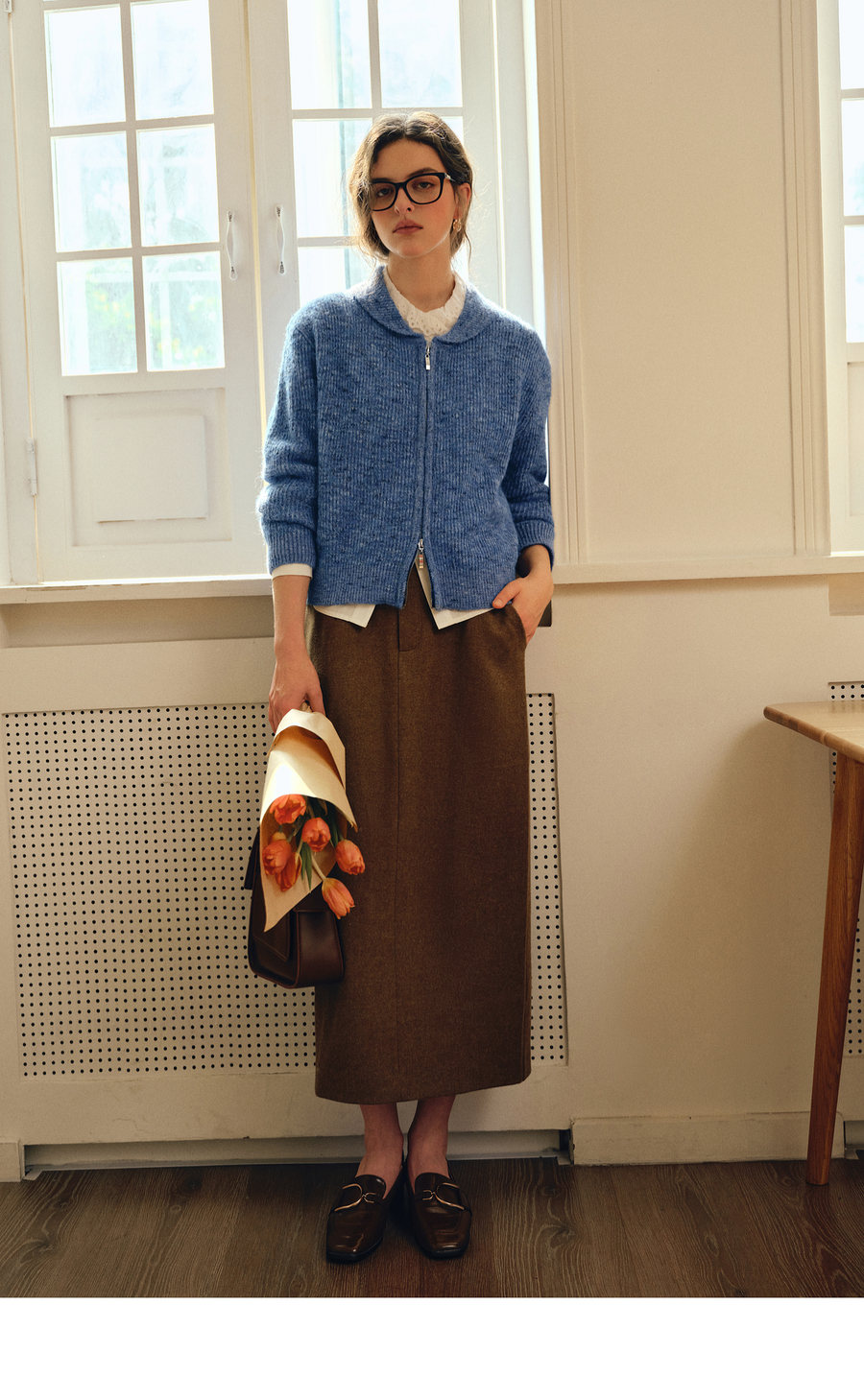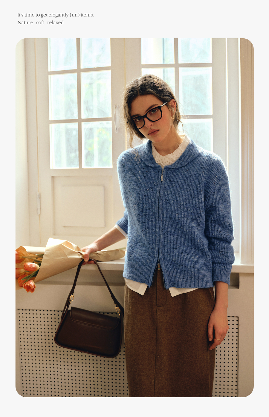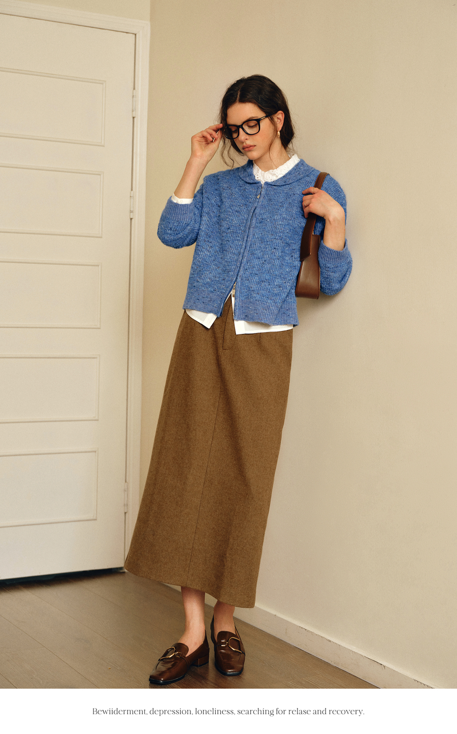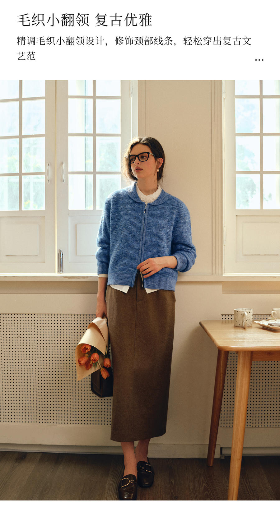 OLrain欧芮儿2025新款女秋季休闲蓝色小翻领拉链毛针织开衫羊毛衣
