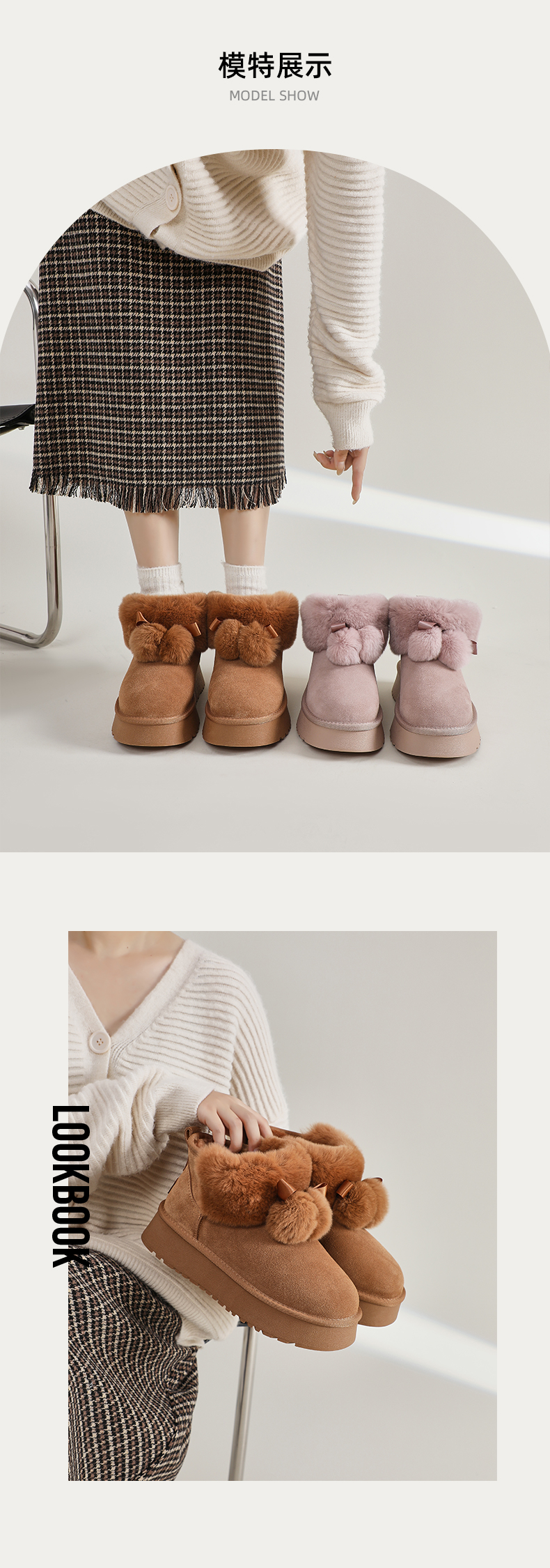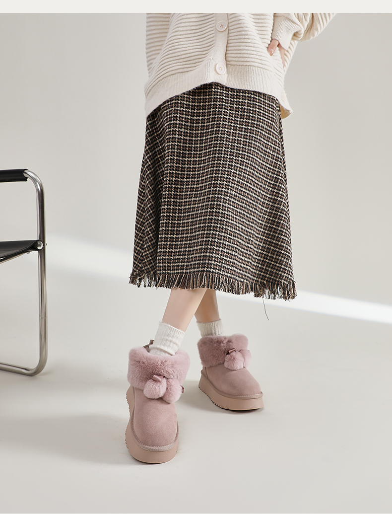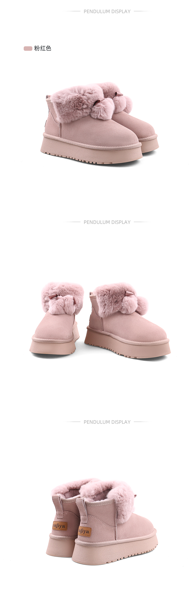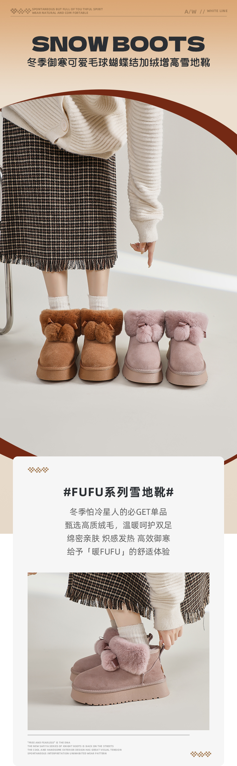 Safiya/索菲娅2023冬季御寒可爱毛球蝴蝶结加绒增高雪地靴 SF3411A401