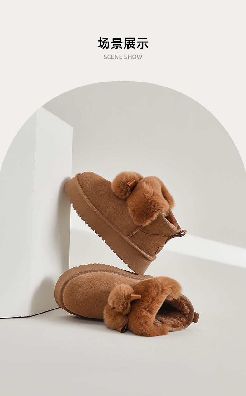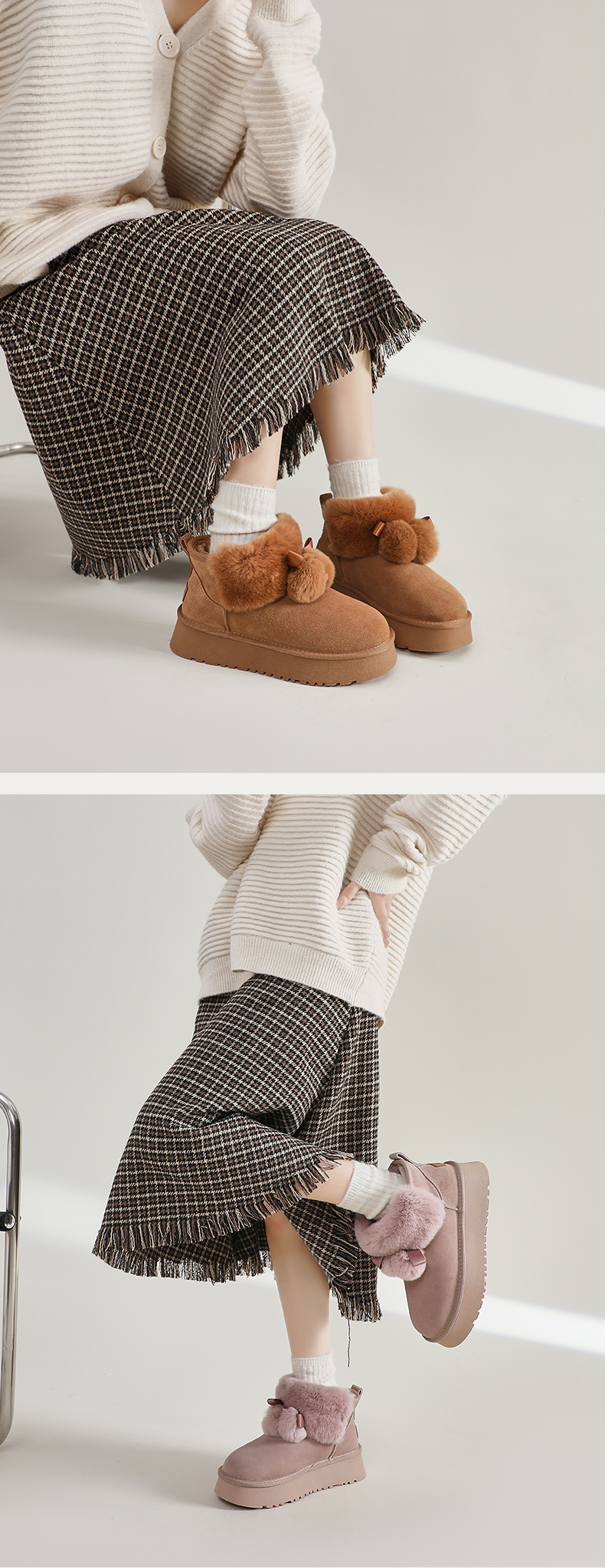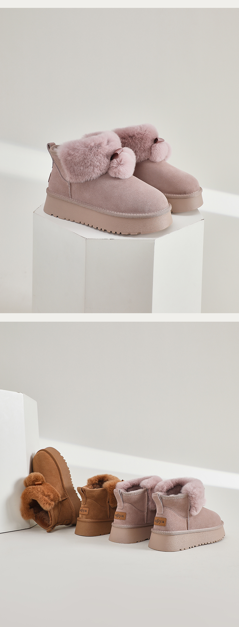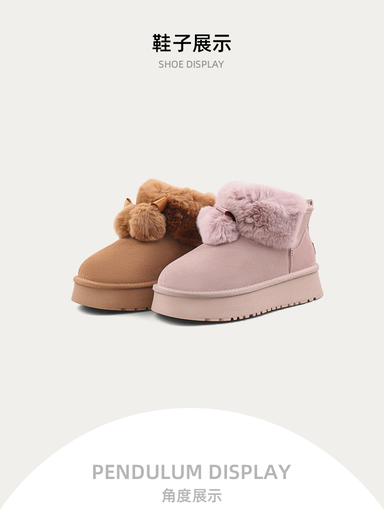 Safiya/索菲娅2023冬季御寒可爱毛球蝴蝶结加绒增高雪地靴 SF3411A401