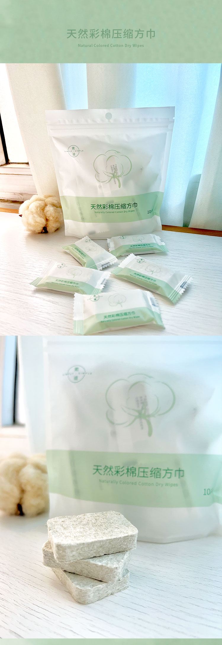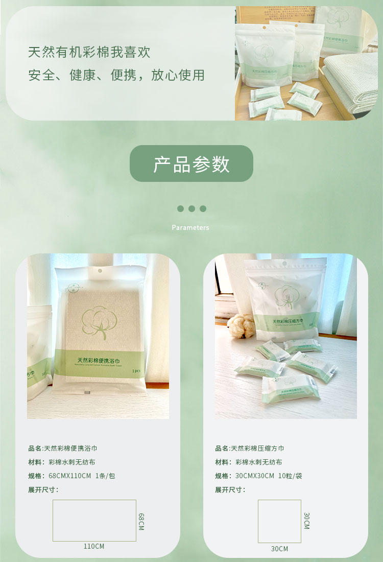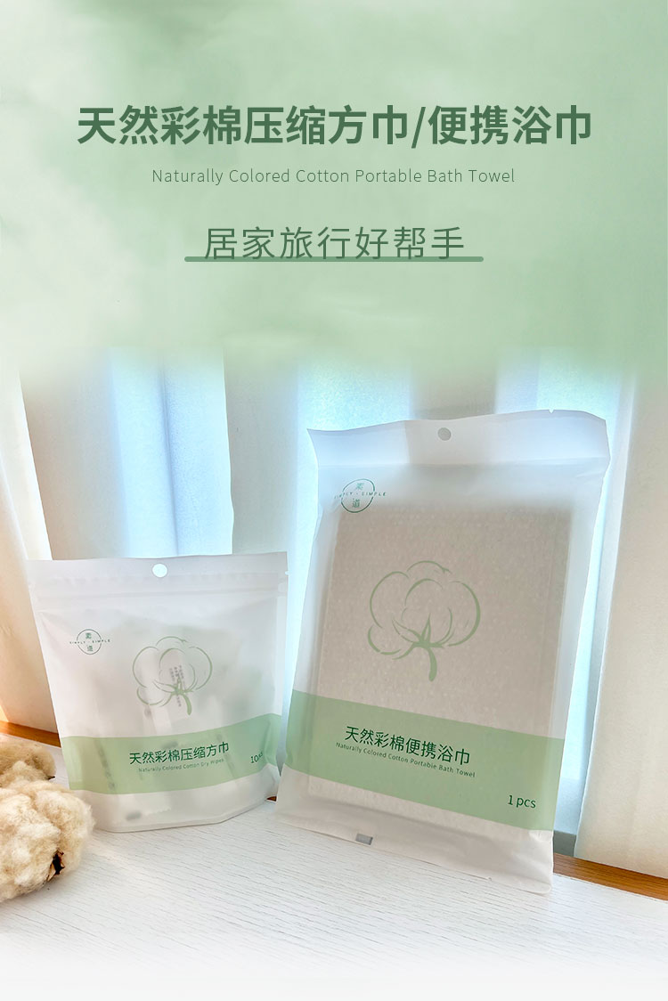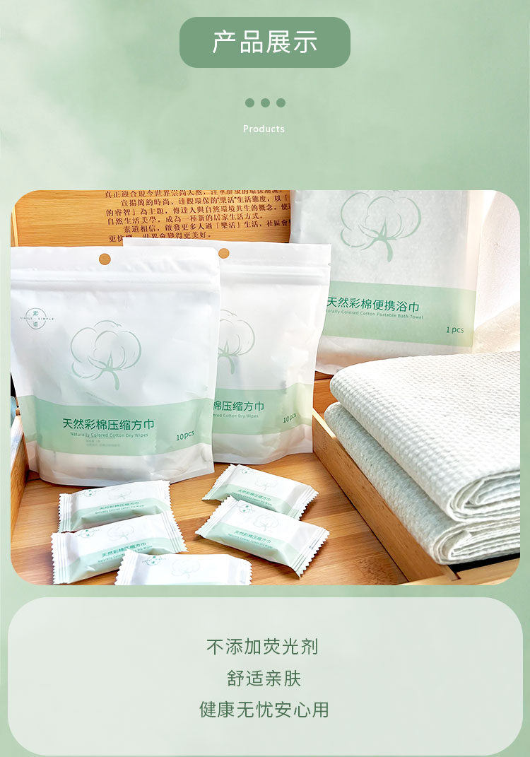 素道有机彩棉一次性纯棉方巾 压缩100%棉浴巾