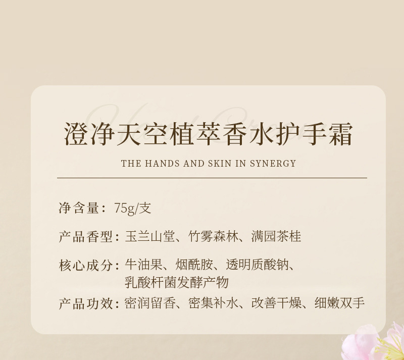 「三款香型! 秋冬常备」澄净天空植萃香水护手霜 烟酰胺护手霜清爽保湿补水男女美容护肤