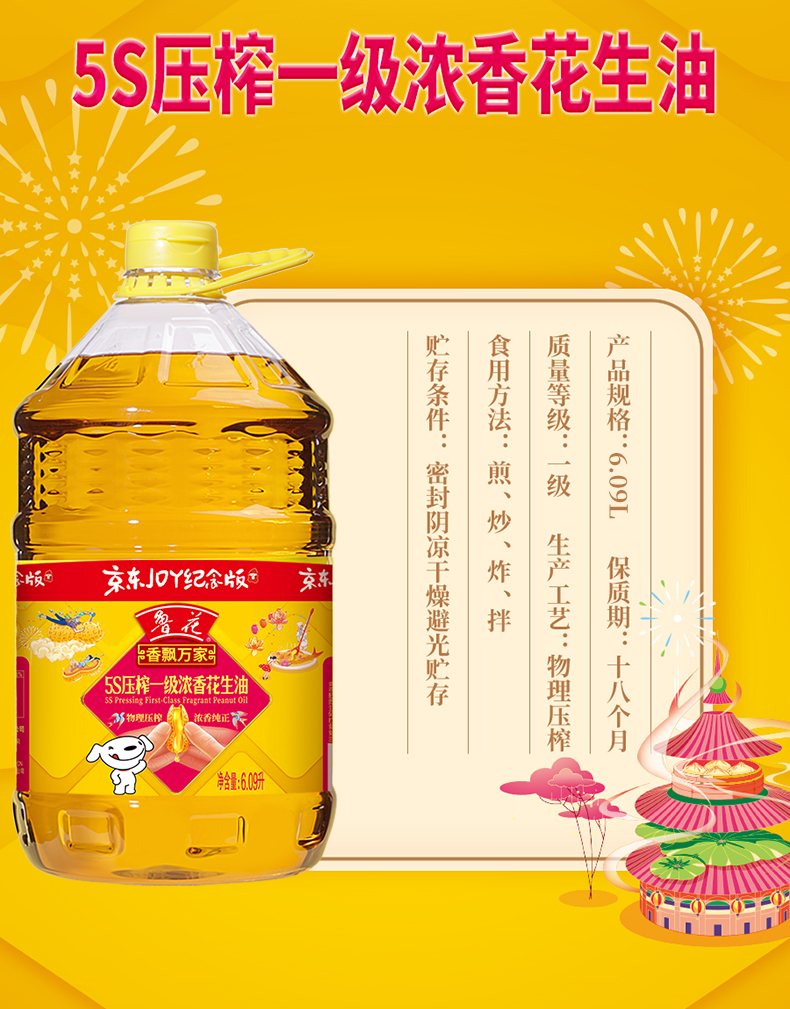 鲁花 食用油 5S物理压榨一级花生油6.09L 香飘万家系列 浓香花生油
