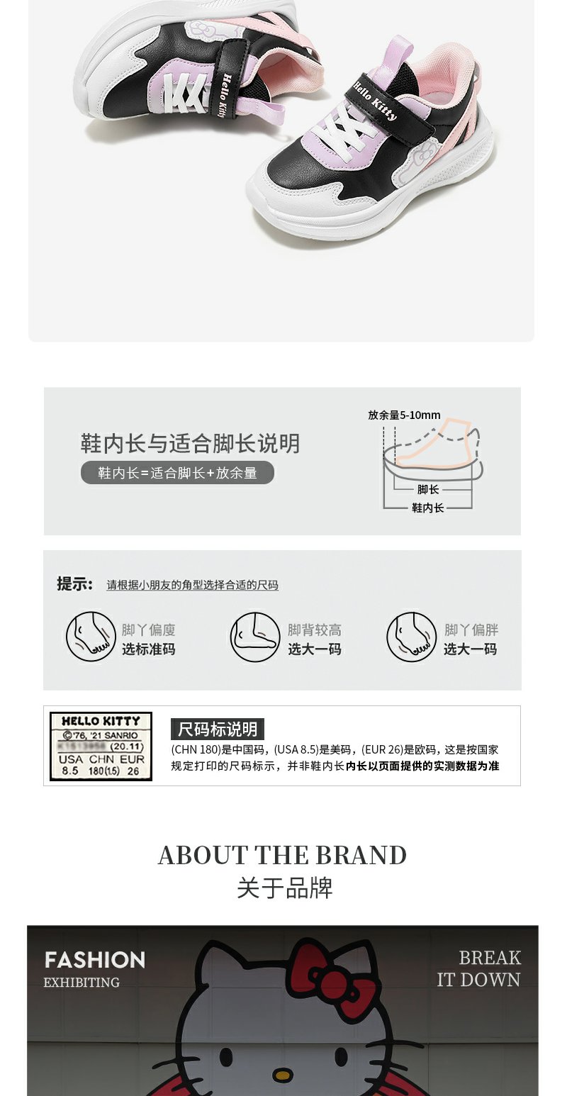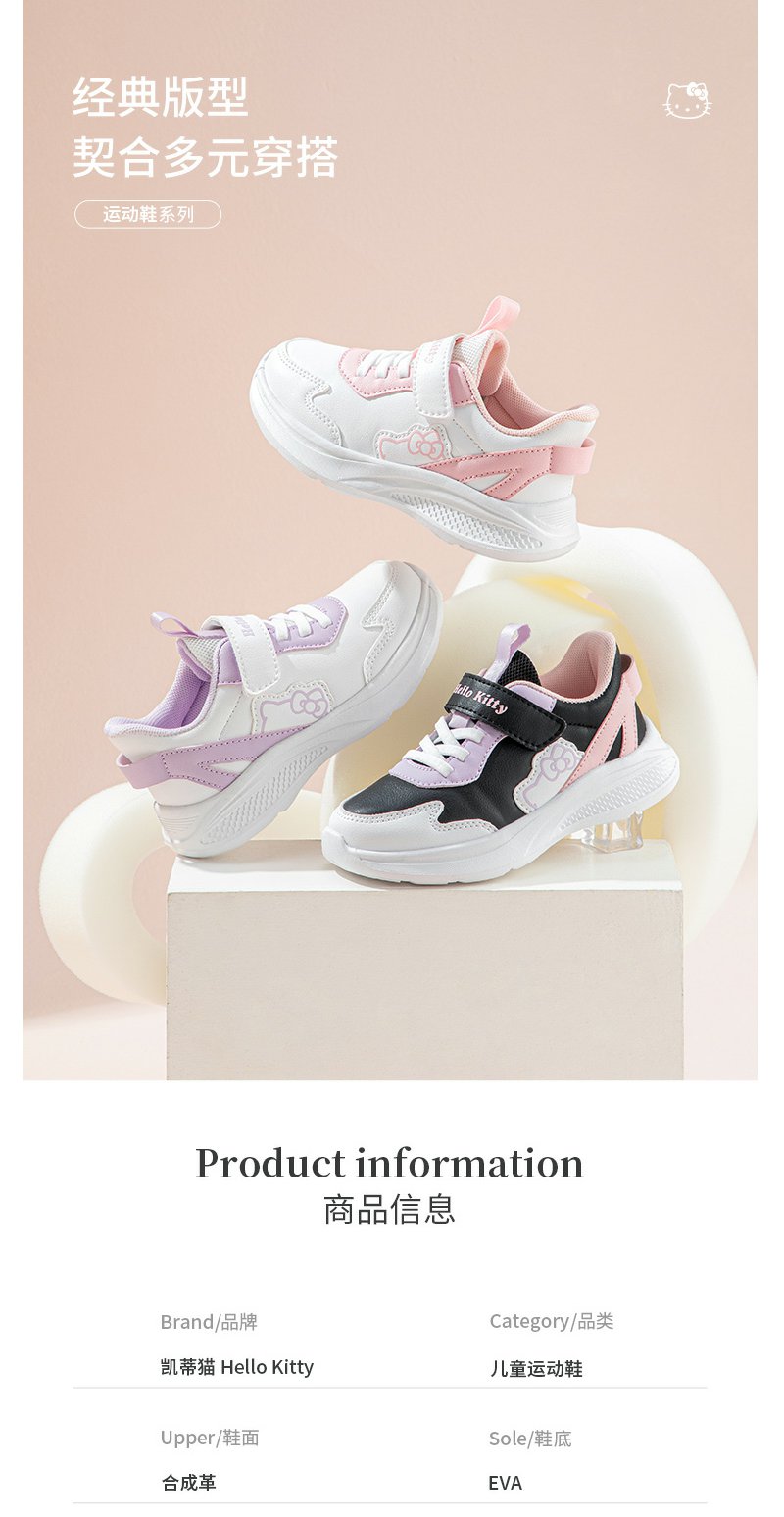 HelloKitty童鞋女童运动鞋春季2024新款儿童小白鞋软底防滑网面鞋