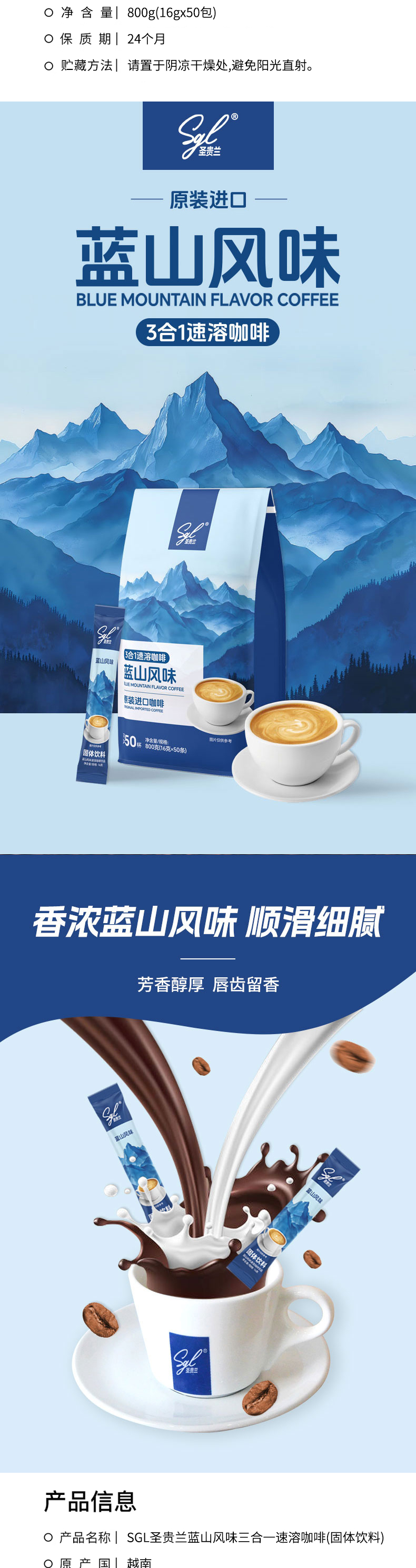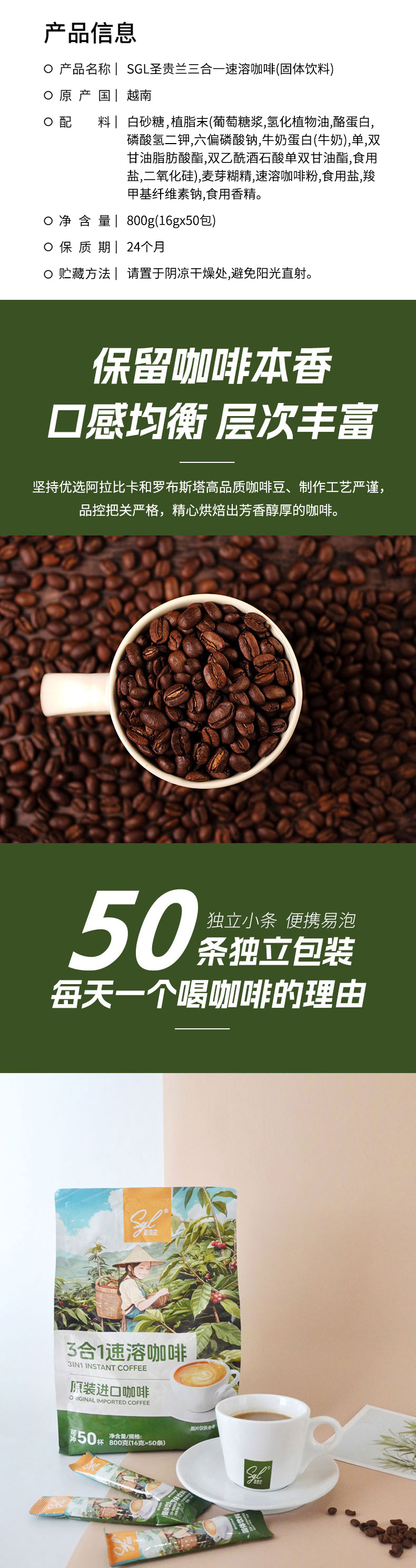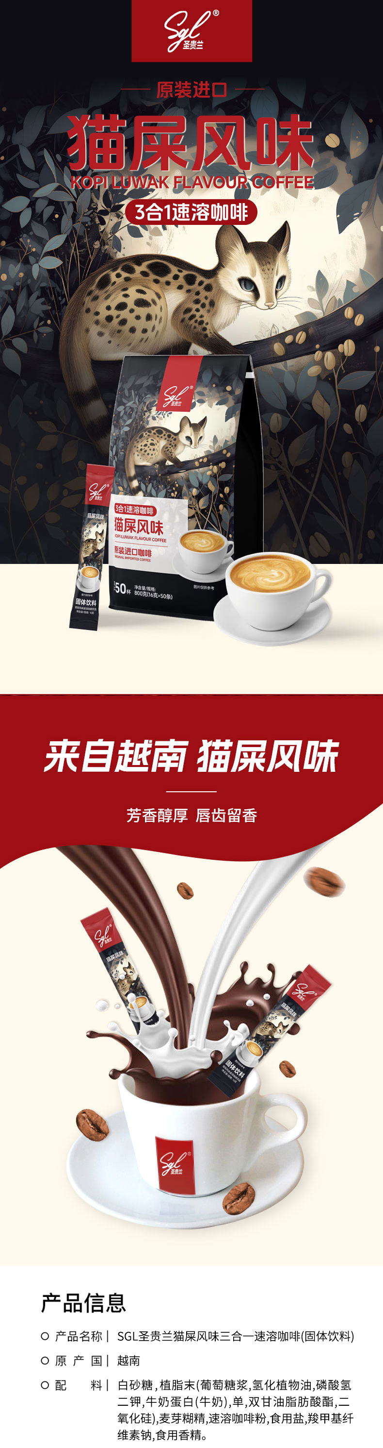 越南进口SGL圣贵兰猫屎风味丨蓝山风味丨三合一速溶咖啡800g