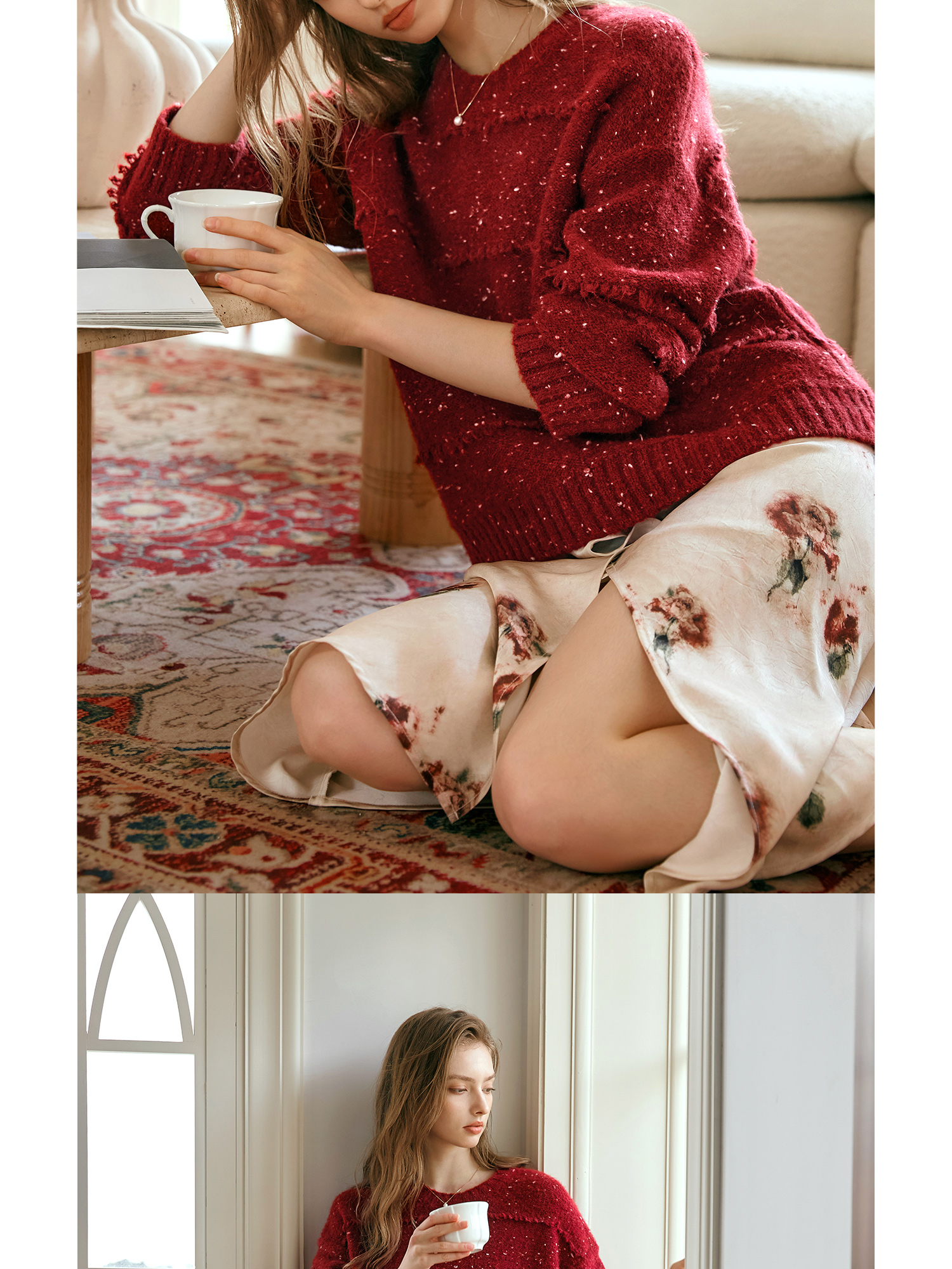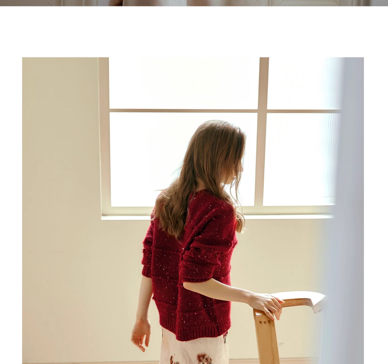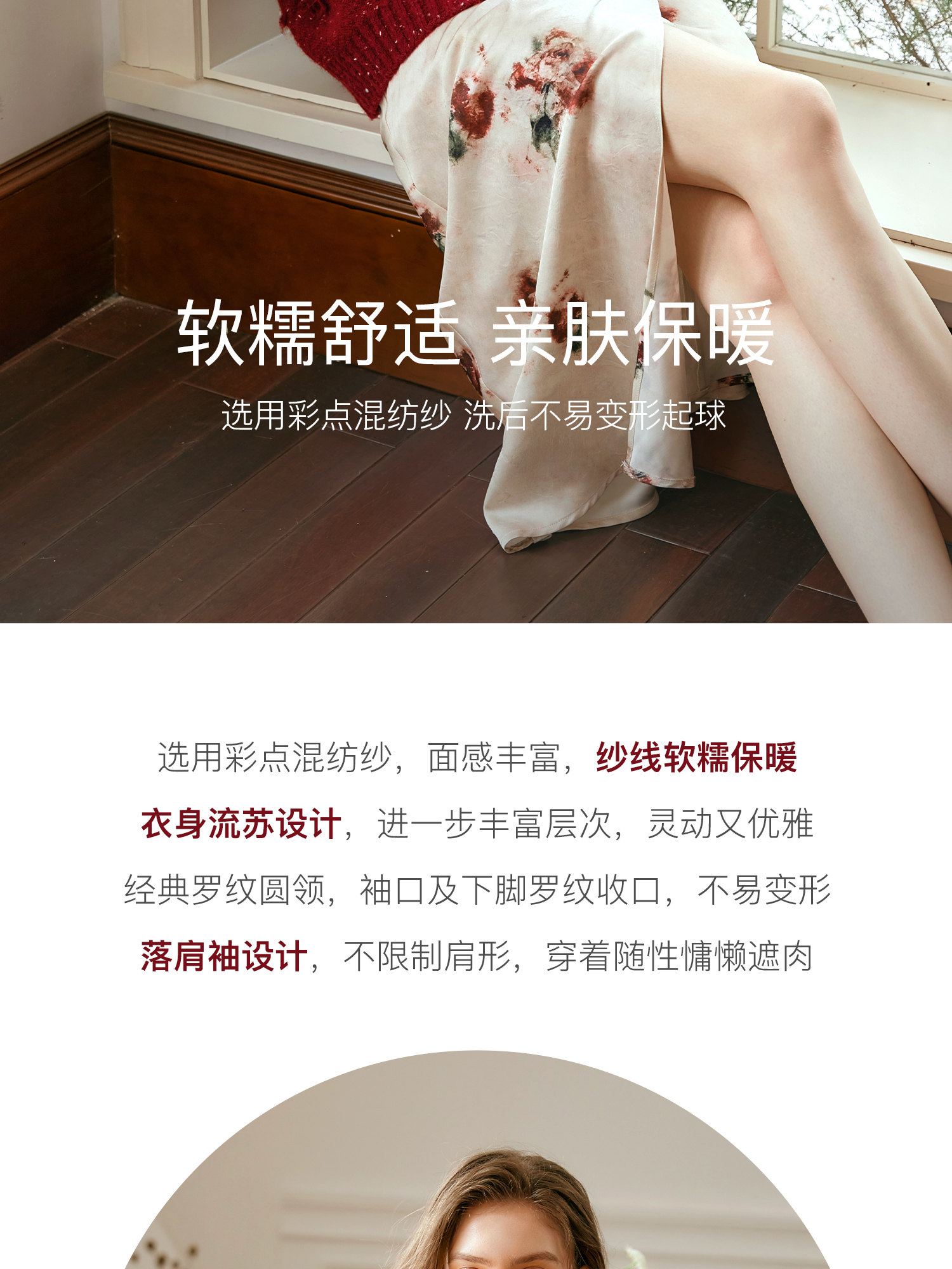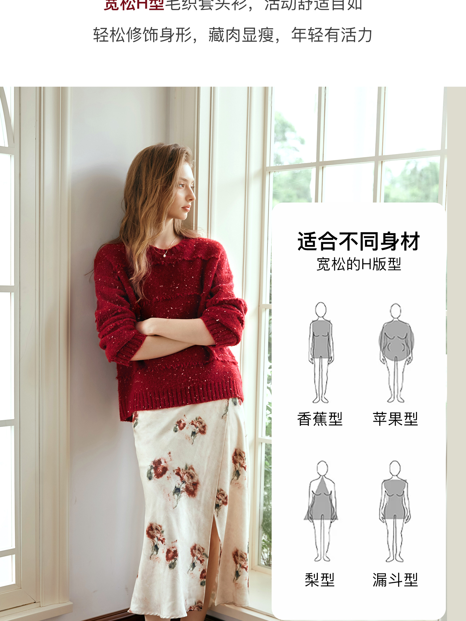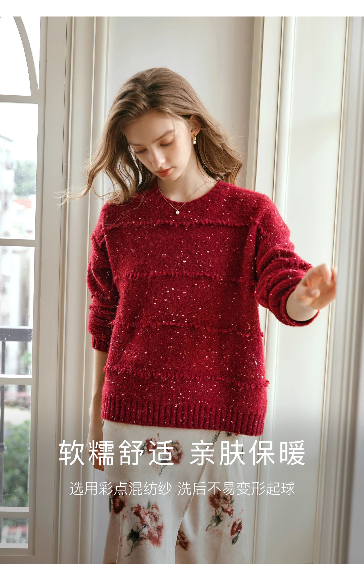 OLrain欧芮儿法式酒红色毛衣女秋季2024年新款复古宽松简约上衣
