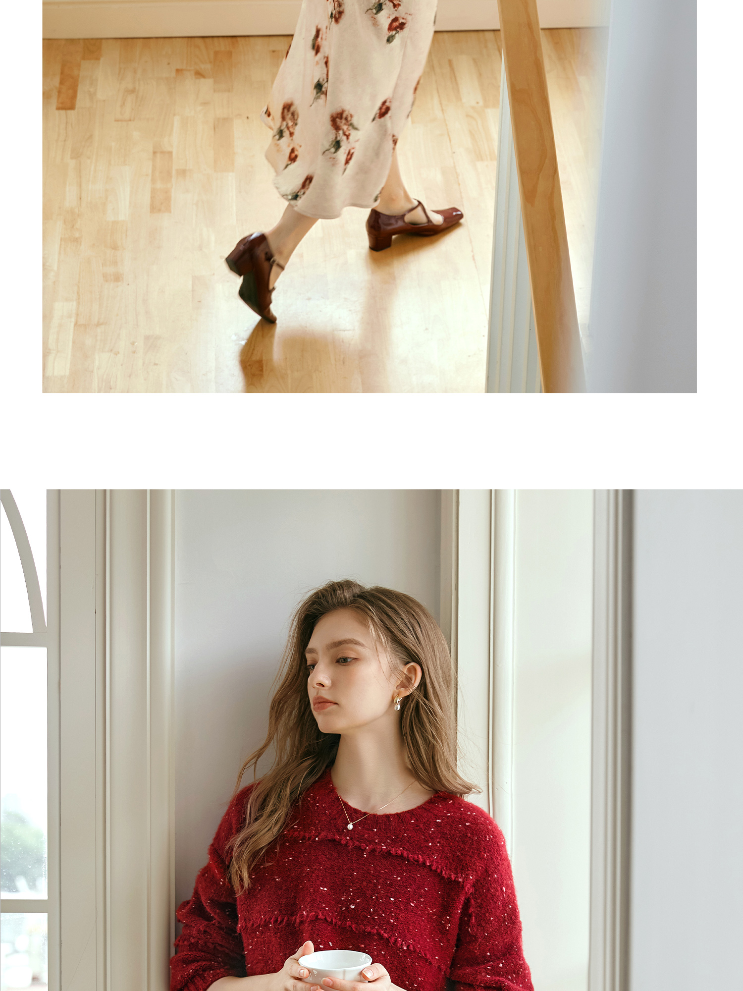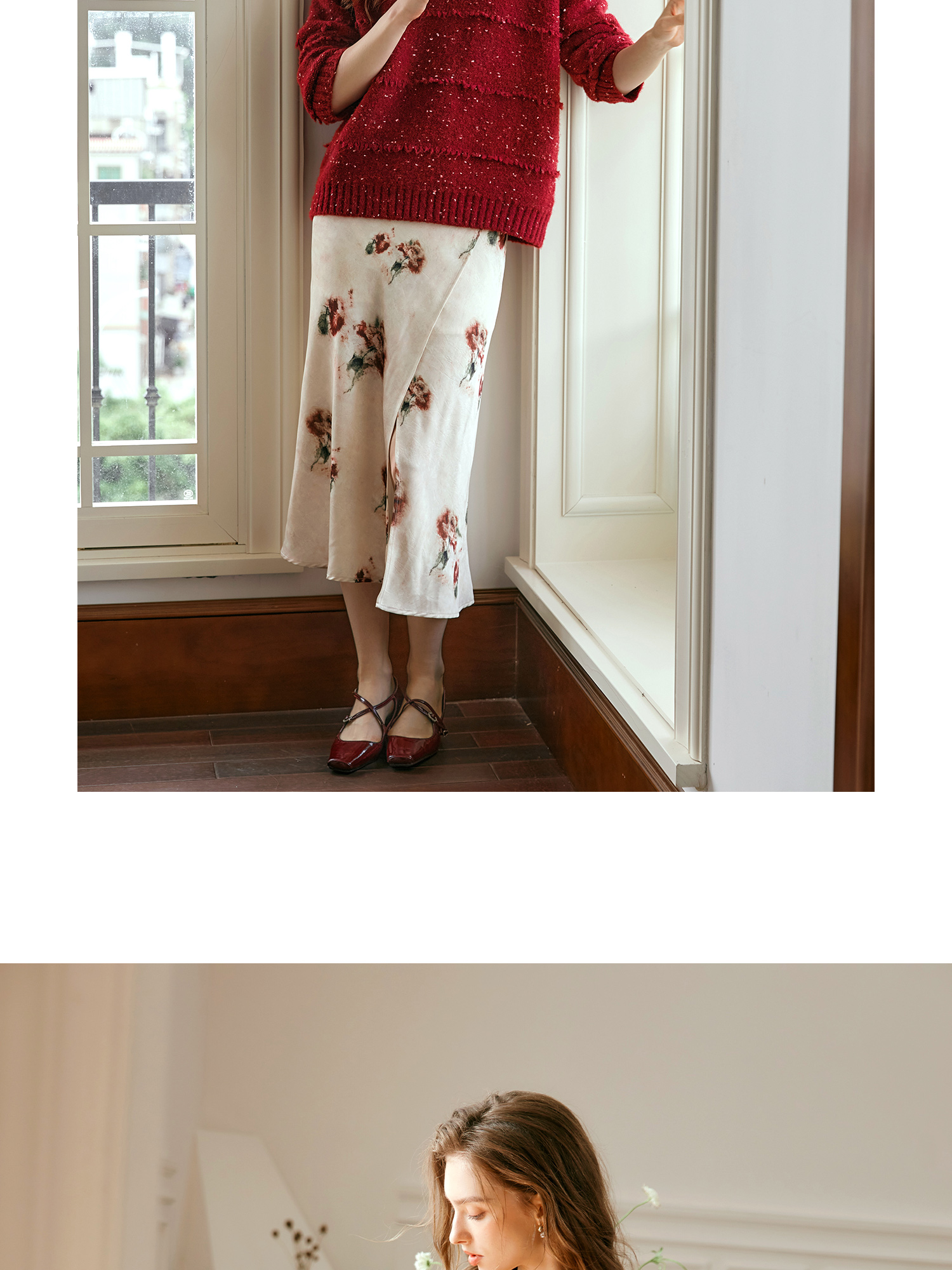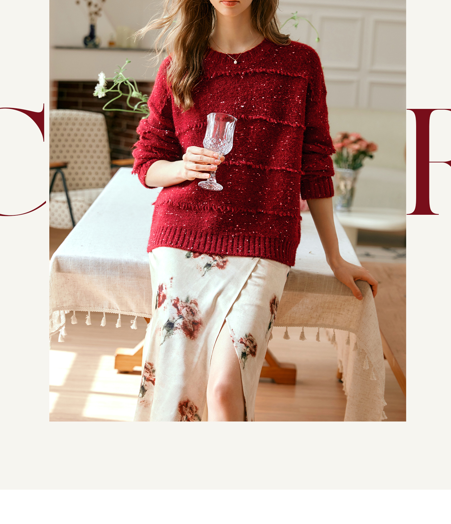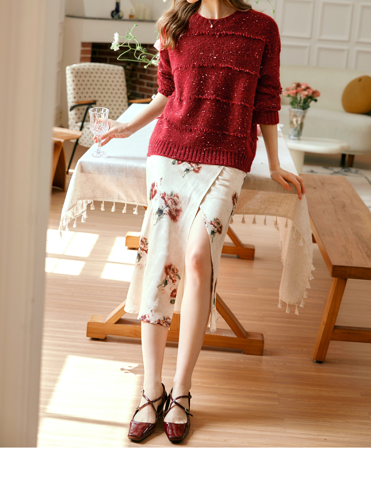 OLrain欧芮儿法式酒红色毛衣女秋季2024年新款复古宽松简约上衣