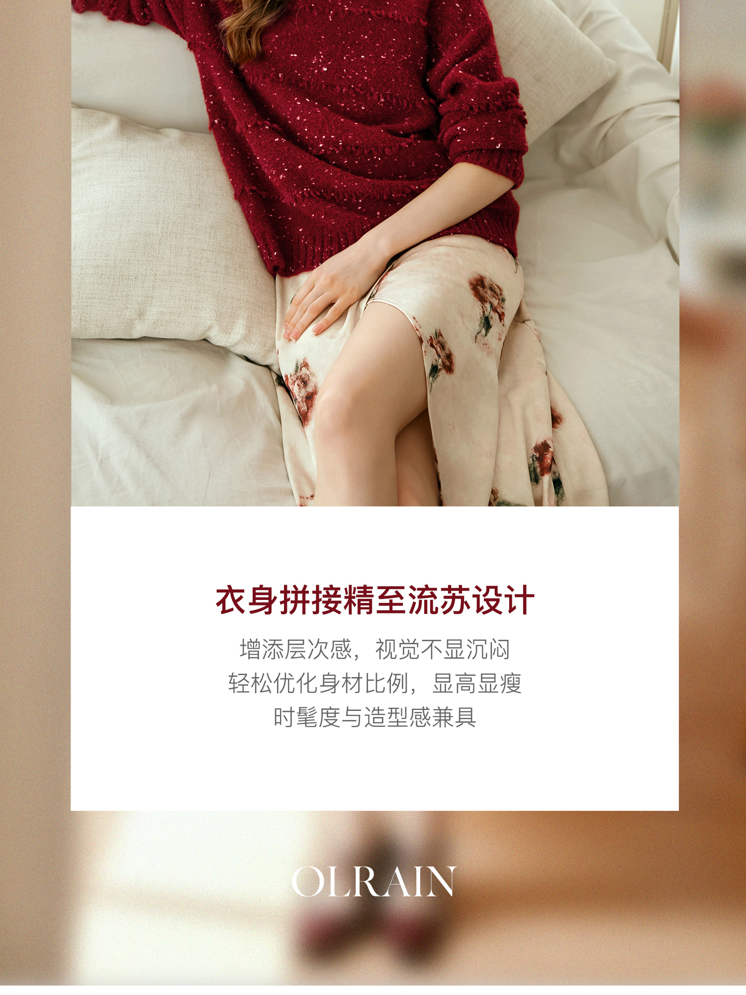 - “精致”是欧芮儿olrain品牌文化的核心,欧芮儿认为,精致的女人,不但要外在动人,更要内在迷人,内外兼修,有魅力、有气质、有内涵,自信而不自傲,优雅而不矫揉,自有万种风情而不轻浮,更不故作矜持。