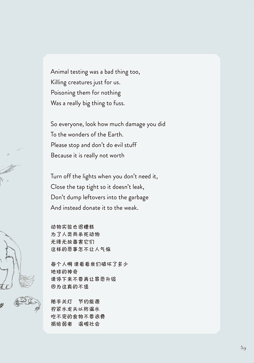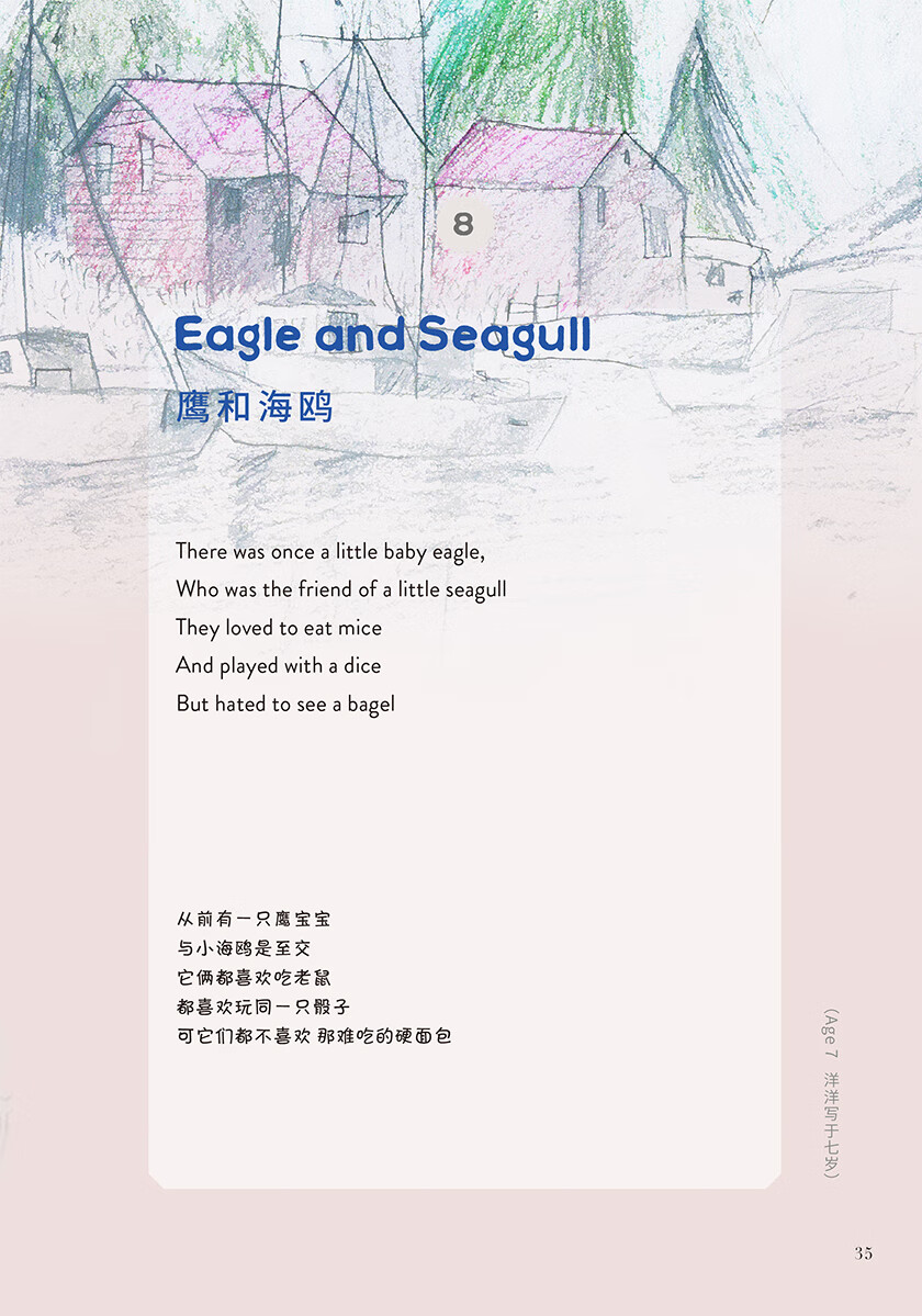 把洋洋从六岁到十岁陆陆续续写的一些英文诗和小故事辑结成书,我们看到了一个生命的灵性成长。相比成人被禁锢的天地,孩子的世界比较大,他们眼里的天空更高远澄净。作为父母,我们所做的只有陪伴和允许。洋洋和她的两个弟弟,给了我一个全新的生命空间,那是一个神奇的维度,让我在童心与成人思维的交汇处,像一个被弹力绳牵引的宇宙漫游者,充满惊喜地在不同星际间翻滚穿行。
