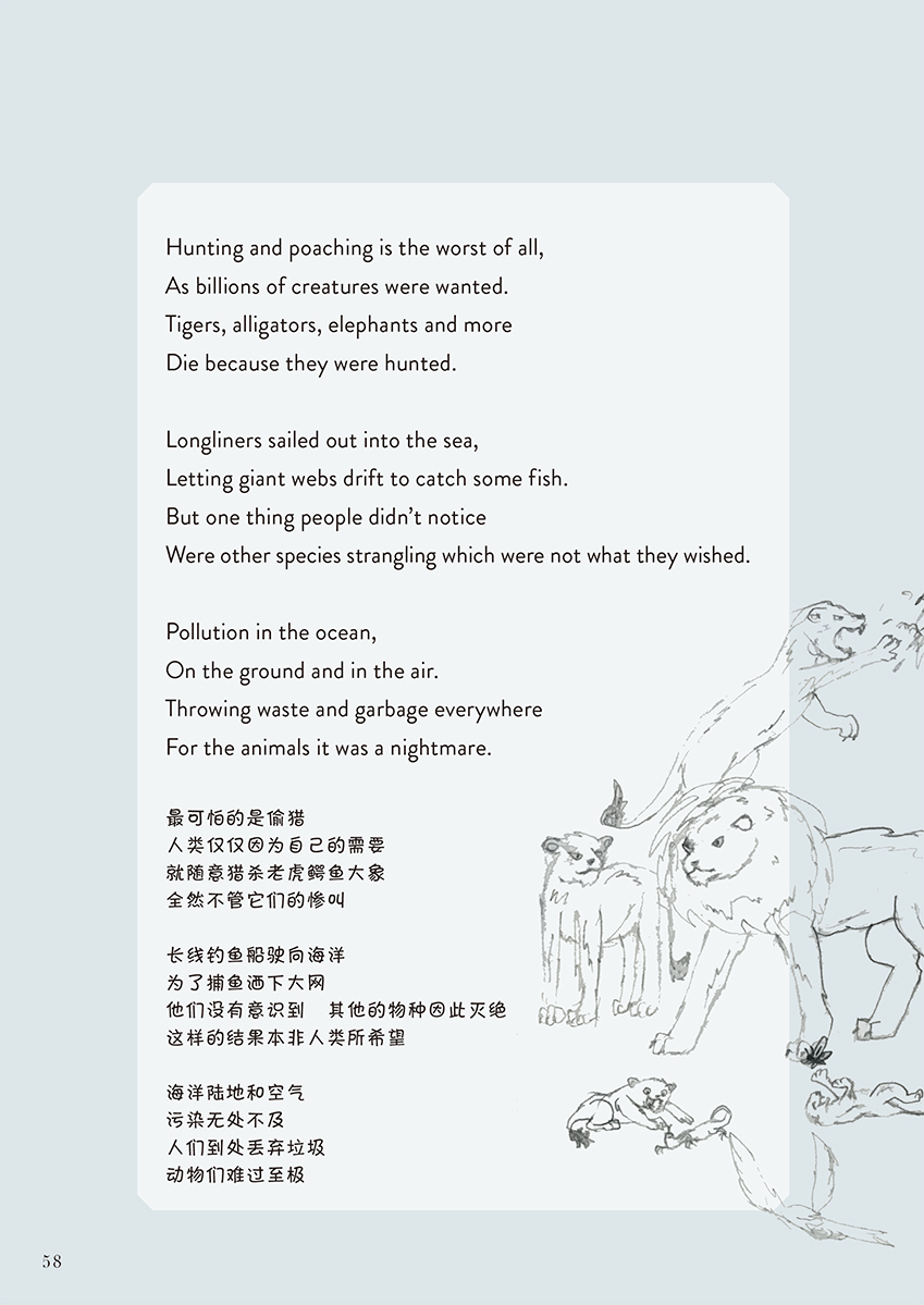 洋洋对动物的关爱与生俱来。太多的爱从心里满溢出来,她自然地开始选择工具进行表达--写和画。法国名著《小王子》里有个章节写道,"把美展示给人看的工作,就是有意义的了。"我想,每个人找到合适的方式把爱表达出来,就是最美的了吧。