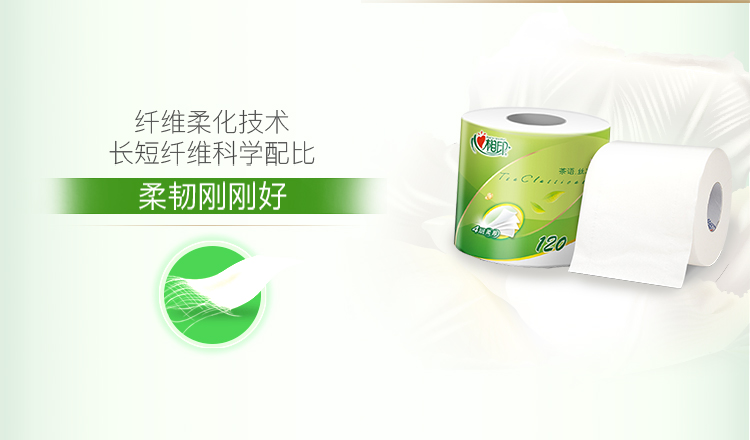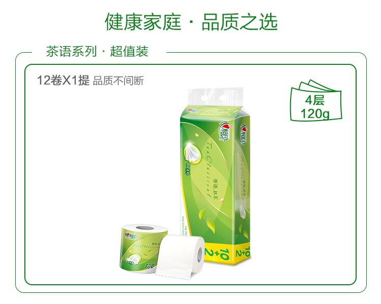 【心相印专区】BT1712 茶语丝享四层卷筒卫生纸12卷*6提(120克/卷)