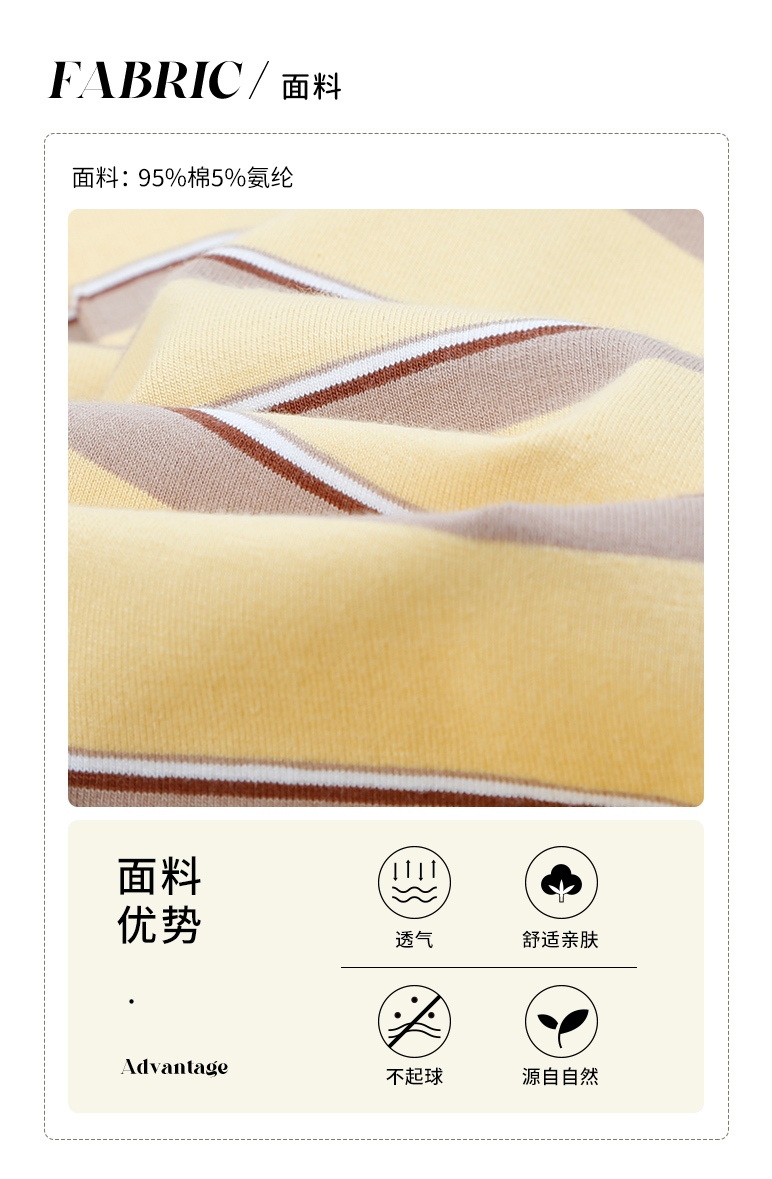 | 安全等级: B类 | 材质成分: 棉95% 聚氨酯弹性纤维(氨纶)5% |