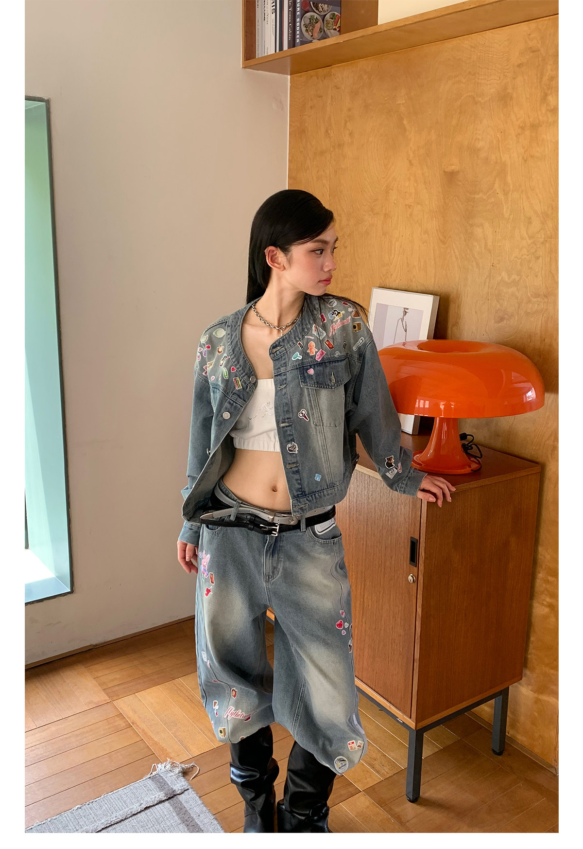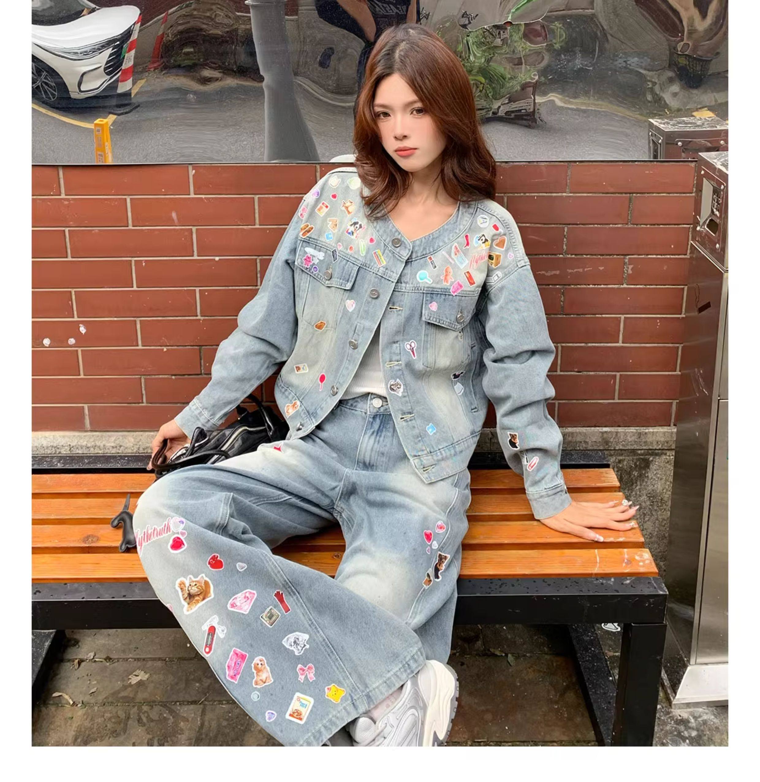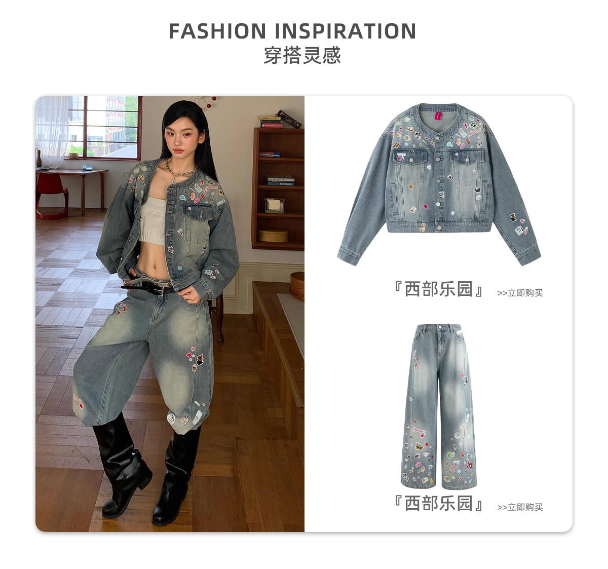 FTT FlyTheTruth 『西部乐园』 Y2K印花牛仔外套女秋季圆领短外套