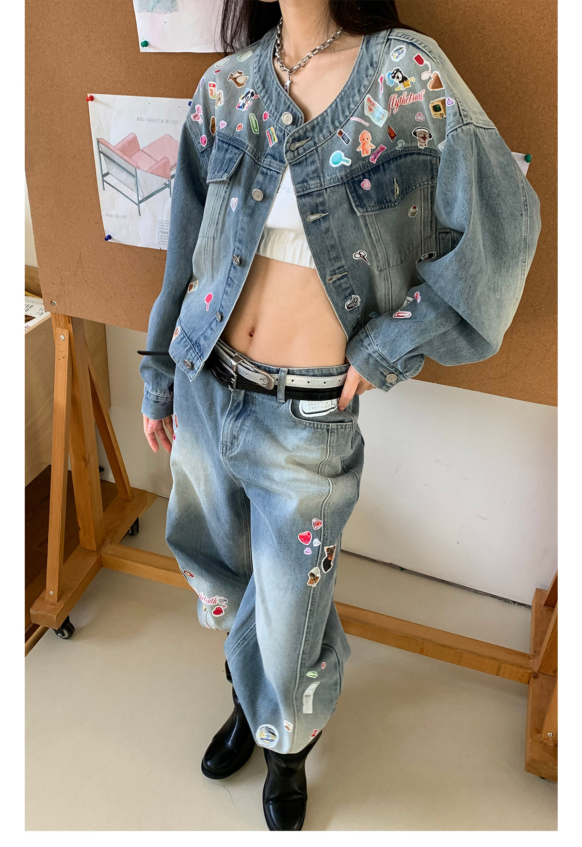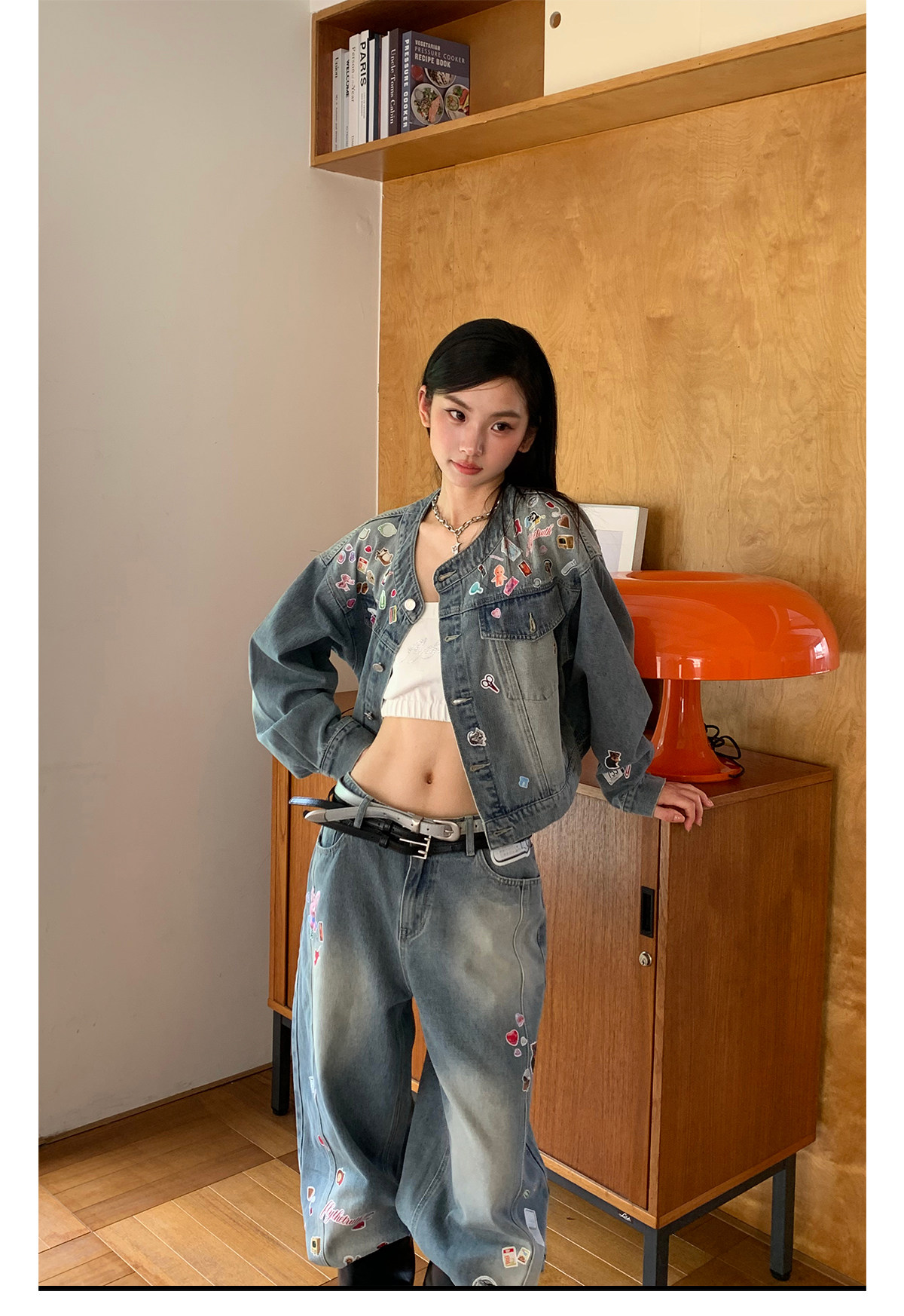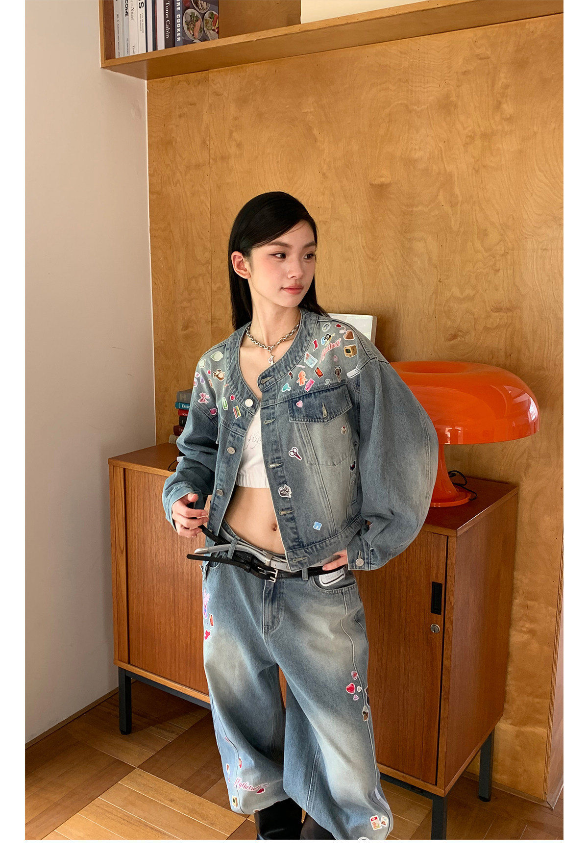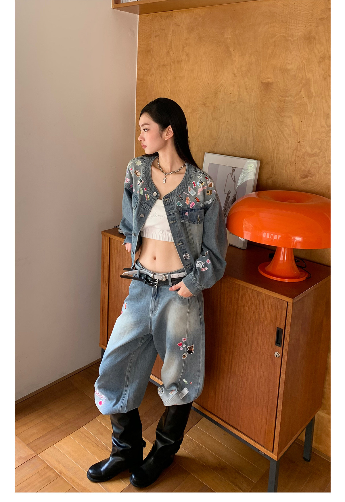 FTT FlyTheTruth 『西部乐园』 Y2K印花牛仔外套女秋季圆领短外套