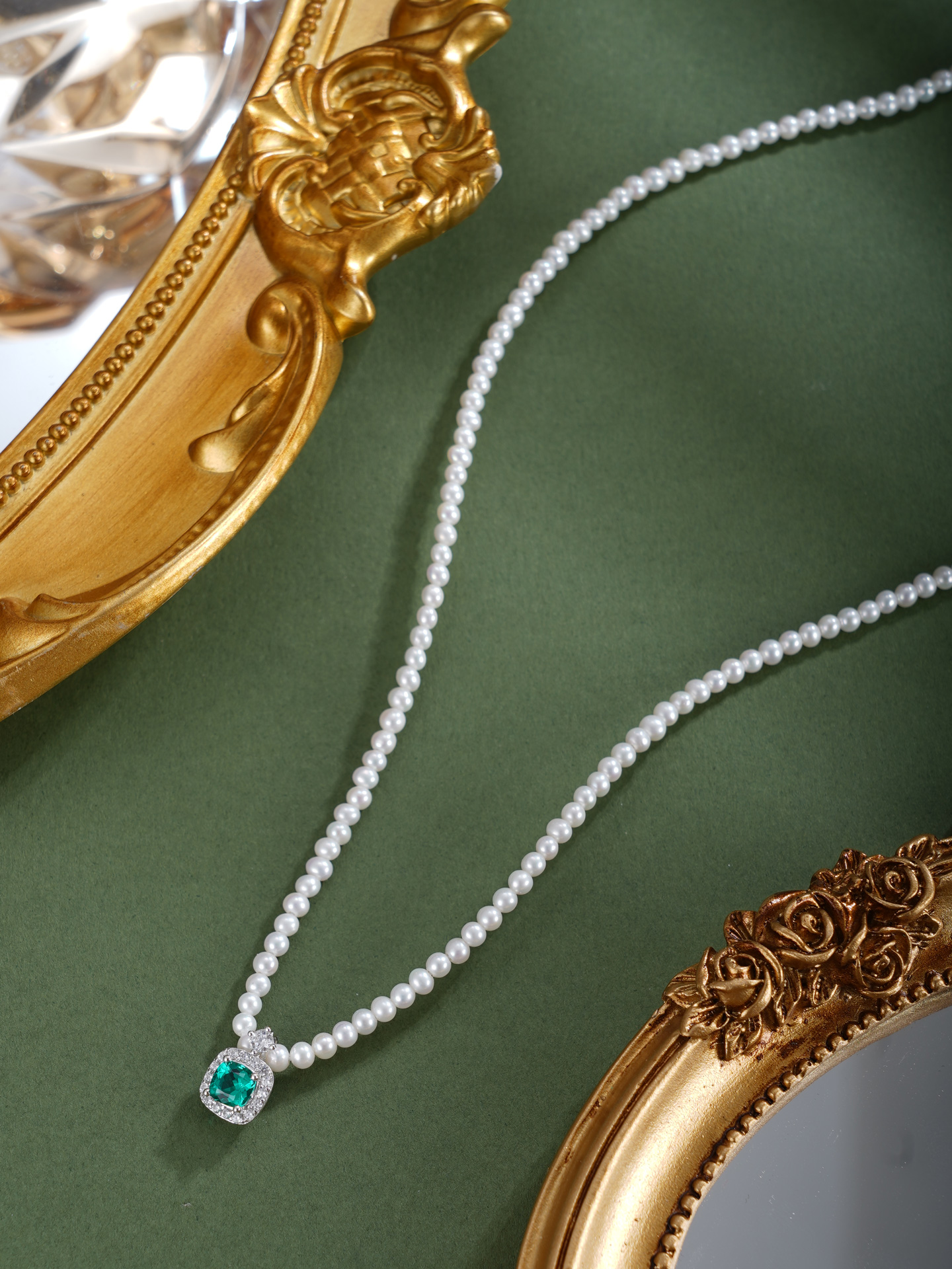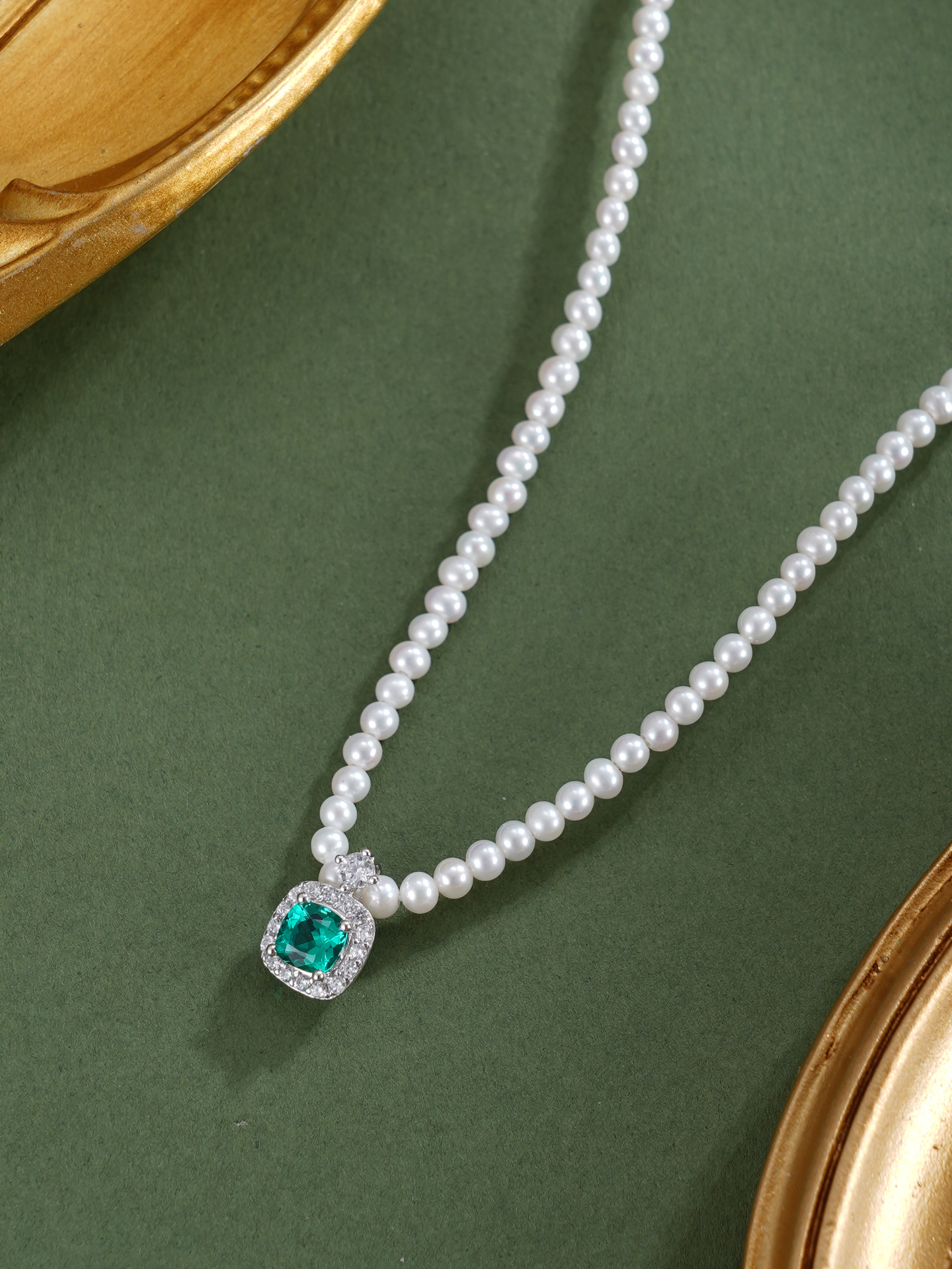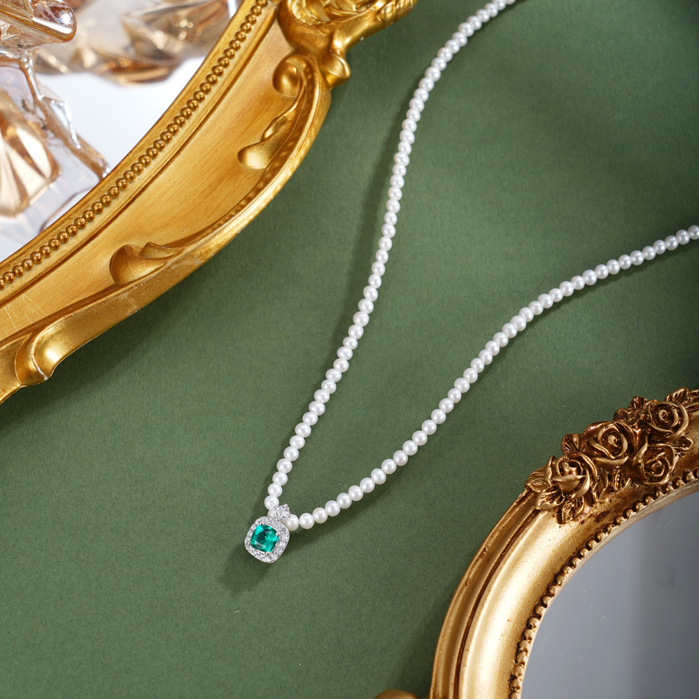 子佩集【深海叠翠】银S925珍珠惜王妃项链【ZZXL017】2.8mm珠绿方块2601
