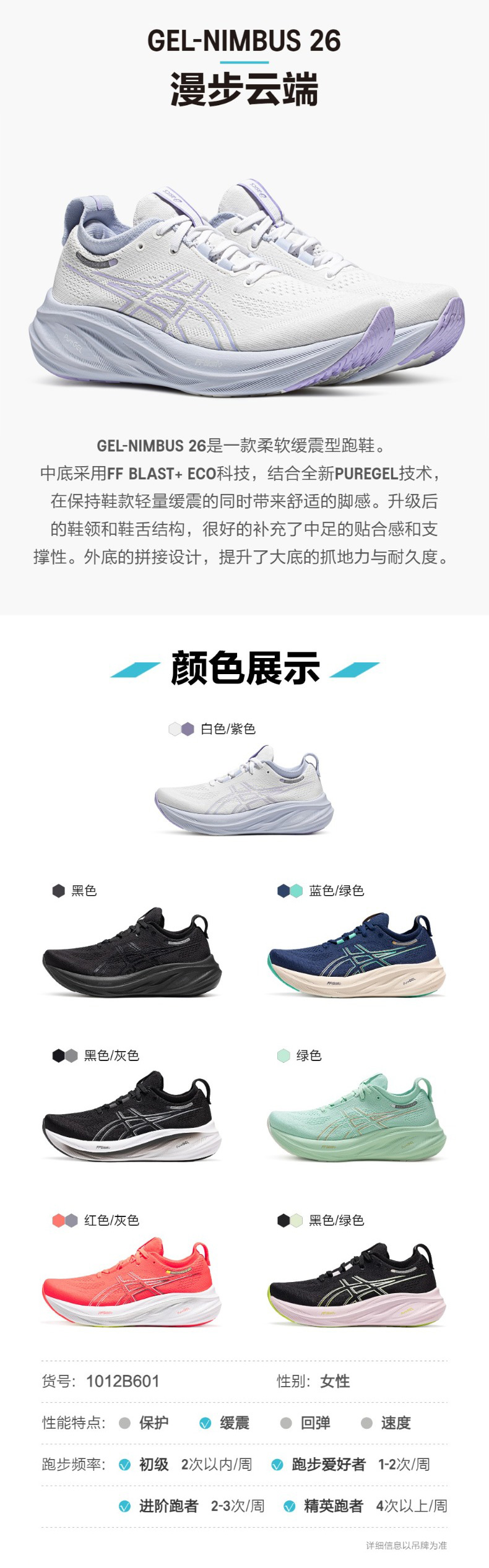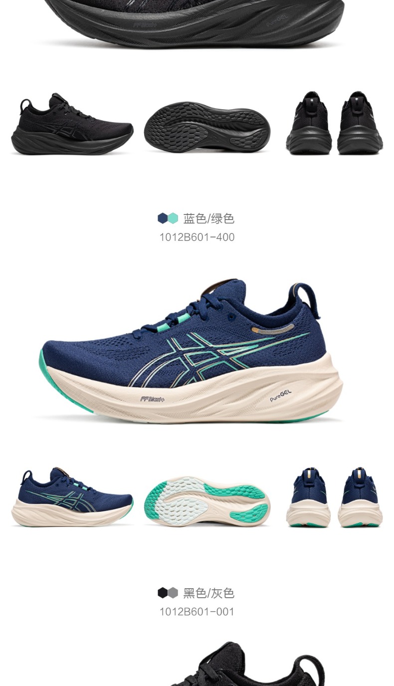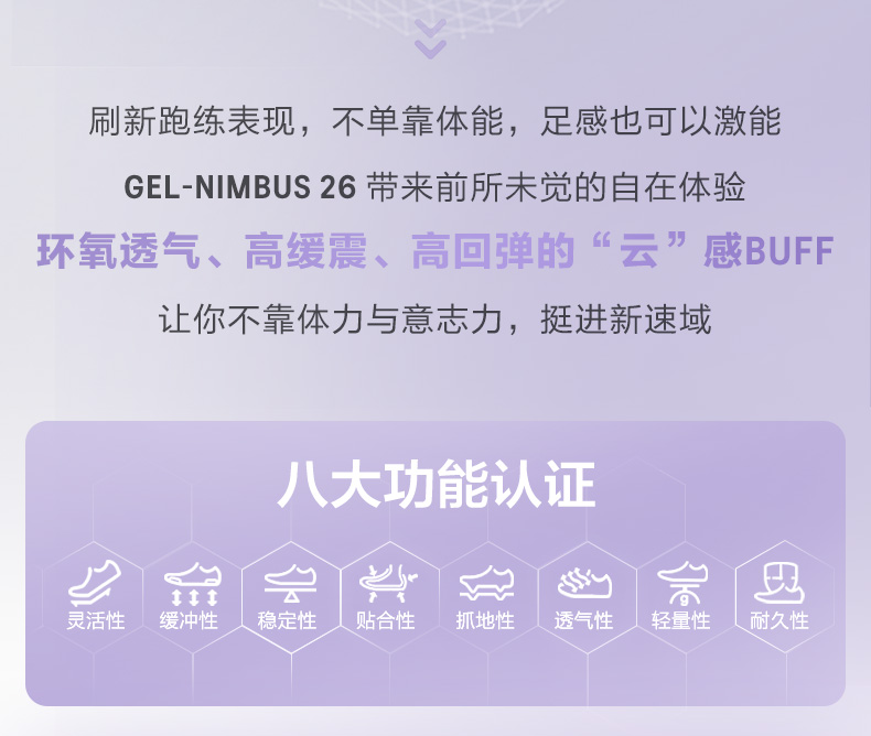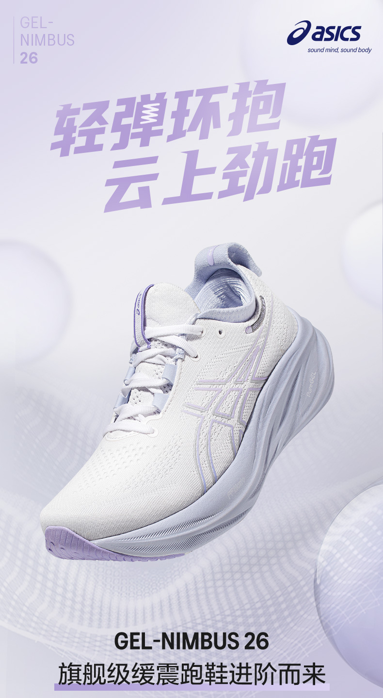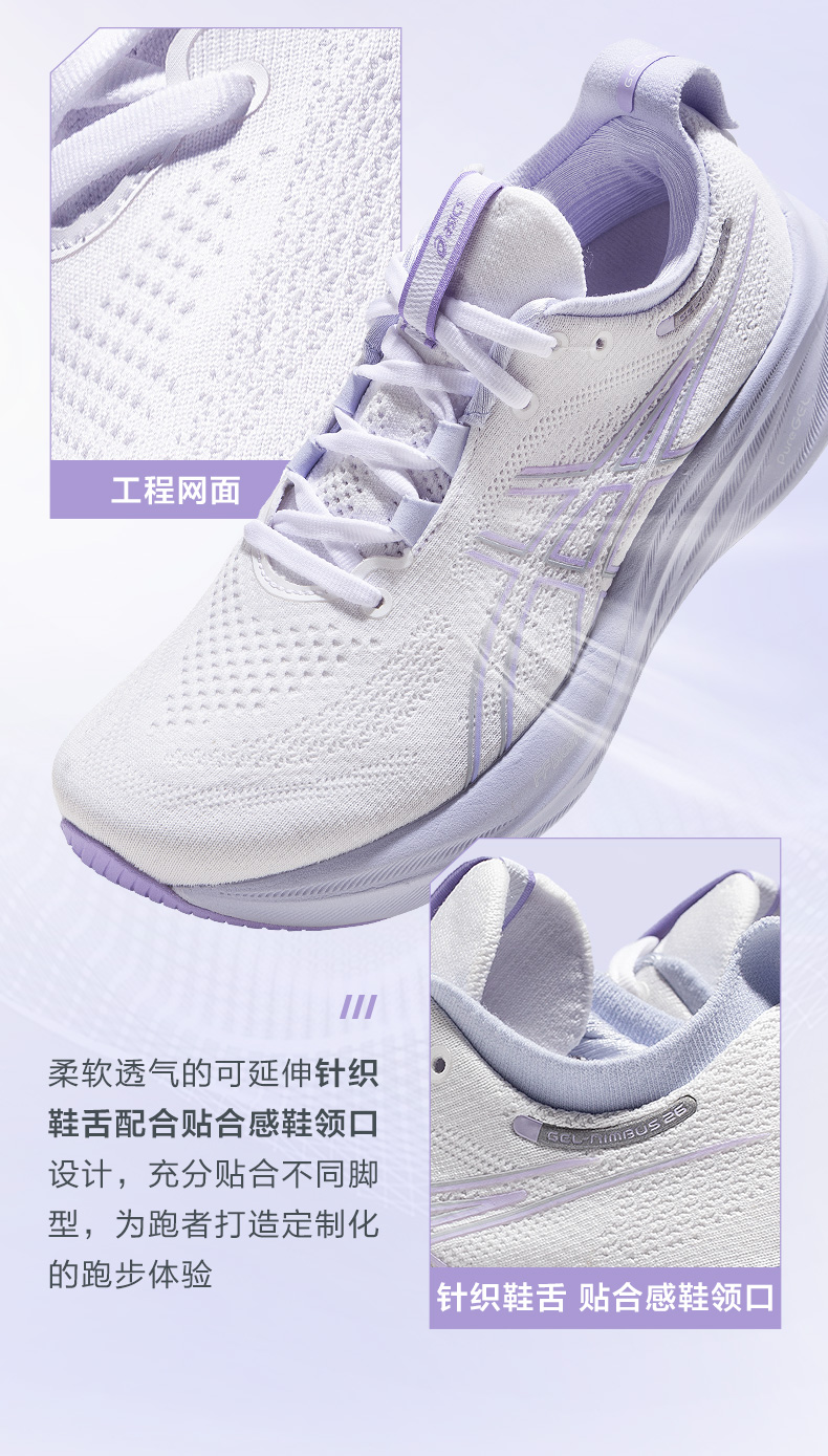 ASICS亚瑟士女子旗舰跑鞋GEL-NIMBUS 26透气回弹运动鞋1012B601