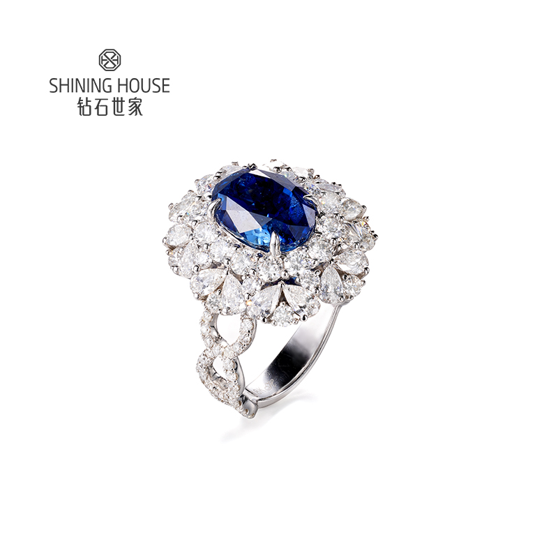 【蓝宝石戒指】钻石世家 18K金蓝宝石镶钻戒指 高级设计珠宝系列 每一颗宝石都是大自然的宝物 深邃浓郁的幽兰光芒 丝绒静谧的高雅之美
