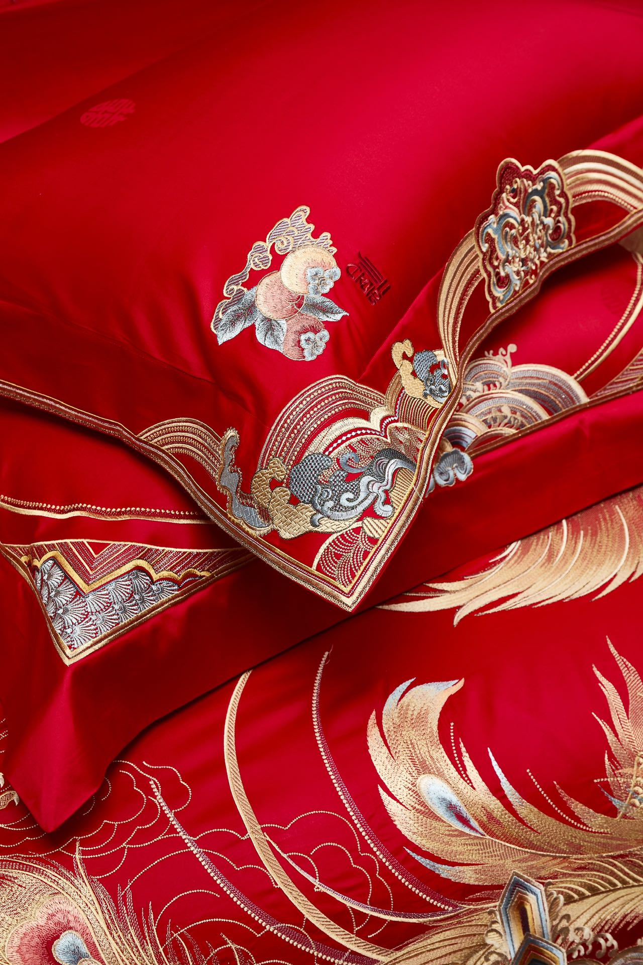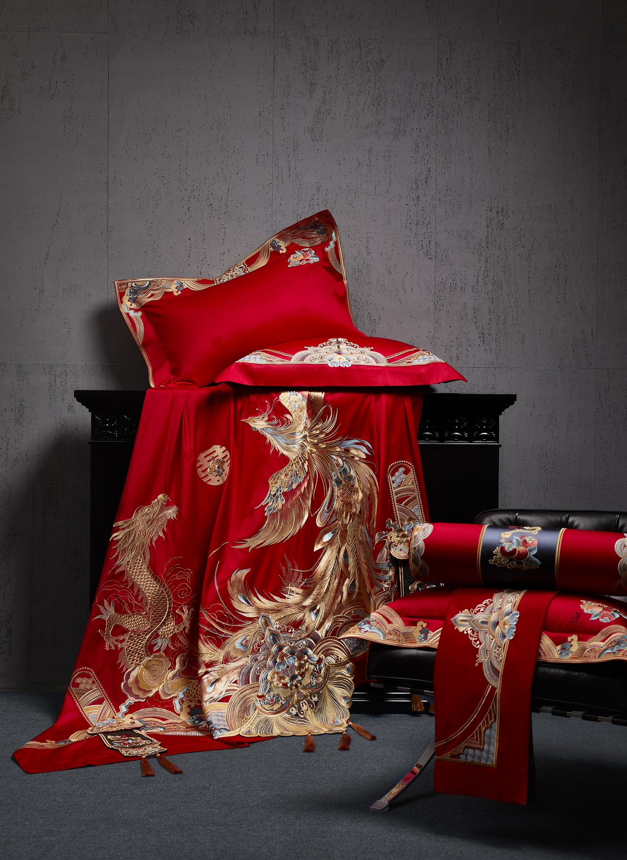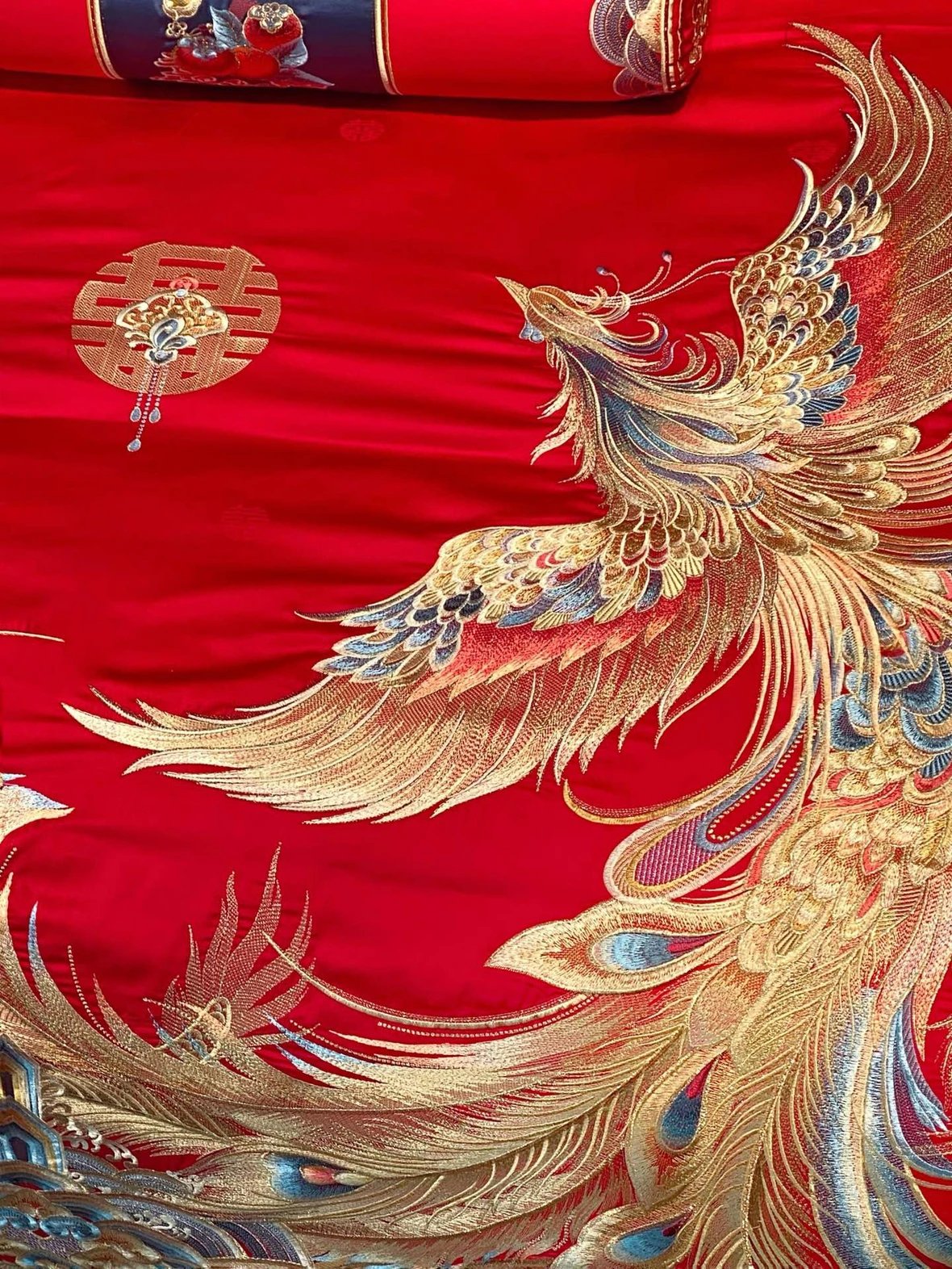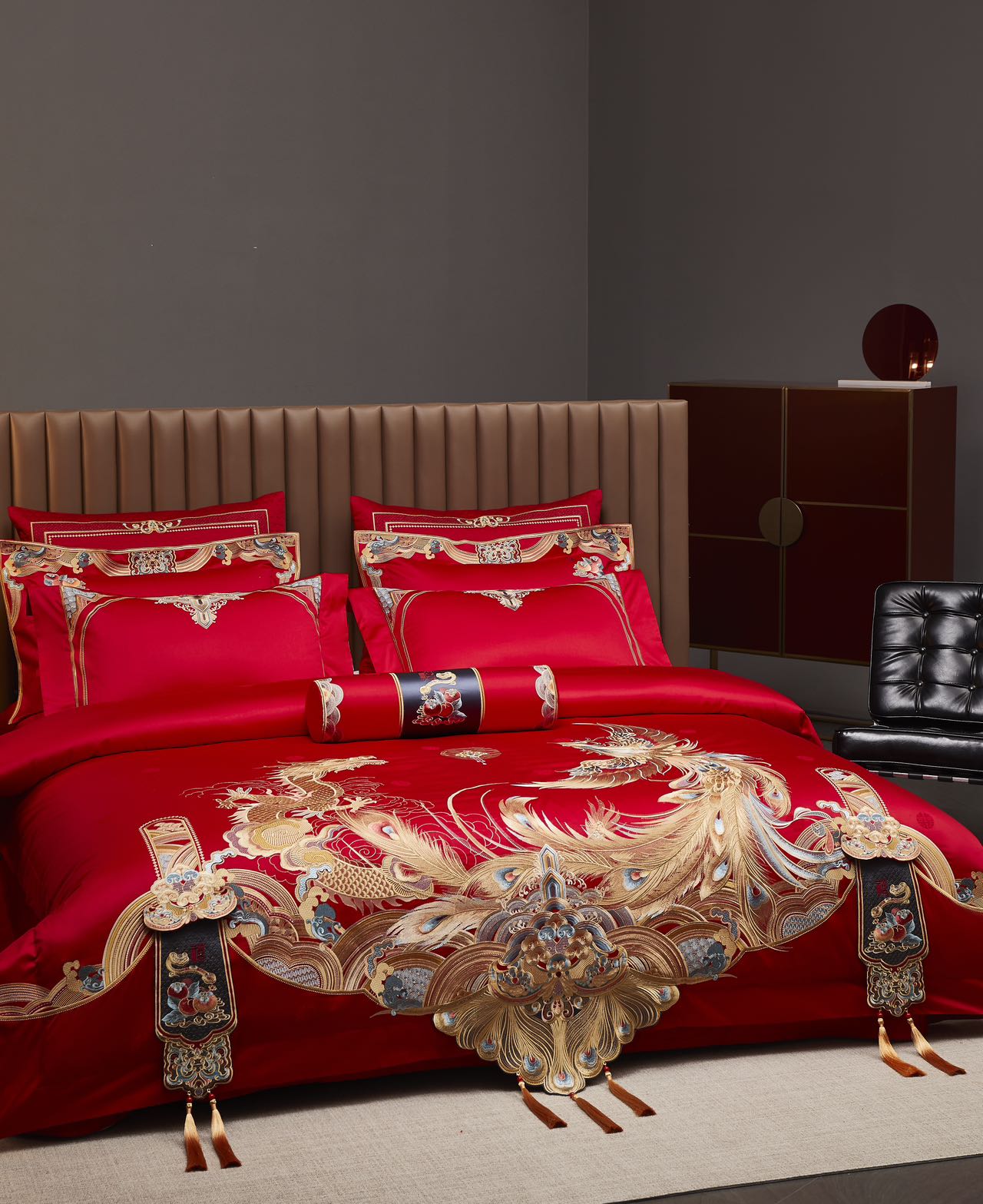 【高端婚庆】龙翔凤瑞w奢华重工刺绣100支新疆长绒棉婚礼四件套十件套